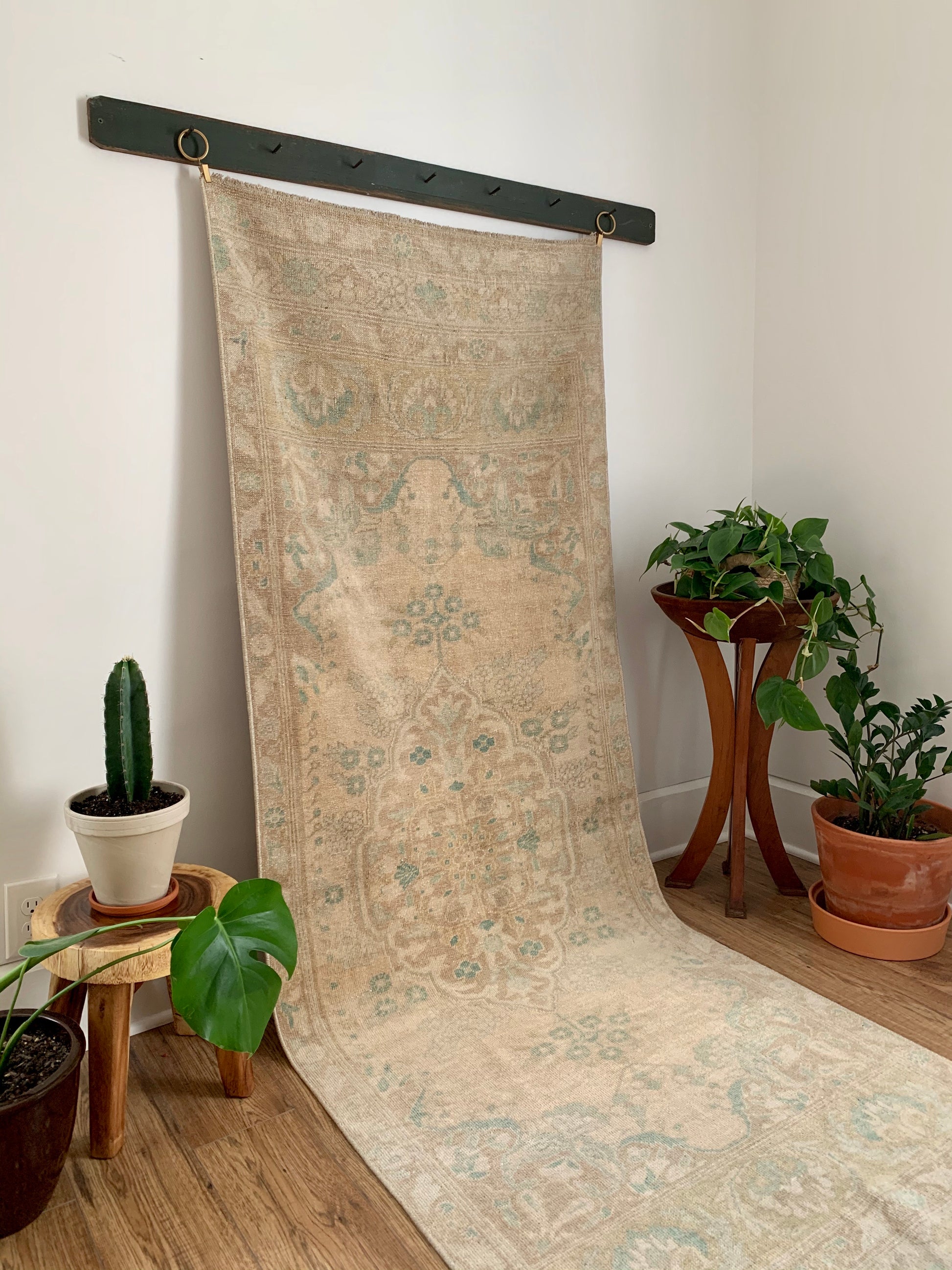 All rugs have been thoroughly cleaned; age-related wear and patina are considered normal in these unique, hand woven vintage rugs. All pieces have been photographed with moderate natural light. Colors may vary depending on your phone or screen settings. Some items may not be perfectly straight or rectangle. We consider these characteristics part of what makes them truly one-of-a-kind.
