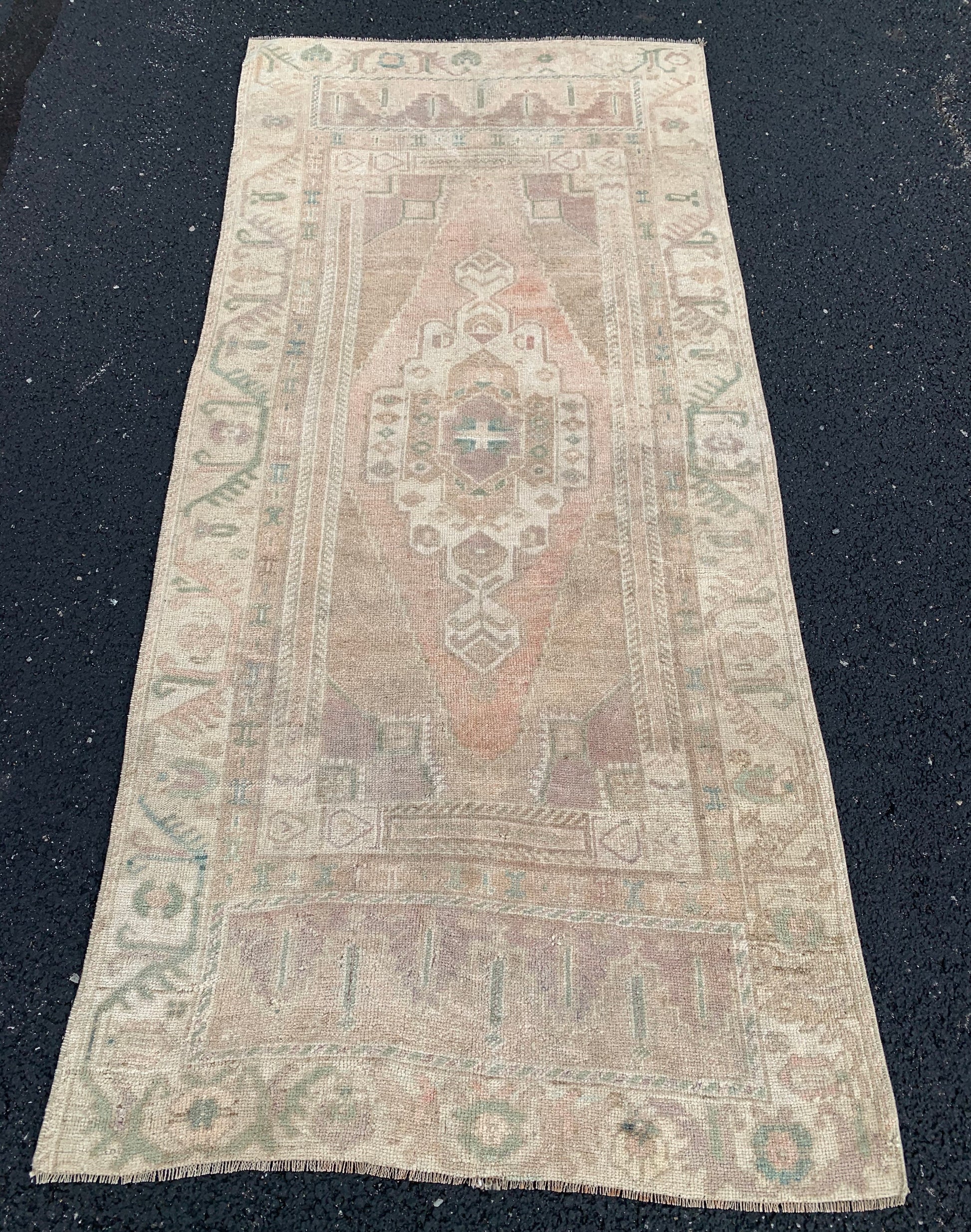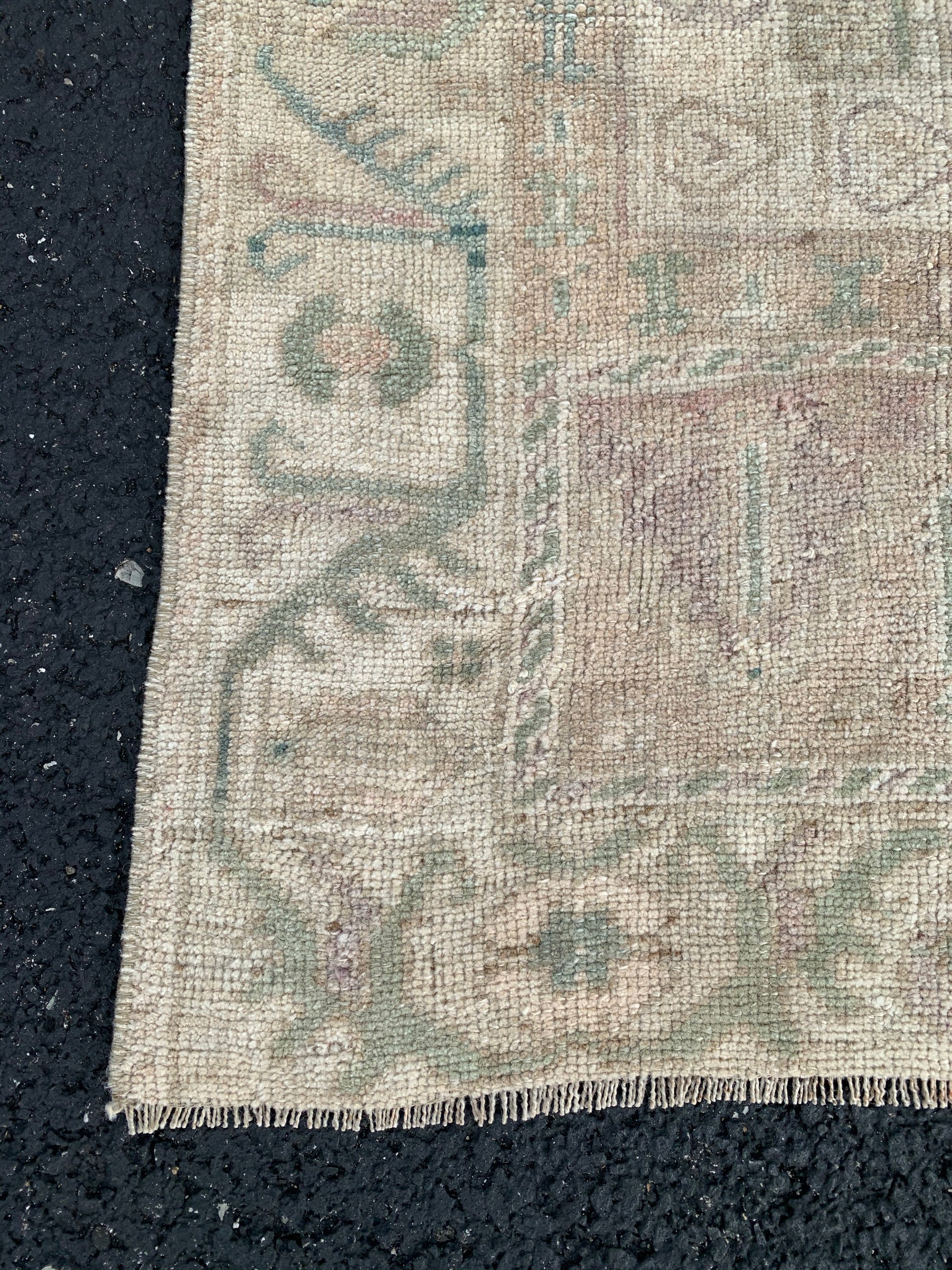 All rugs have been thoroughly cleaned; age-related wear and patina are considered normal in these unique, hand woven vintage rugs. All pieces have been photographed with moderate natural light. Colors may vary depending on your phone or screen settings. Some items may not be perfectly straight or rectangle. We consider these characteristics part of what makes them truly one-of-a-kind.