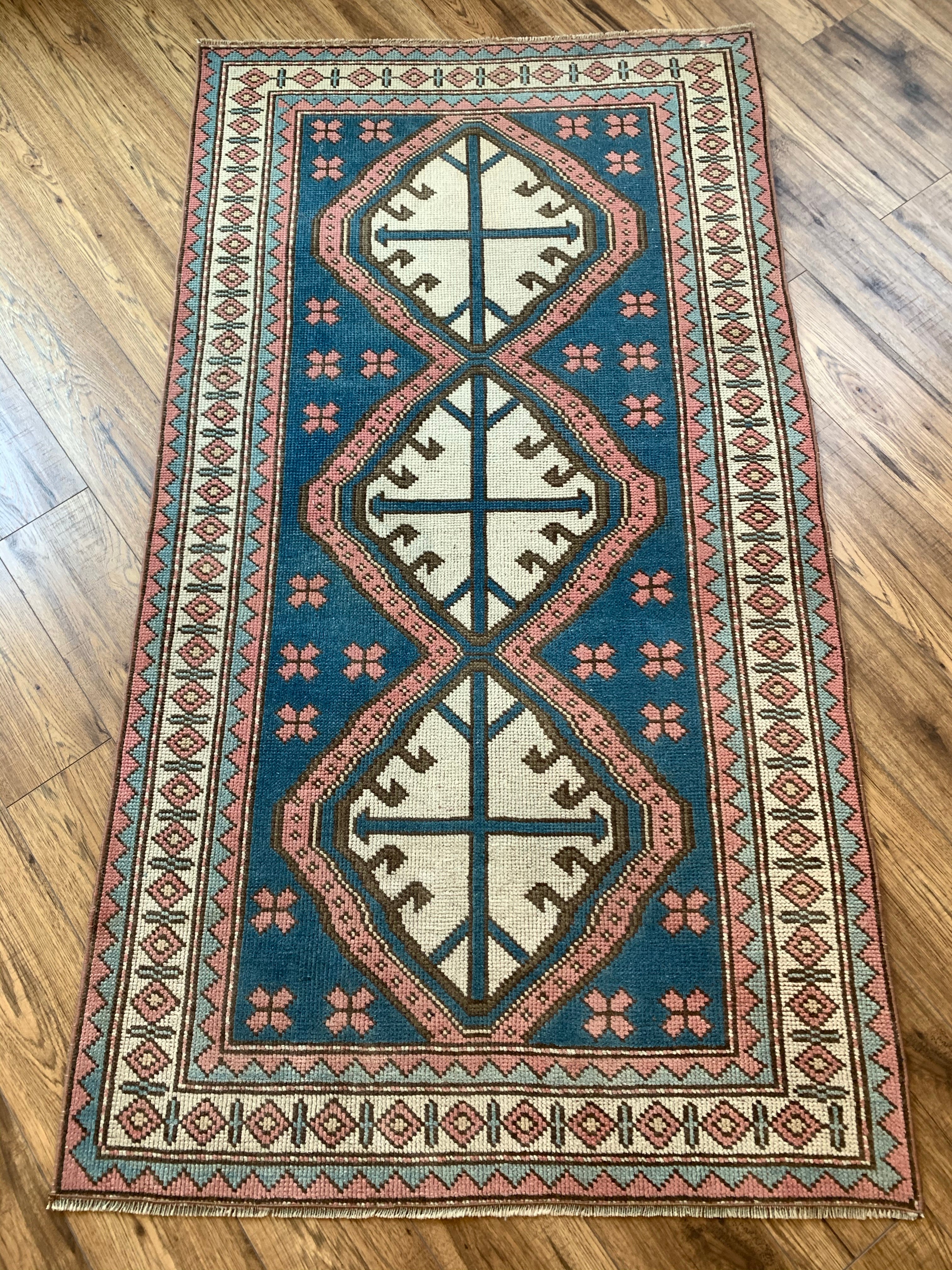 All rugs have been thoroughly cleaned; age-related wear and patina are considered normal in these unique, hand woven vintage rugs. All pieces have been photographed with moderate natural light. Colors may vary depending on your phone or screen settings. Some items may not be perfectly straight or rectangle. We consider these characteristics part of what makes them truly one-of-a-kind.