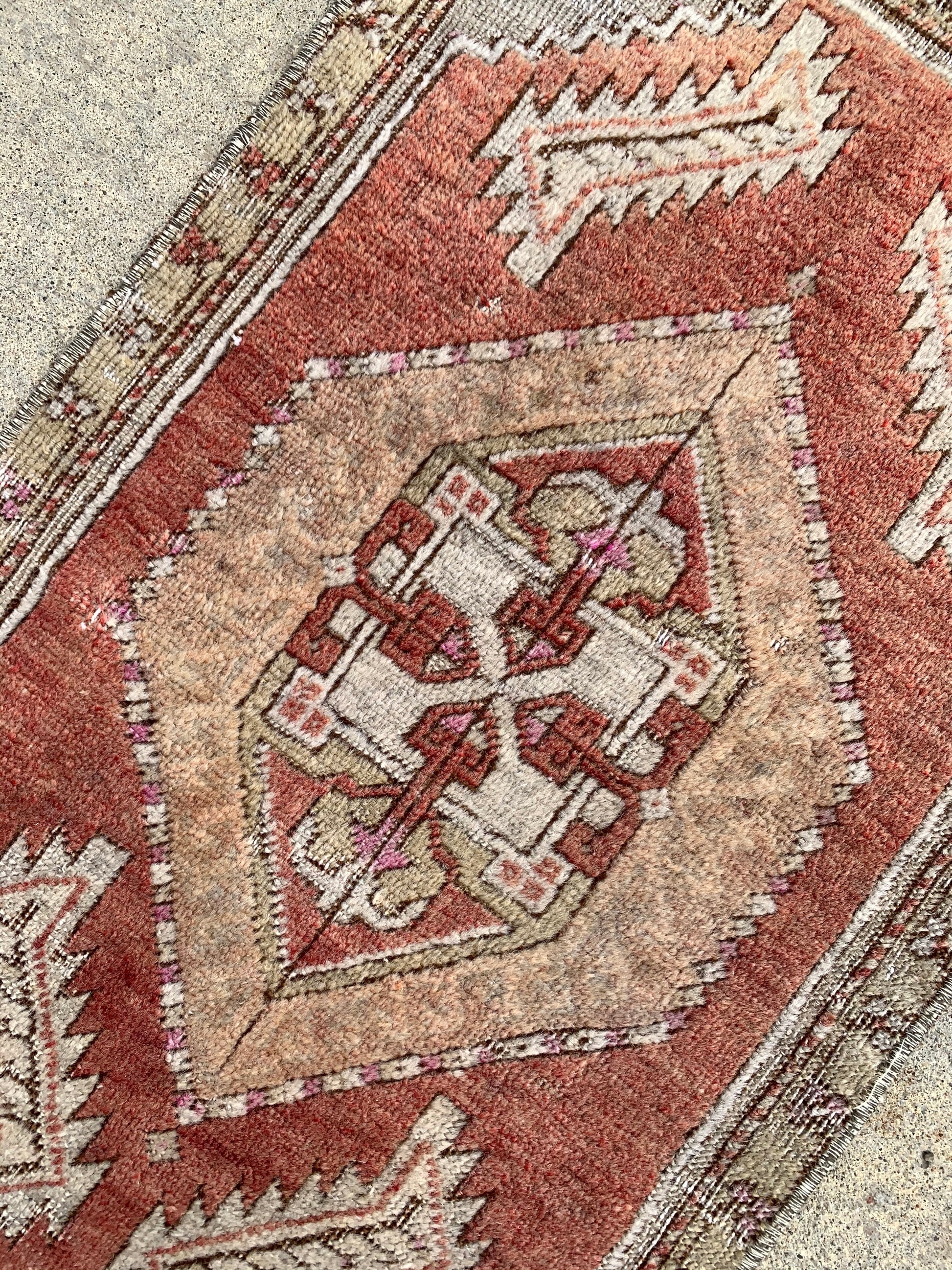 All rugs have been thoroughly cleaned; age-related wear and patina are considered normal in these unique, hand woven vintage rugs. All pieces have been photographed with moderate natural light. Colors may vary depending on your phone or screen settings. Some items may not be perfectly straight or rectangle. We consider these characteristics part of what makes them truly one-of-a-kind.
