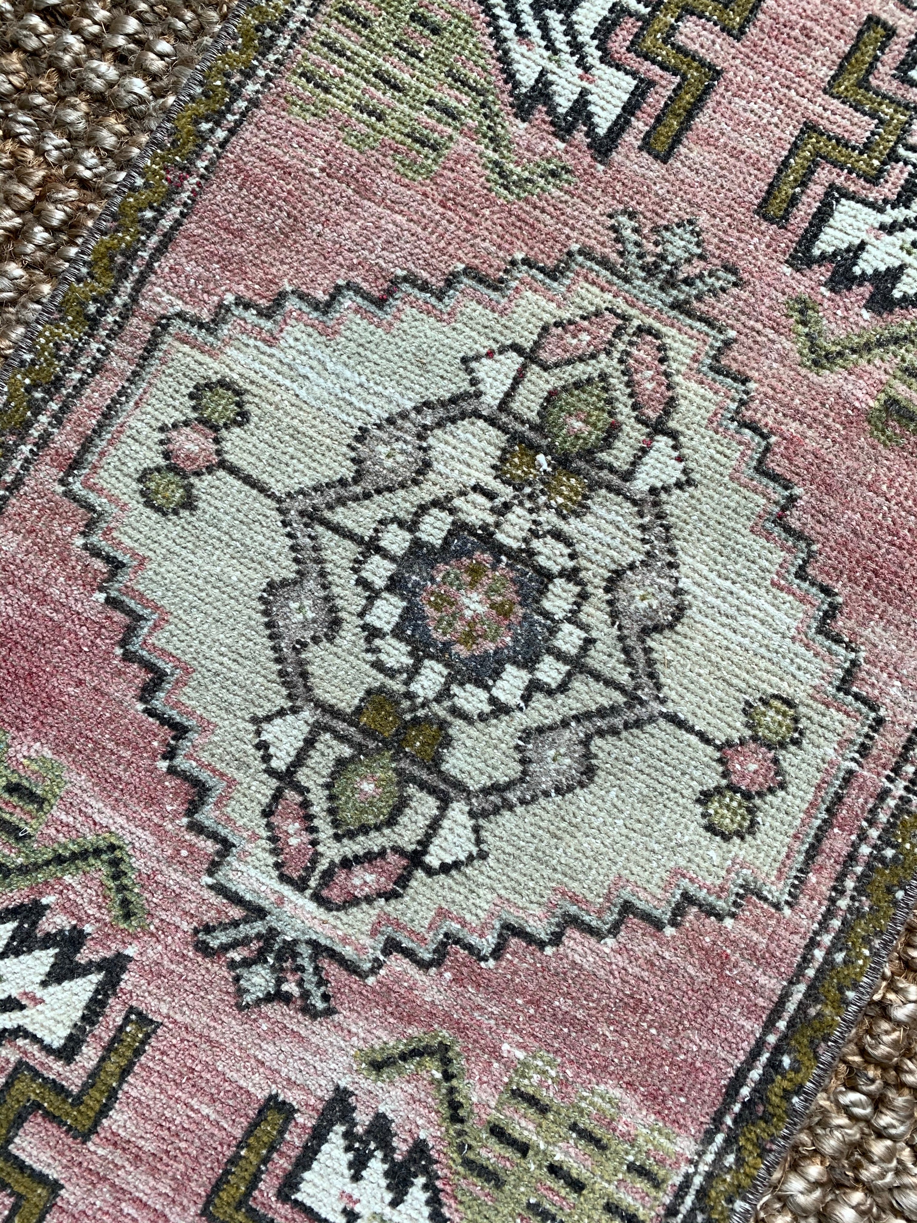 All rugs have been thoroughly cleaned; age-related wear and patina are considered normal in these unique, hand woven vintage rugs. All pieces have been photographed with moderate natural light. Colors may vary depending on your phone or screen settings. Some items may not be perfectly straight or rectangle. We consider these characteristics part of what makes them truly one-of-a-kind.