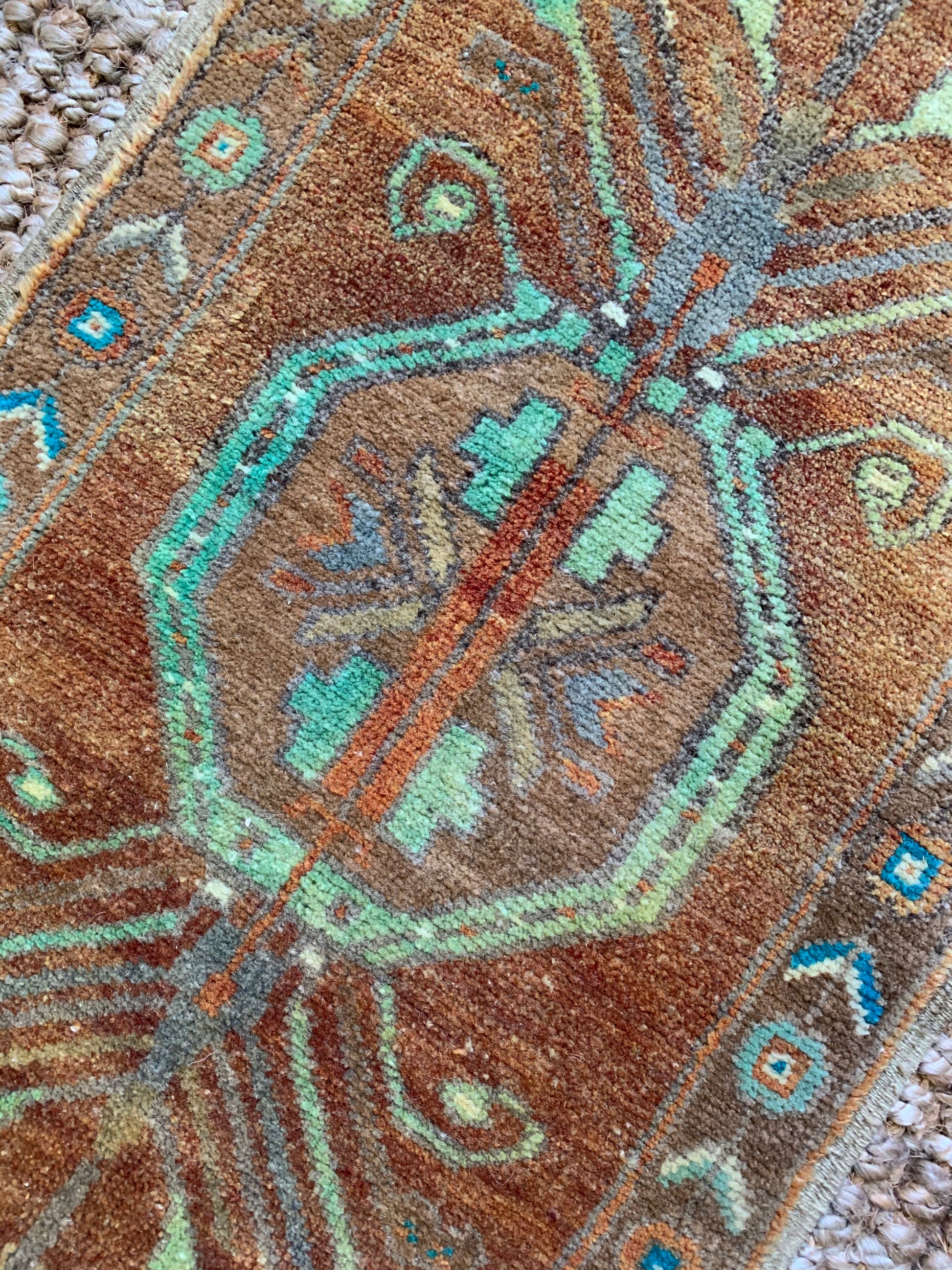 All rugs have been thoroughly cleaned; age-related wear and patina are considered normal in these unique, hand woven vintage rugs. All pieces have been photographed with moderate natural light. Colors may vary depending on your phone or screen settings. Some items may not be perfectly straight or rectangle. We consider these characteristics part of what makes them truly one-of-a-kind.