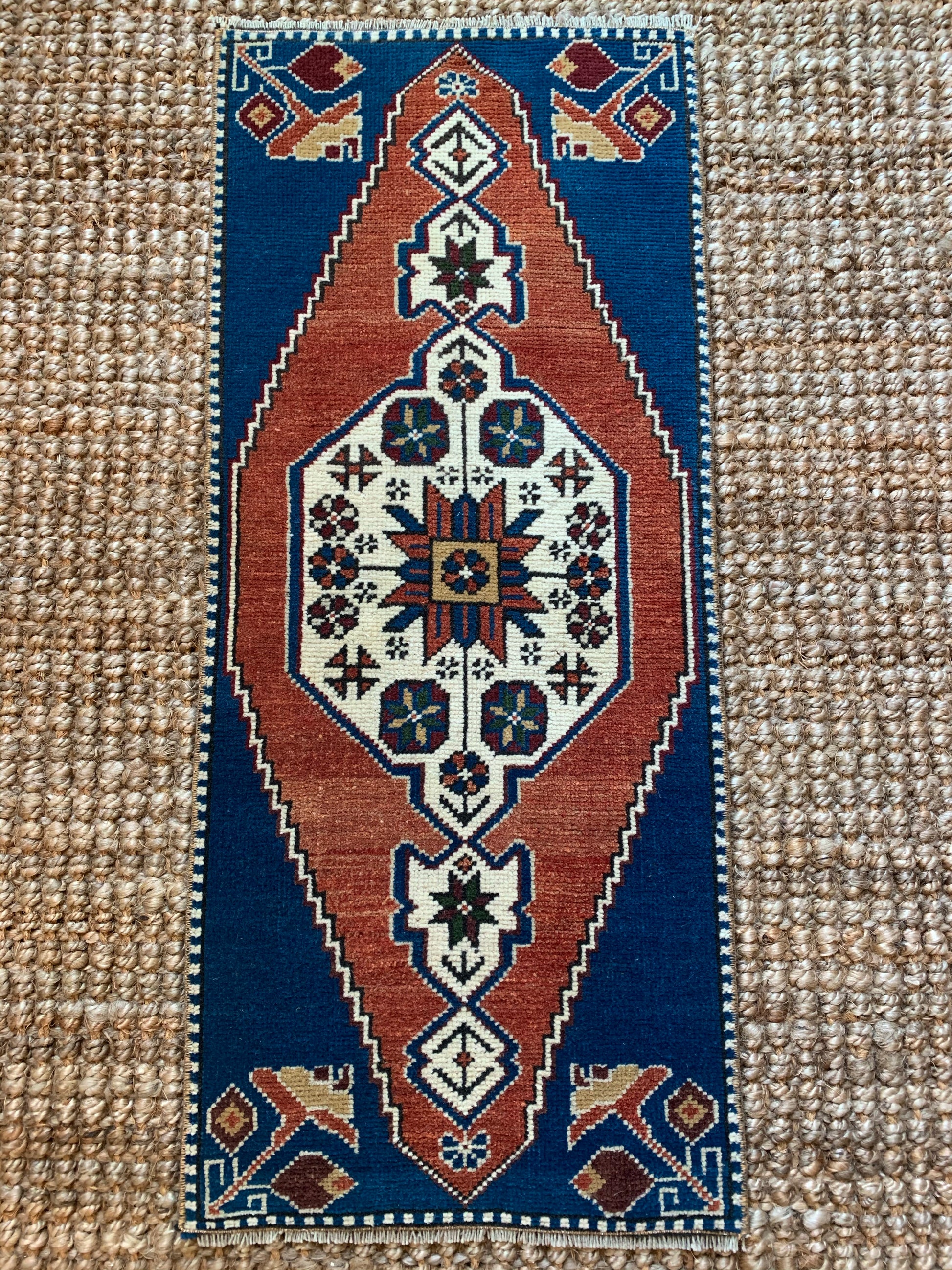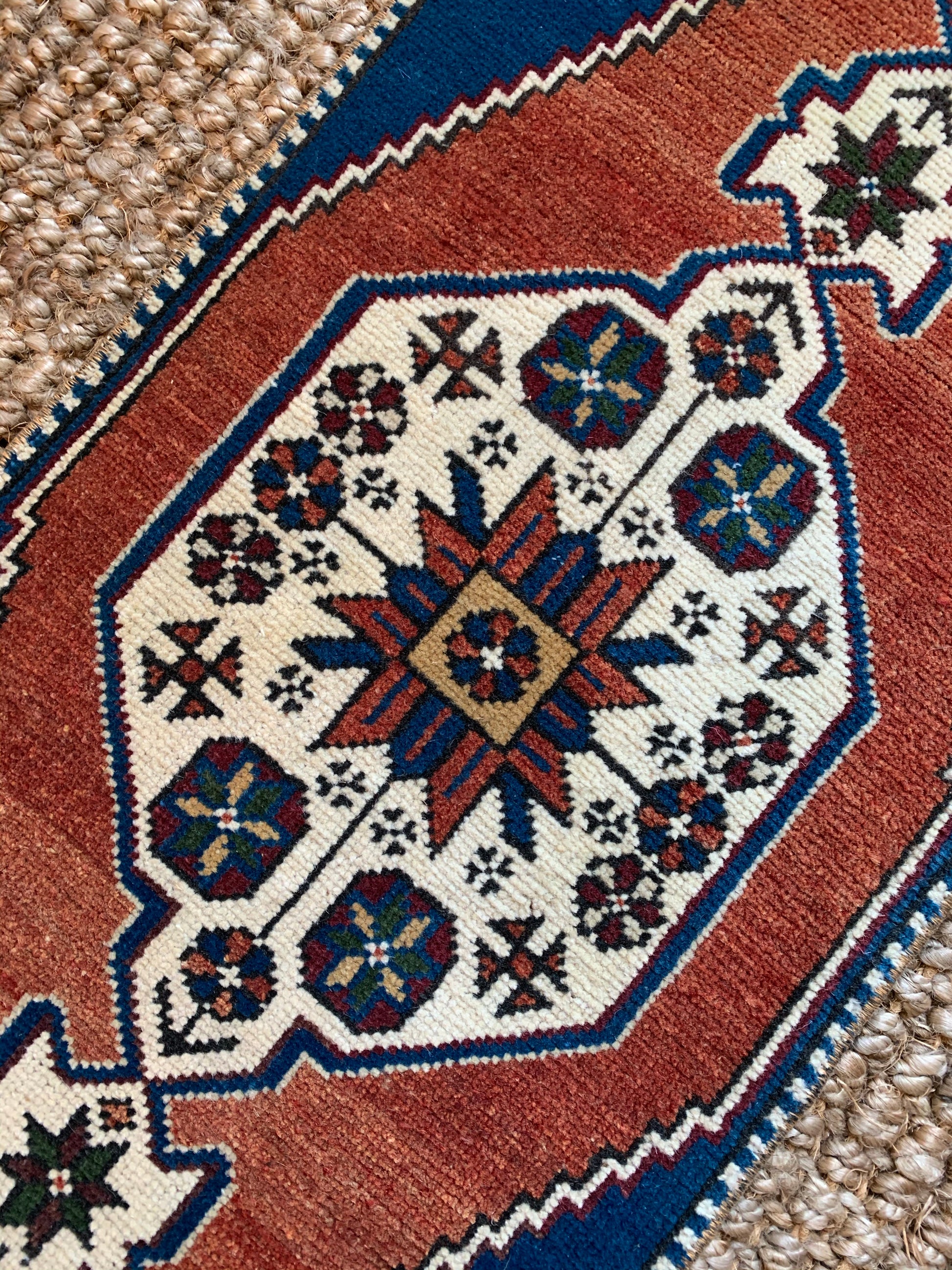 All rugs have been thoroughly cleaned; age-related wear and patina are considered normal in these unique, hand woven vintage rugs. All pieces have been photographed with moderate natural light. Colors may vary depending on your phone or screen settings. Some items may not be perfectly straight or rectangle. We consider these characteristics part of what makes them truly one-of-a-kind.
