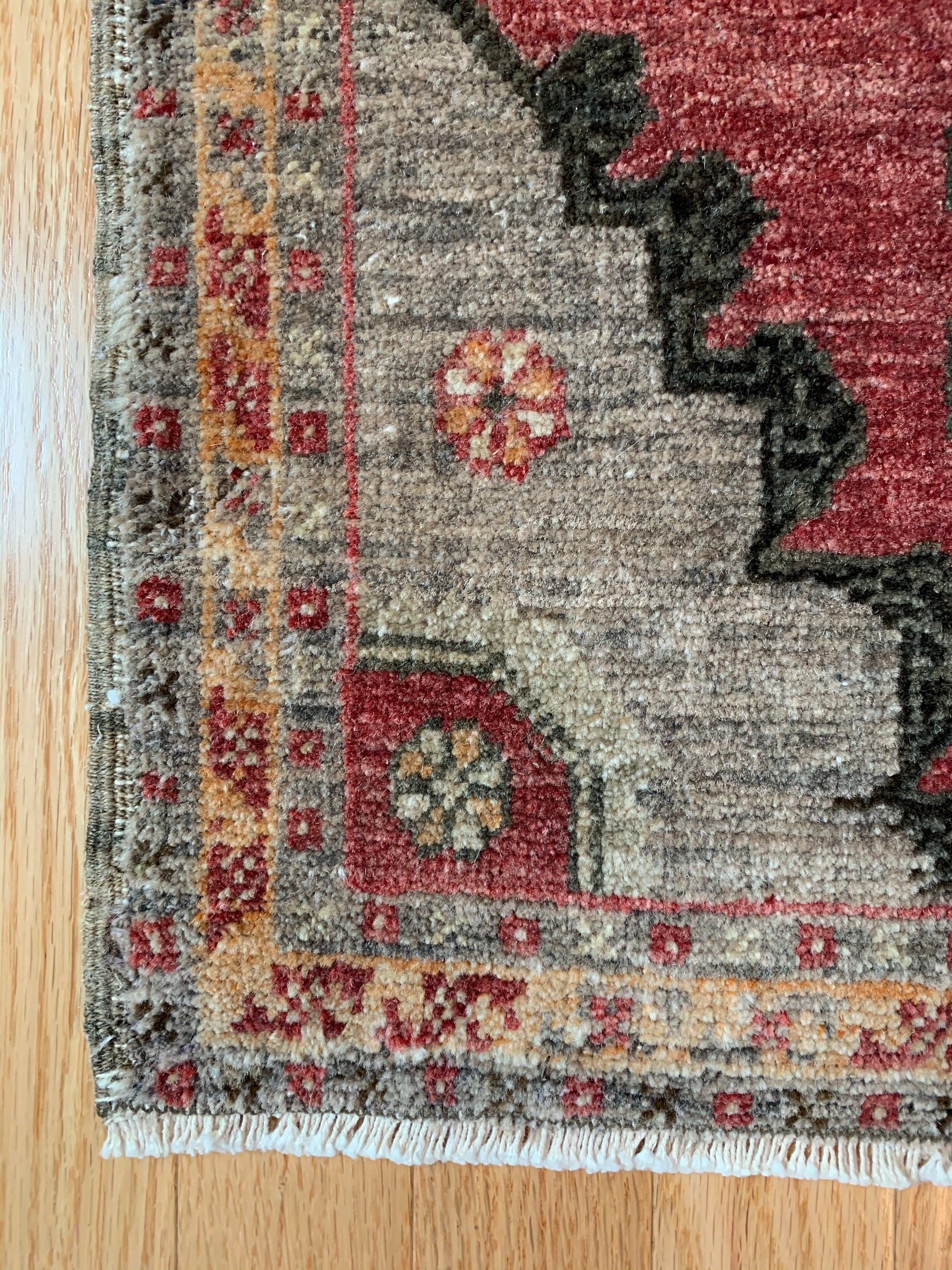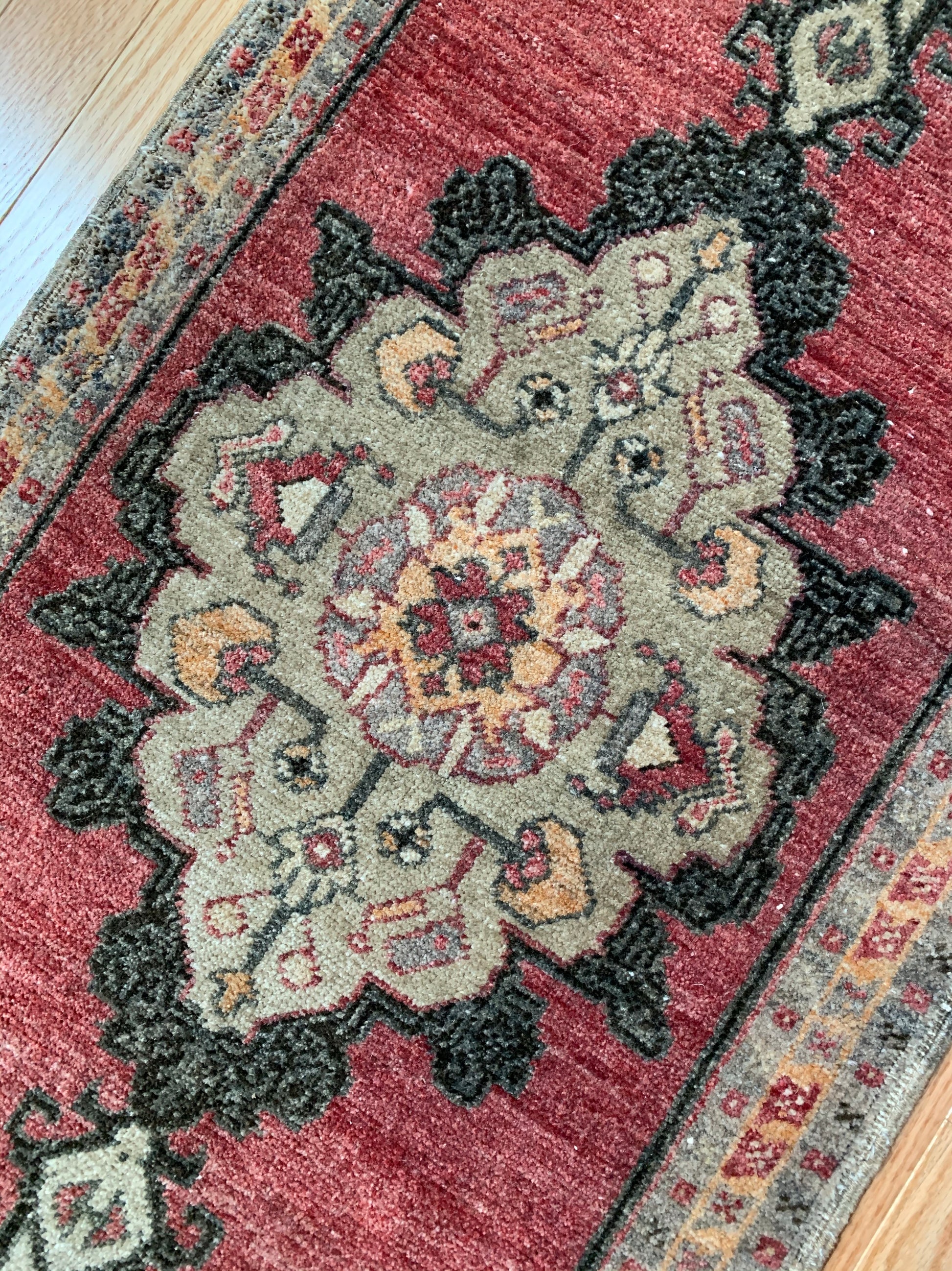 All rugs have been thoroughly cleaned; age-related wear and patina are considered normal in these unique, hand woven vintage rugs. All pieces have been photographed with moderate natural light. Colors may vary depending on your phone or screen settings. Some items may not be perfectly straight or rectangle. We consider these characteristics part of what makes them truly one-of-a-kind.