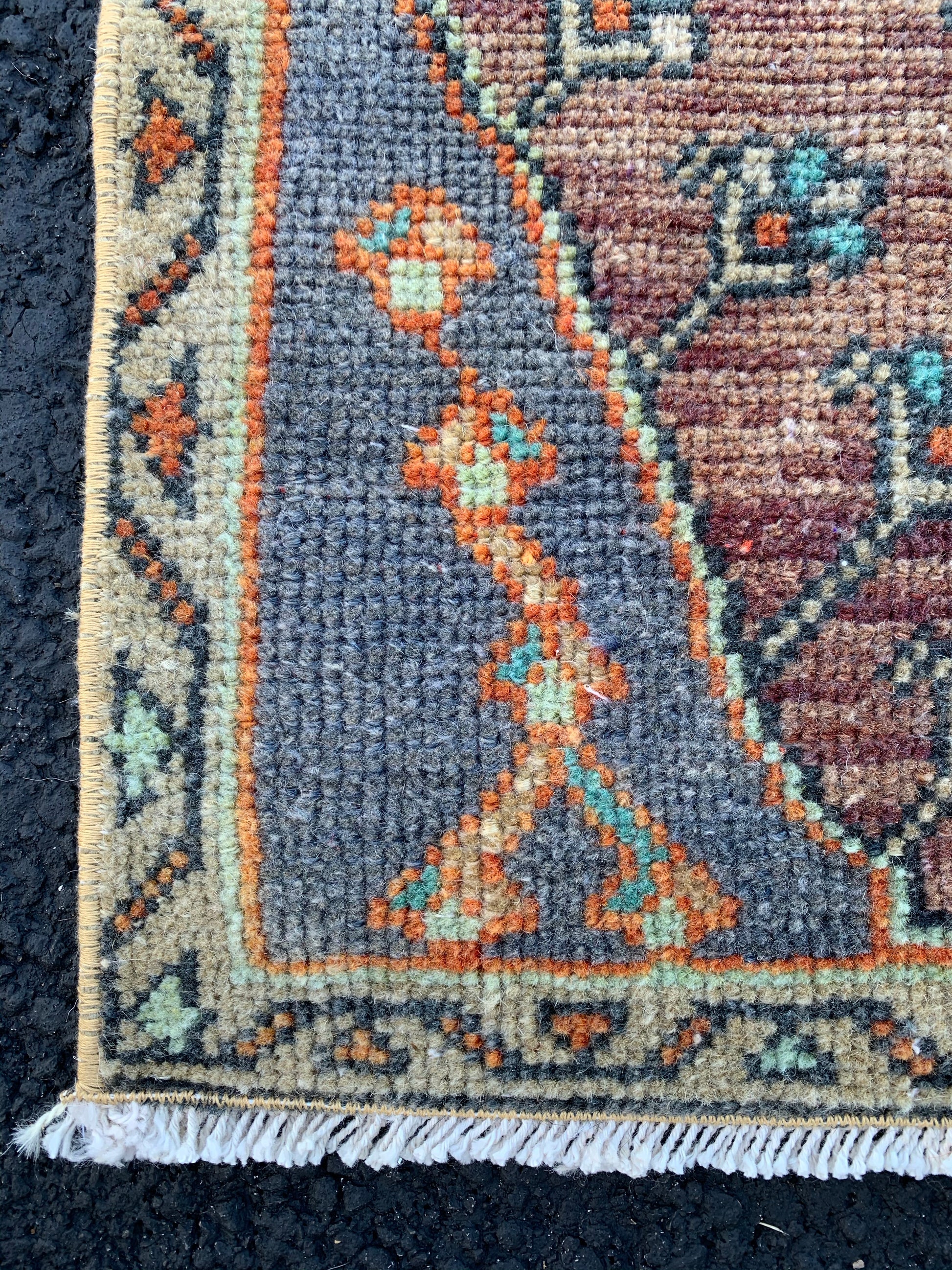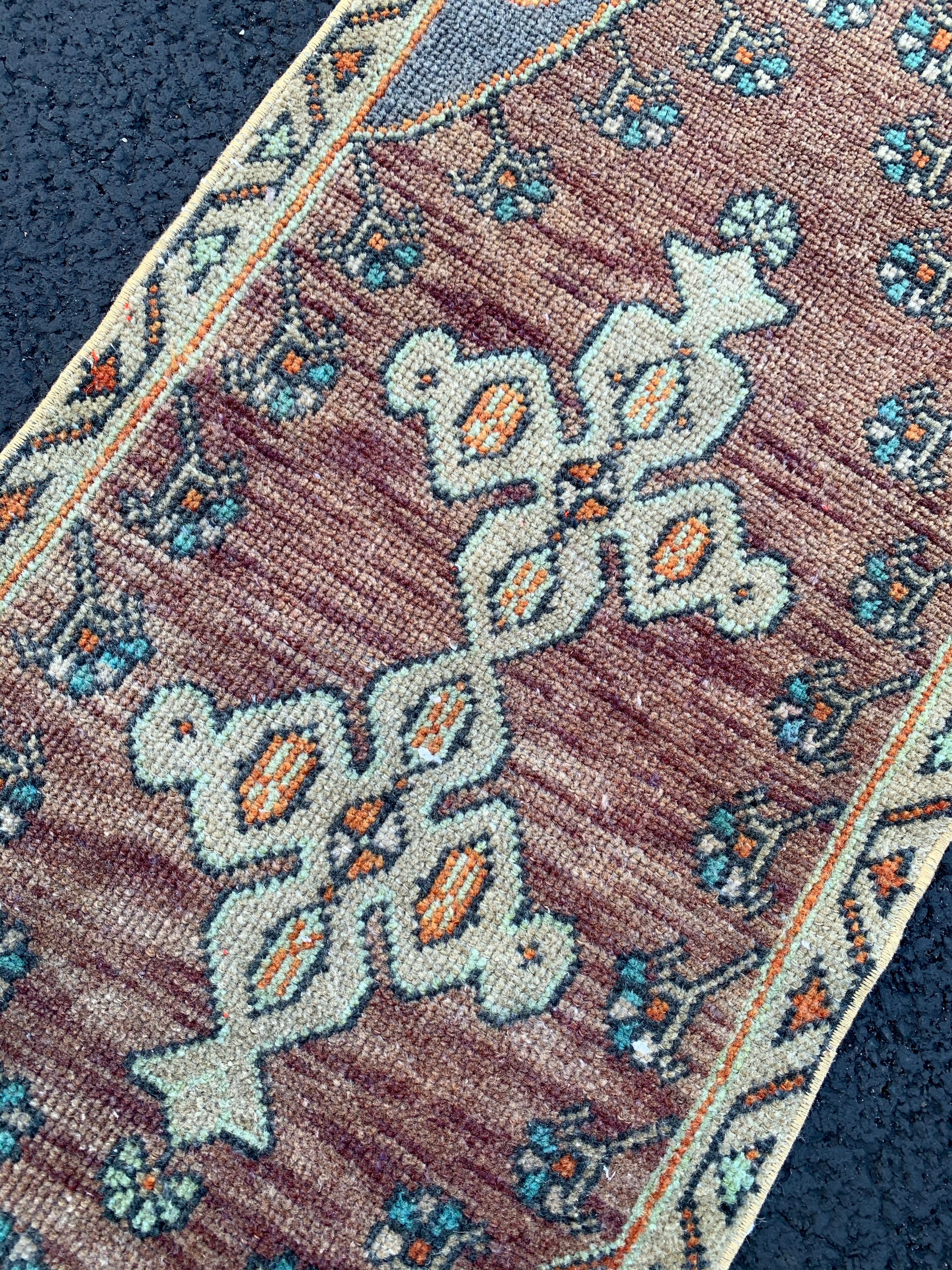 All rugs have been thoroughly cleaned; age-related wear and patina are considered normal in these unique, hand woven vintage rugs. All pieces have been photographed with moderate natural light. Colors may vary depending on your phone or screen settings. Some items may not be perfectly straight or rectangle. We consider these characteristics part of what makes them truly one-of-a-kind.