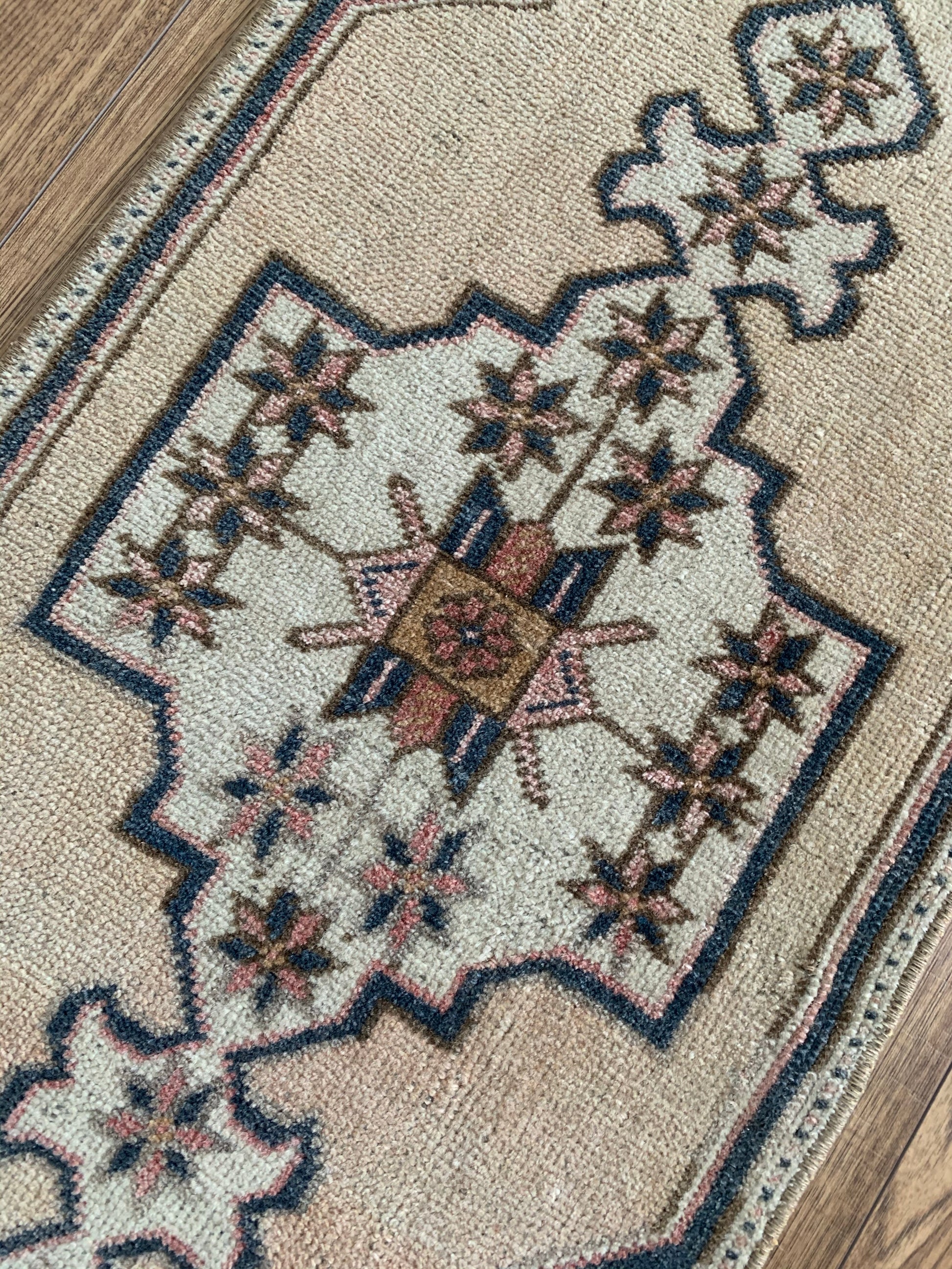 All rugs have been thoroughly cleaned; age-related wear and patina are considered normal in these unique, hand woven vintage rugs. All pieces have been photographed with moderate natural light. Colors may vary depending on your phone or screen settings. Some items may not be perfectly straight or rectangle. We consider these characteristics part of what makes them truly one-of-a-kind.