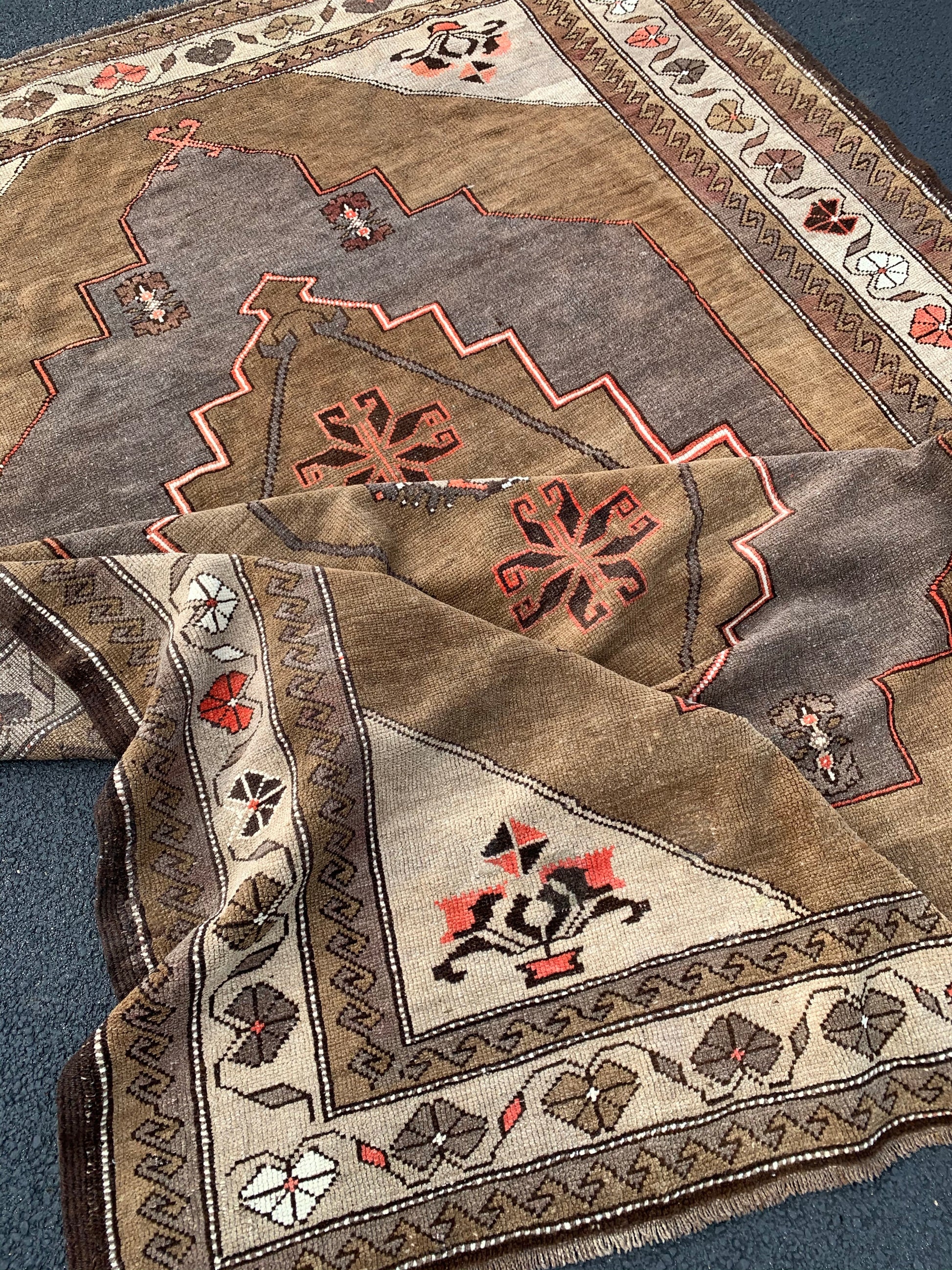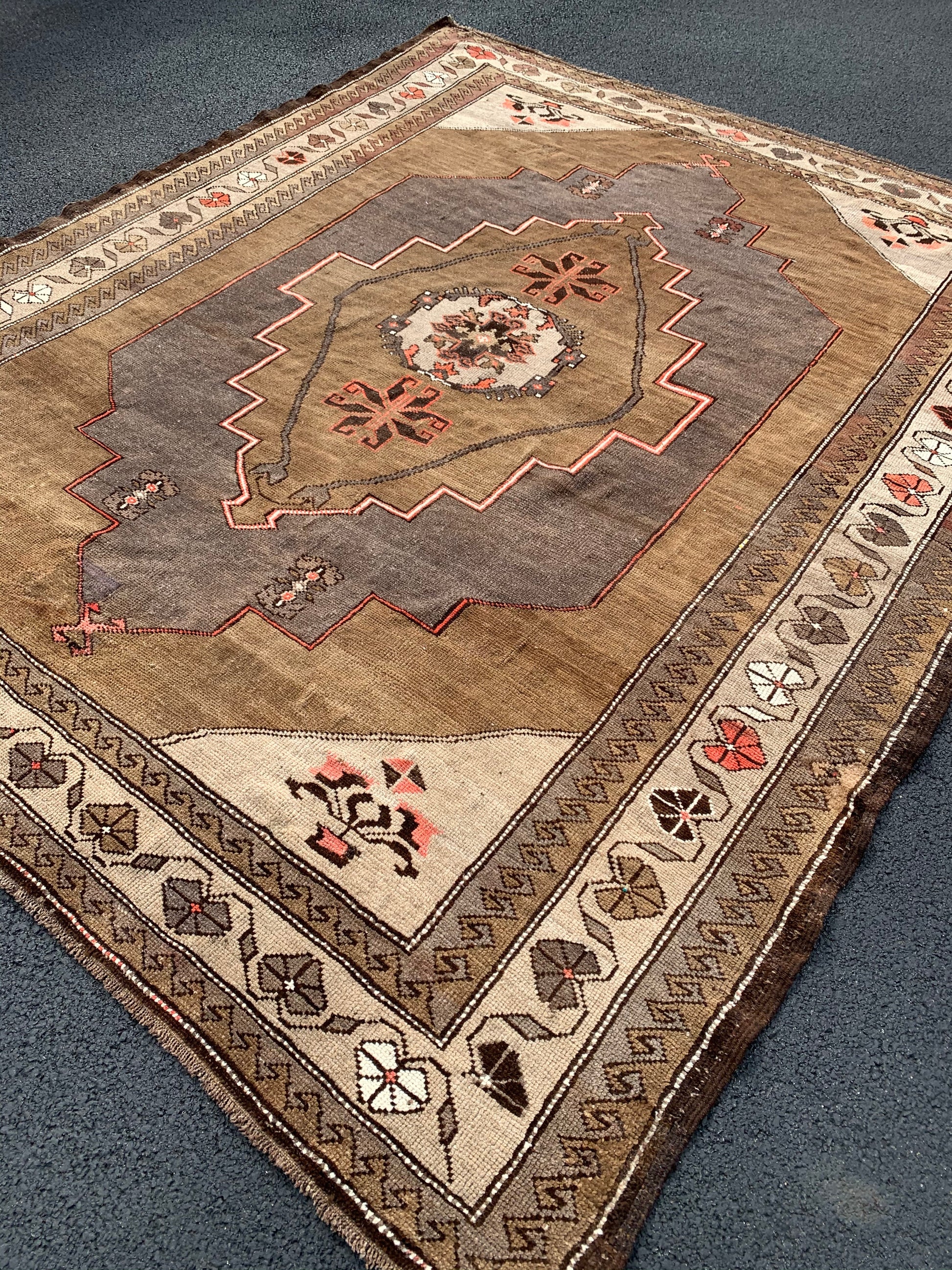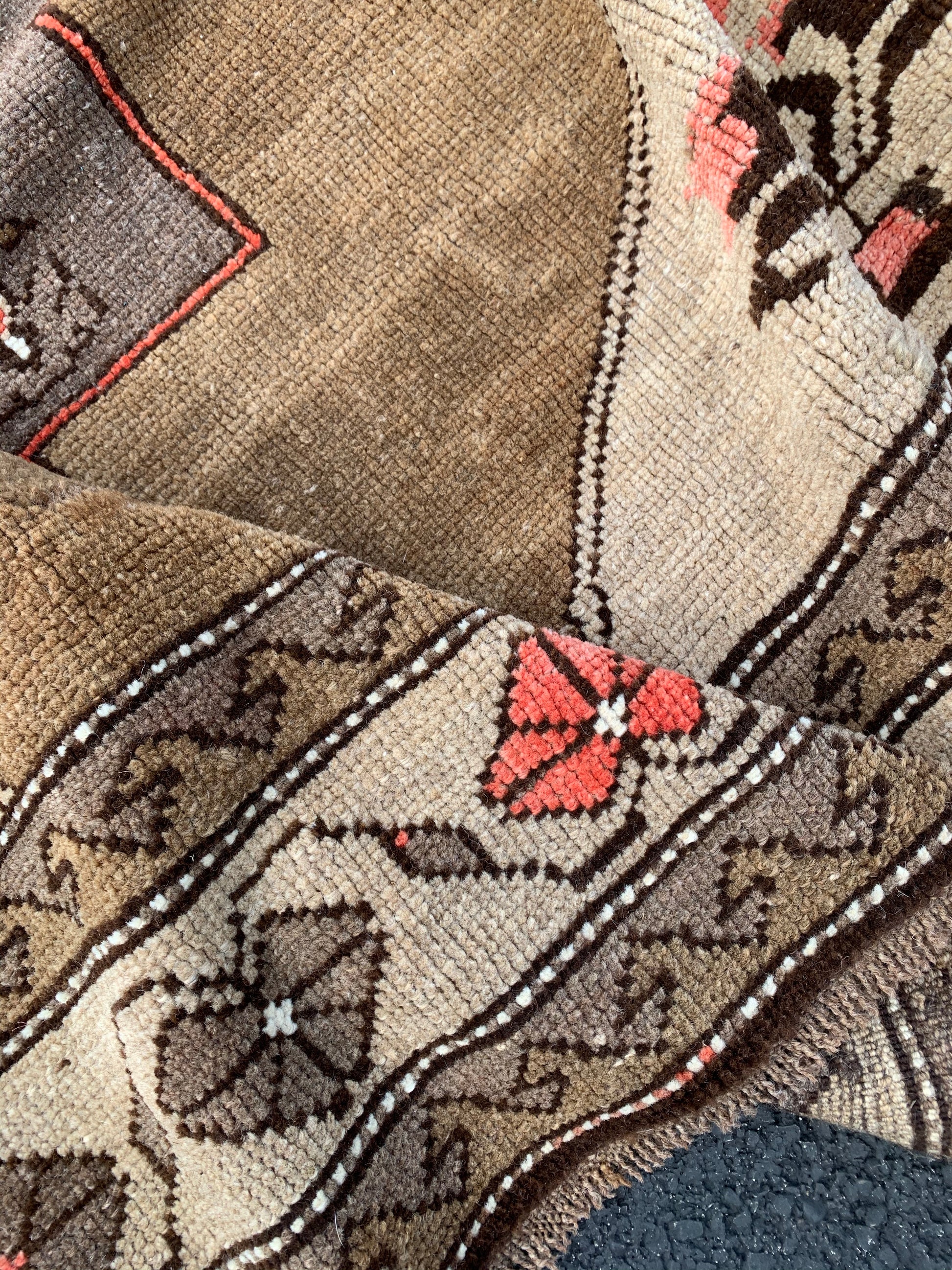 All rugs have been thoroughly cleaned; age-related wear and patina are considered normal in these unique, hand woven vintage rugs. All pieces have been photographed with moderate natural light. Colors may vary depending on your phone or screen settings. Some items may not be perfectly straight or rectangle. We consider these characteristics part of what makes them truly one-of-a-kind.