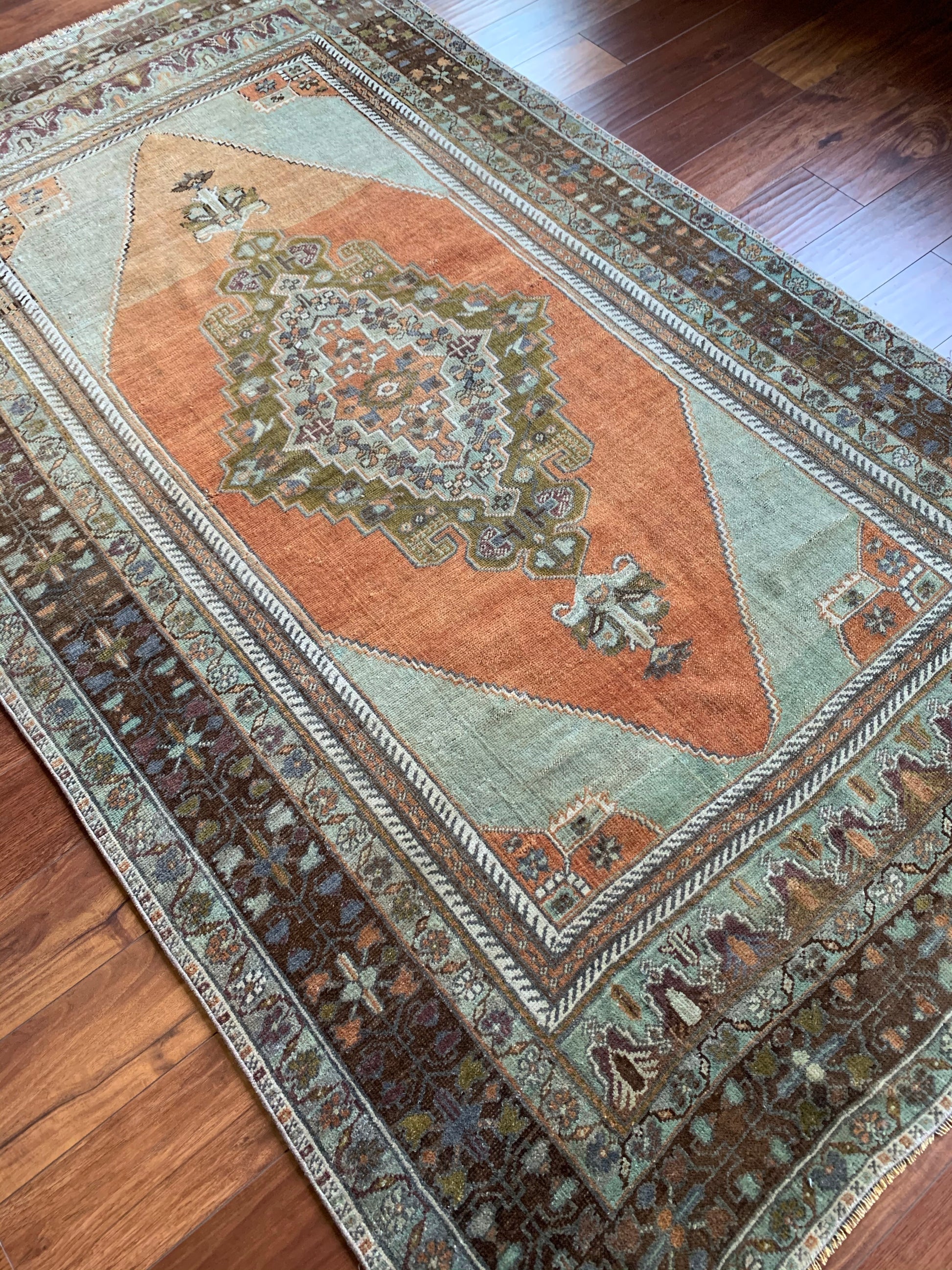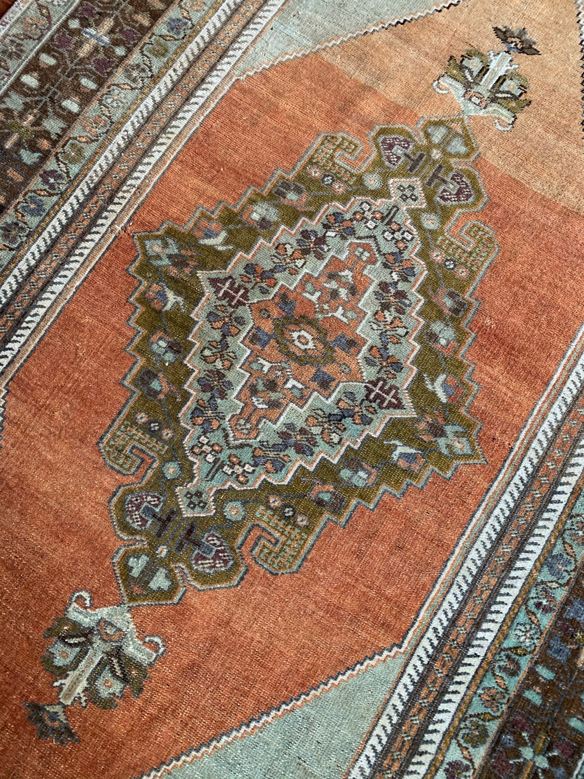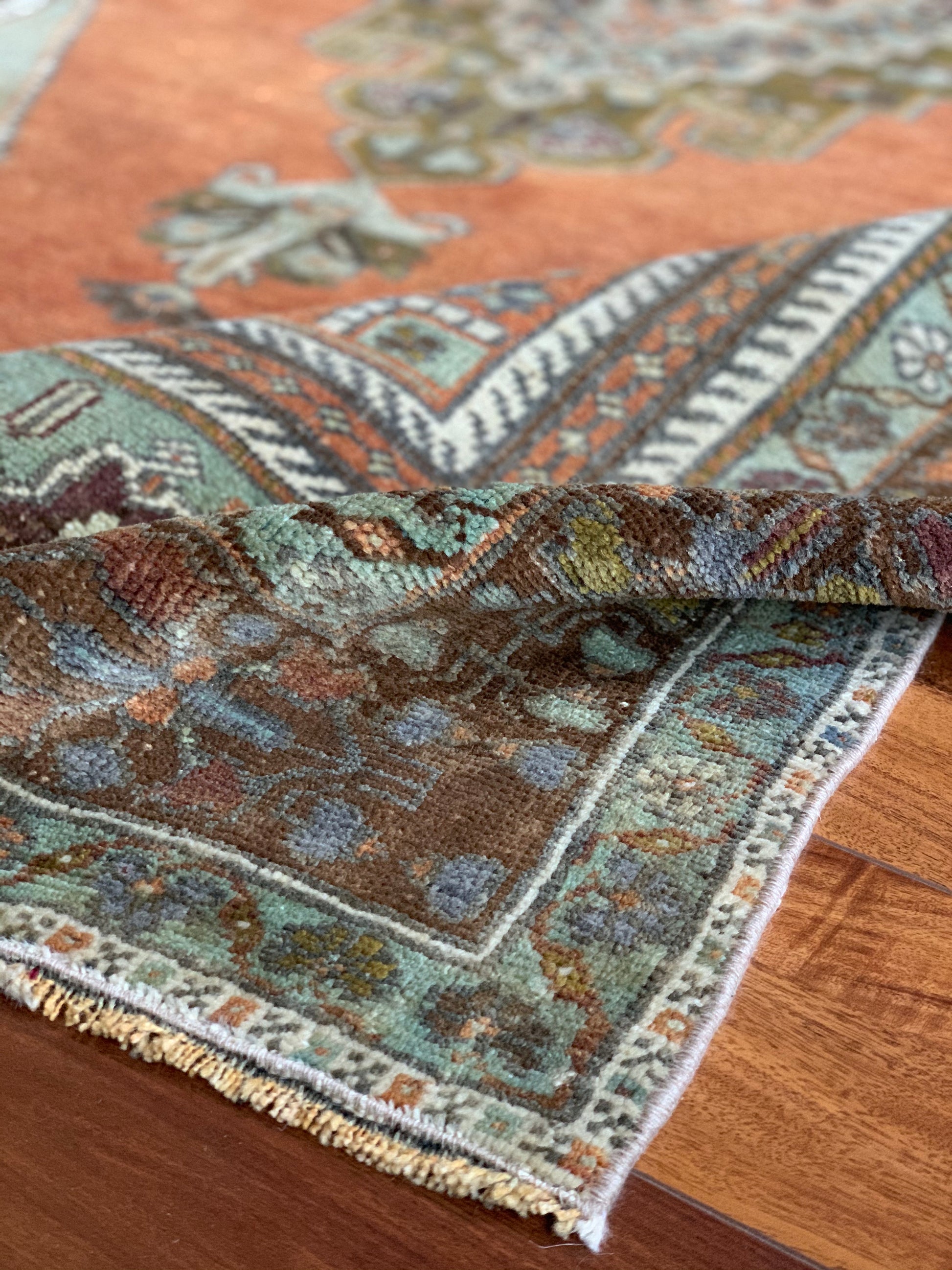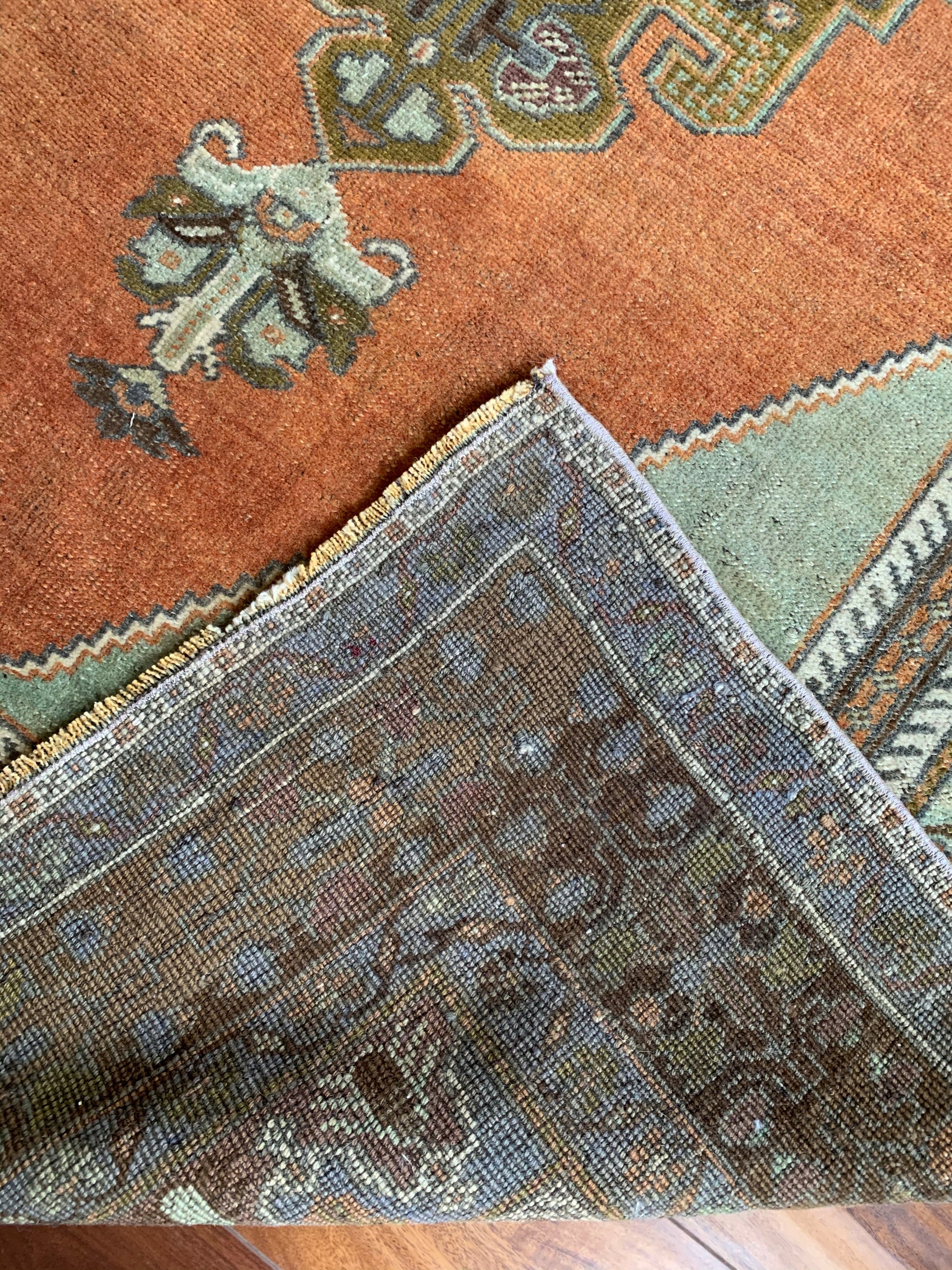 All rugs have been thoroughly cleaned; age-related wear and patina are considered normal in these unique, hand woven vintage rugs. All pieces have been photographed with moderate natural light. Colors may vary depending on your phone or screen settings. Some items may not be perfectly straight or rectangle. We consider these characteristics part of what makes them truly one-of-a-kind.