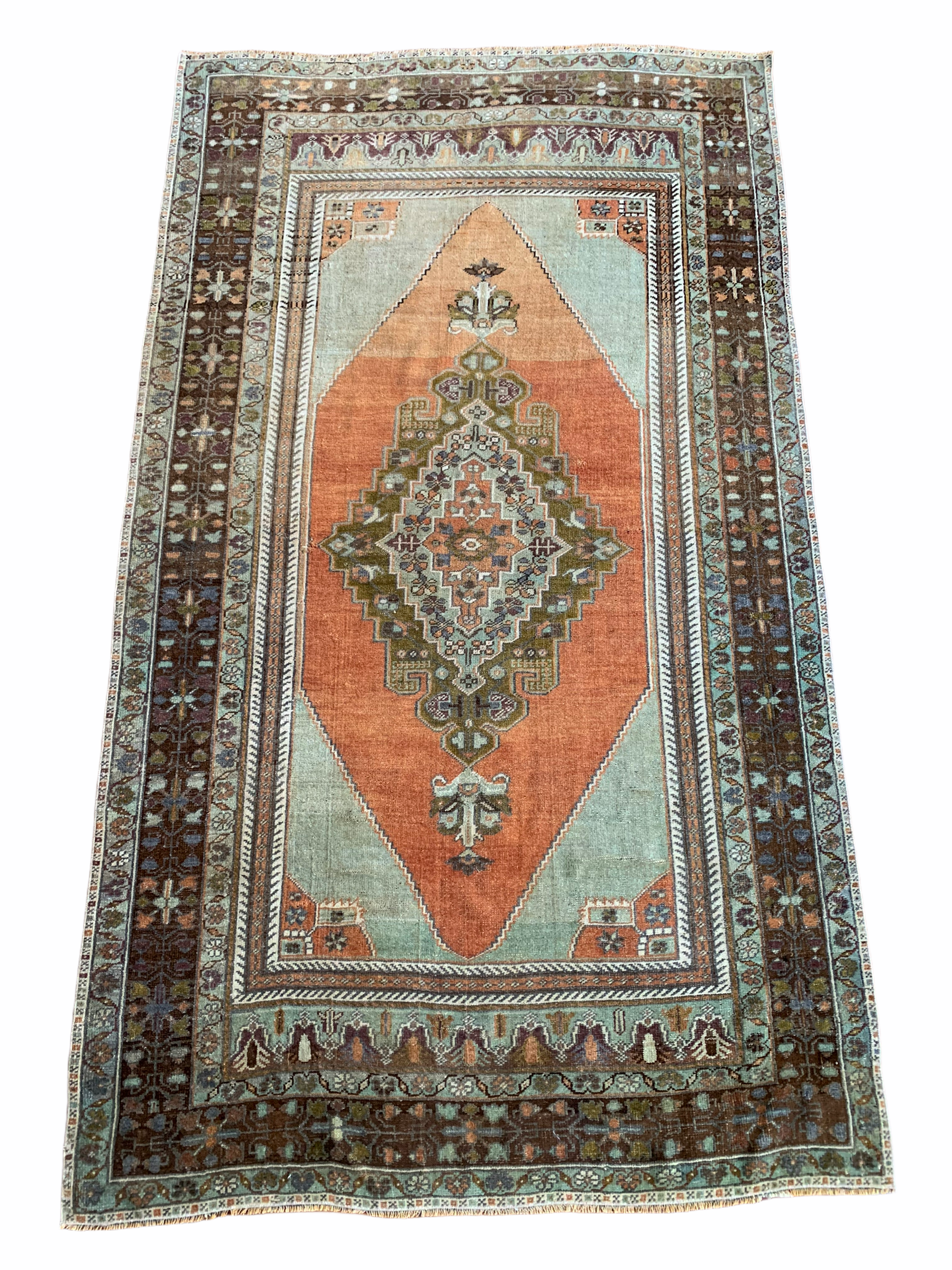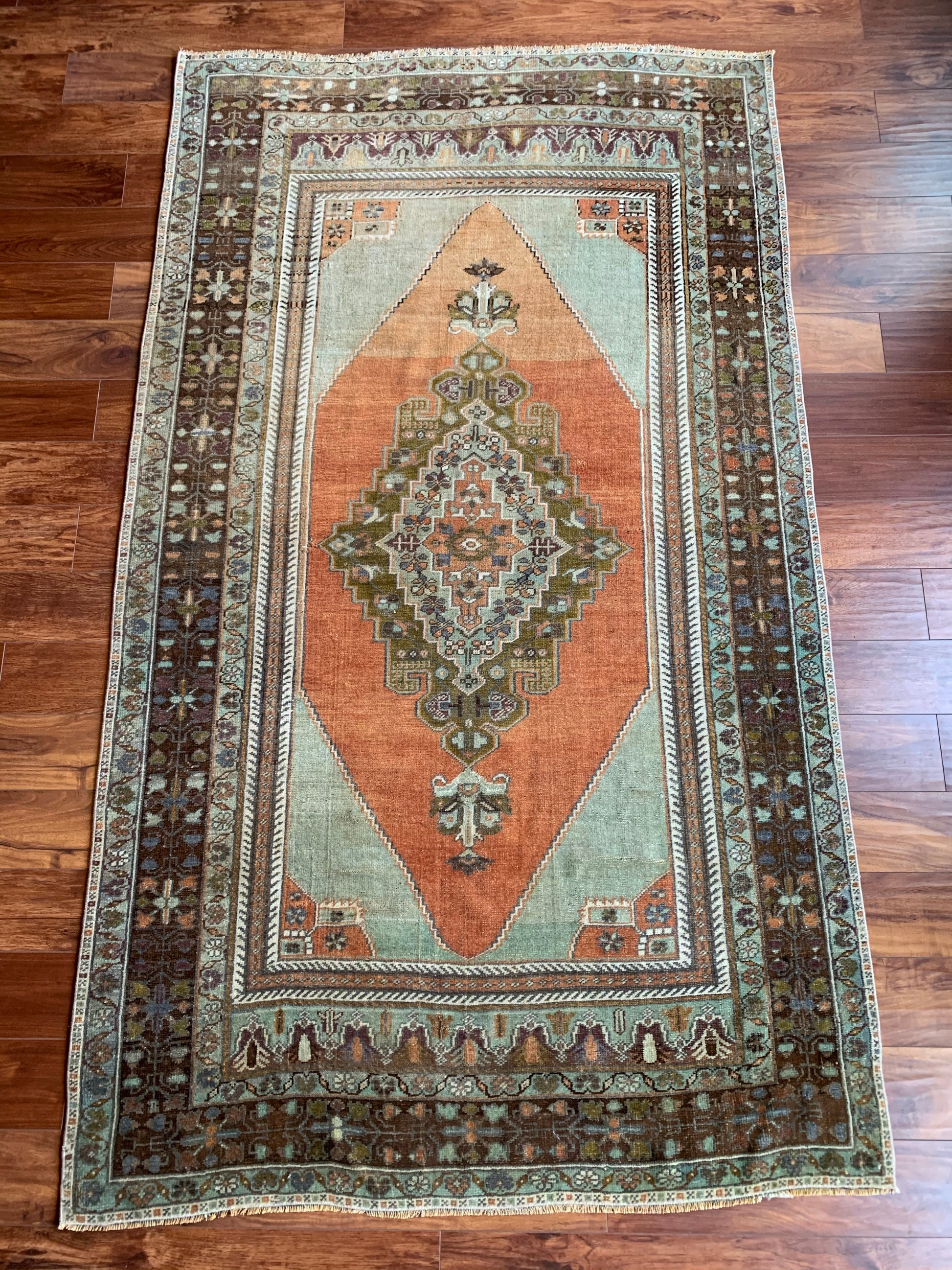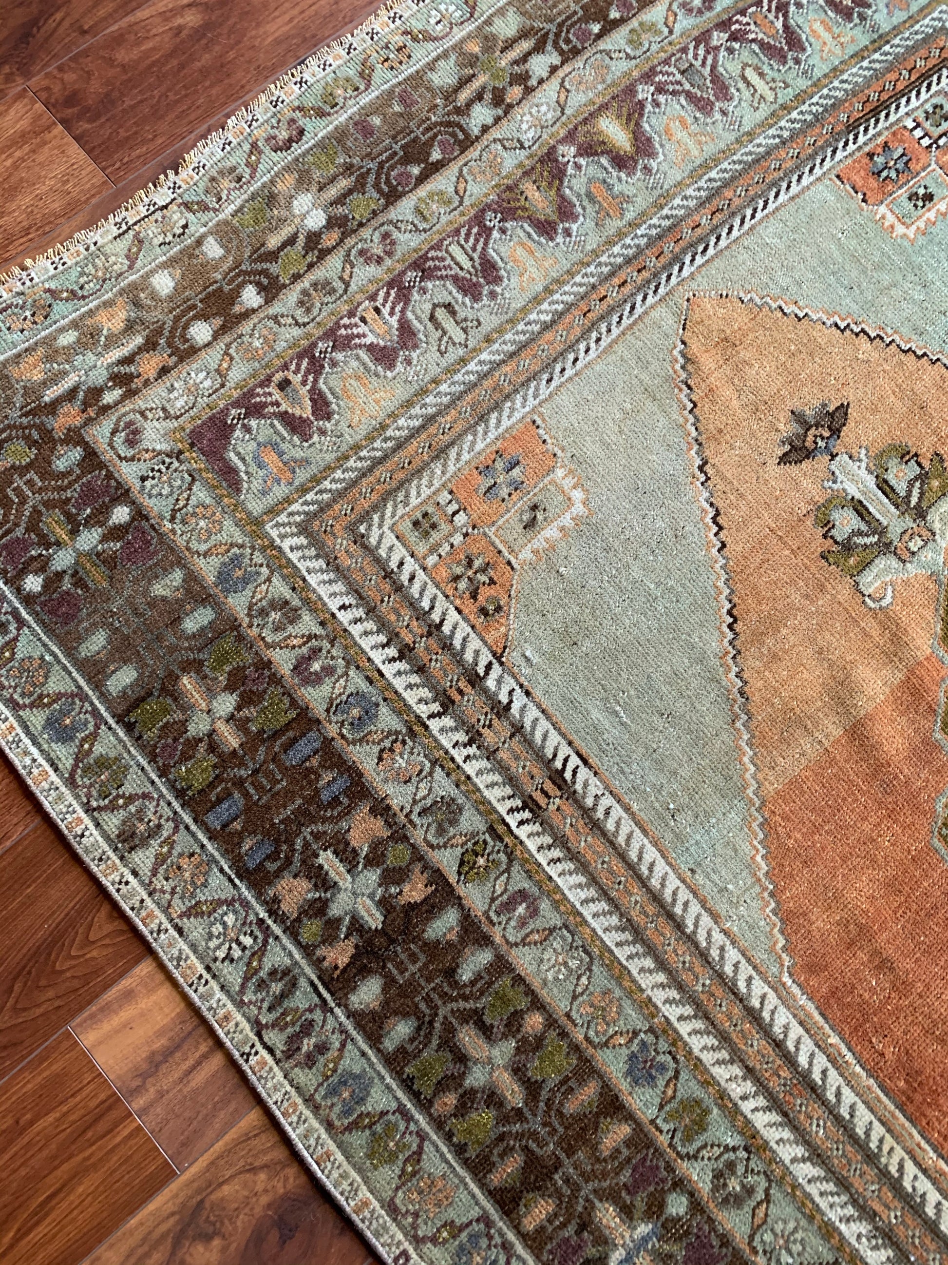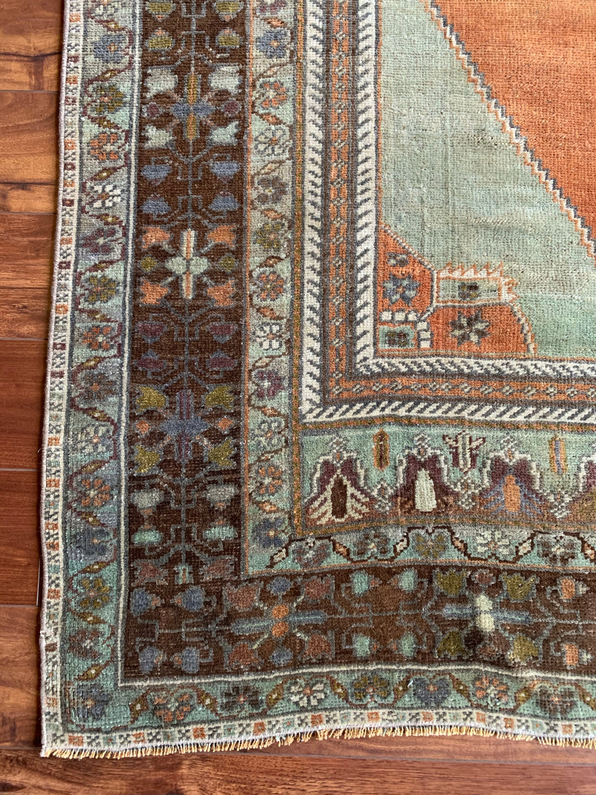 All rugs have been thoroughly cleaned; age-related wear and patina are considered normal in these unique, hand woven vintage rugs. All pieces have been photographed with moderate natural light. Colors may vary depending on your phone or screen settings. Some items may not be perfectly straight or rectangle. We consider these characteristics part of what makes them truly one-of-a-kind.