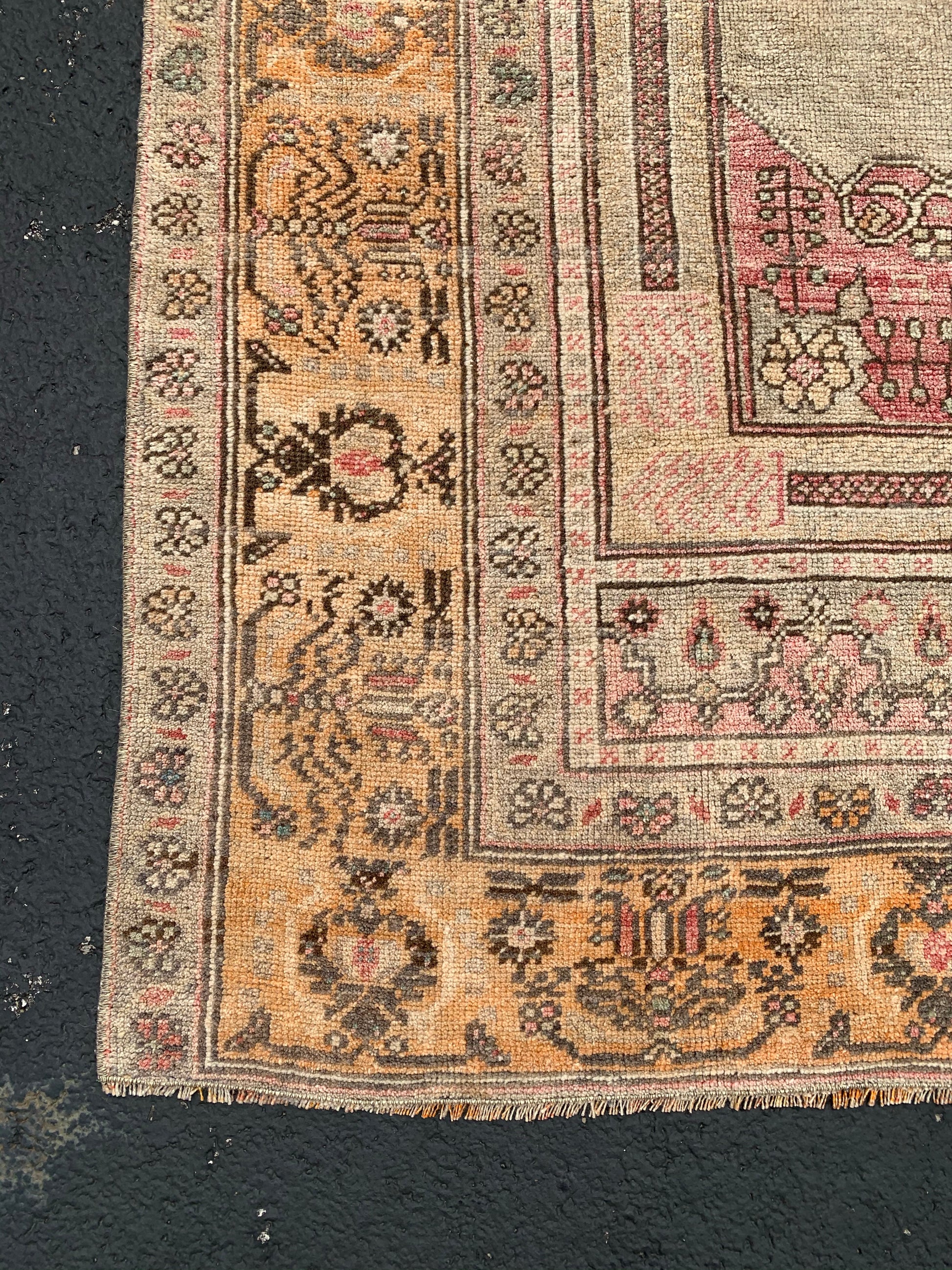 All rugs have been thoroughly cleaned; age-related wear and patina are considered normal in these unique, hand woven vintage rugs. All pieces have been photographed with moderate natural light. Colors may vary depending on your phone or screen settings. Some items may not be perfectly straight or rectangle. We consider these characteristics part of what makes them truly one-of-a-kind.
