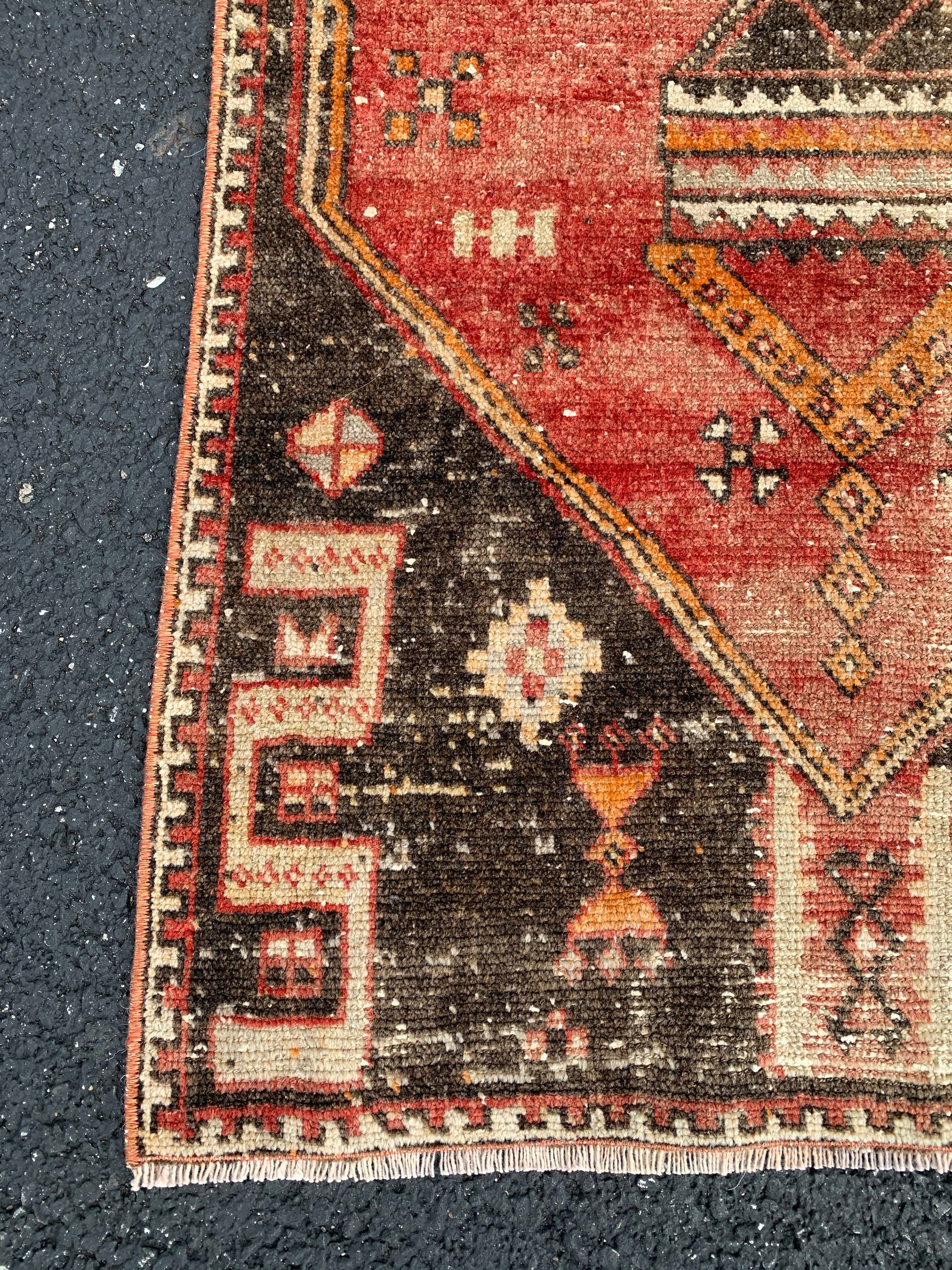 All rugs have been thoroughly cleaned; age-related wear and patina are considered normal in these unique, hand woven vintage rugs. All pieces have been photographed with moderate natural light. Colors may vary depending on your phone or screen settings. Some items may not be perfectly straight or rectangle. We consider these characteristics part of what makes them truly one-of-a-kind.