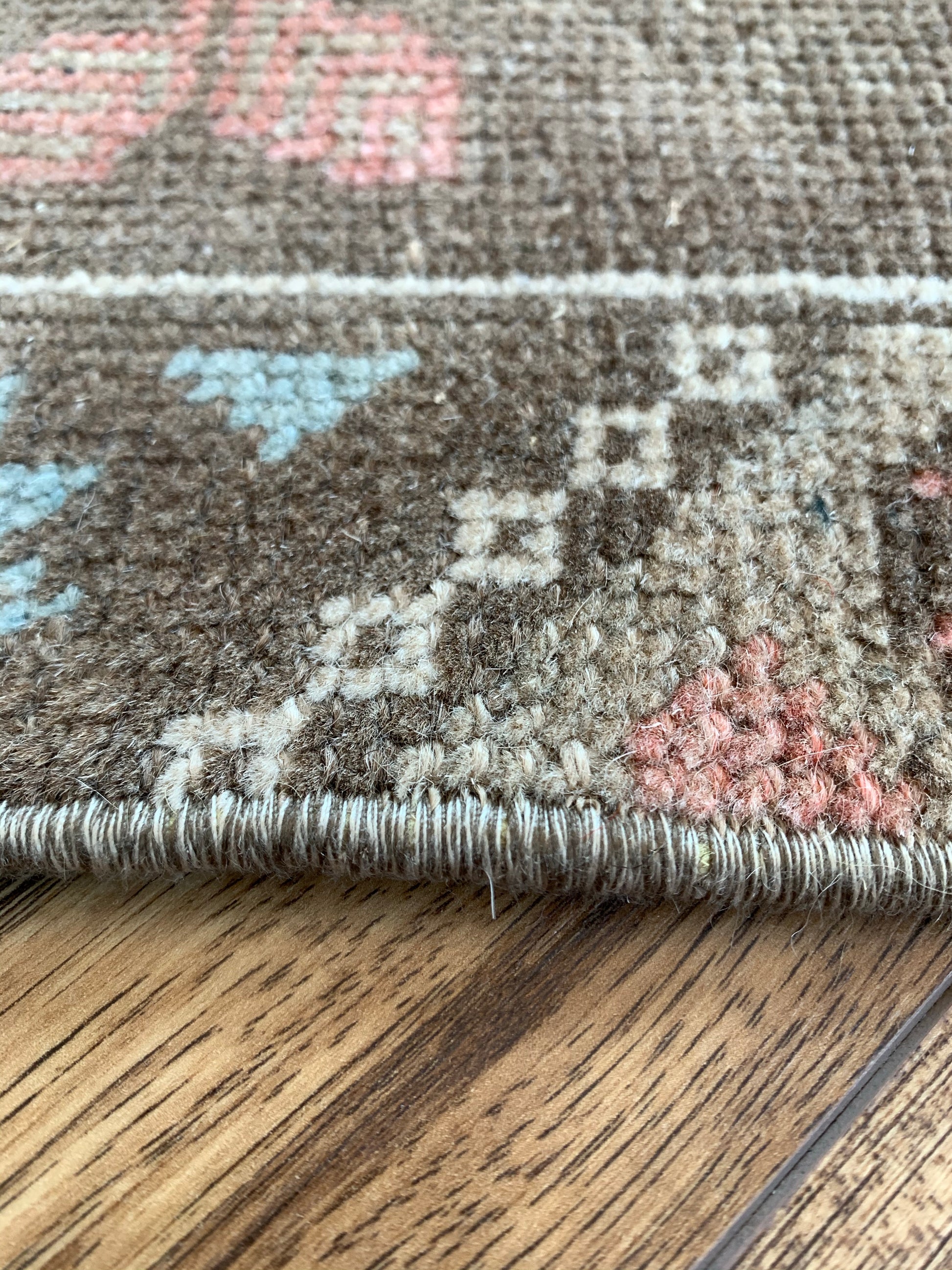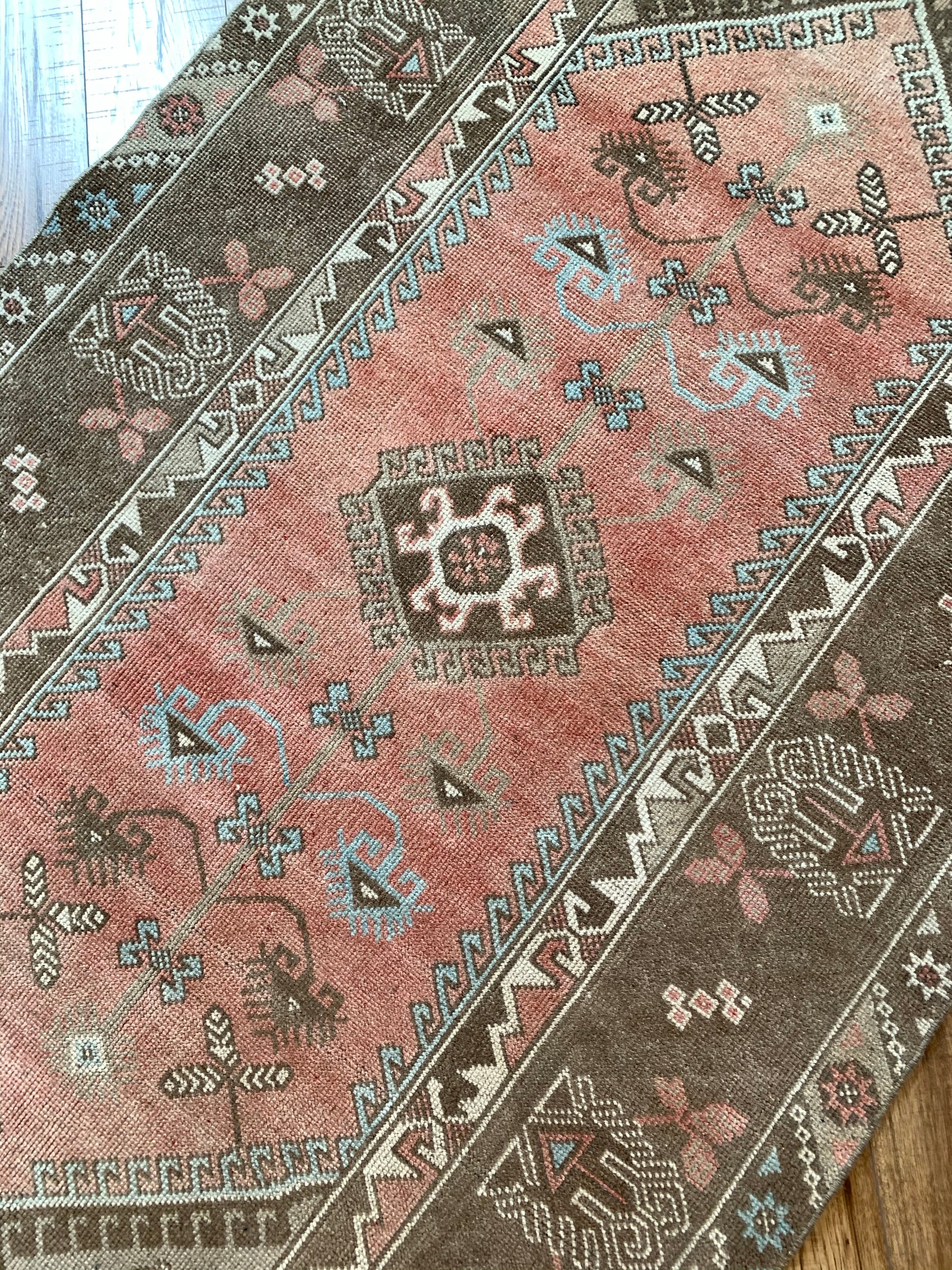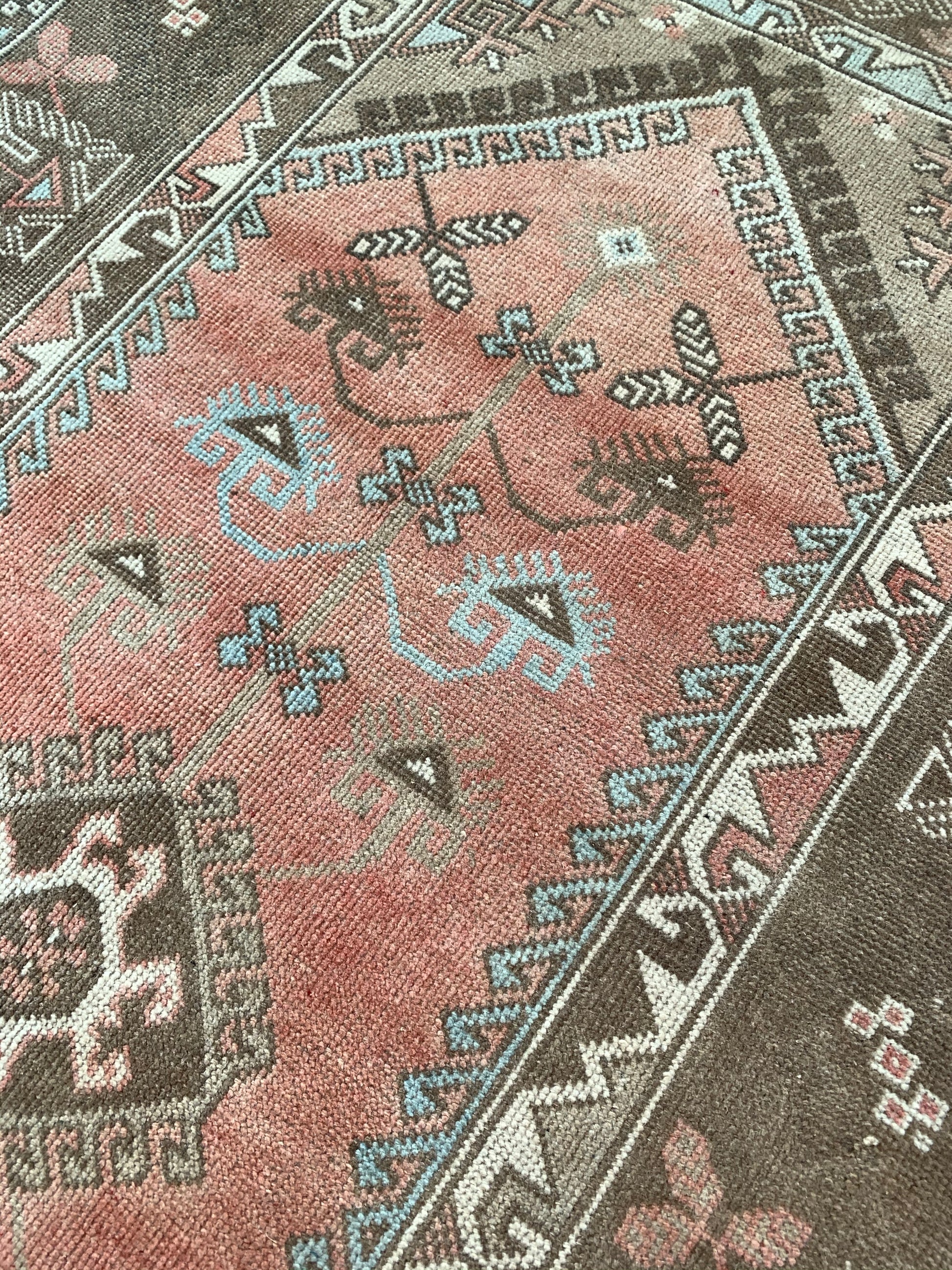 All rugs have been thoroughly cleaned; age-related wear and patina are considered normal in these unique, hand woven vintage rugs. All pieces have been photographed with moderate natural light. Colors may vary depending on your phone or screen settings. Some items may not be perfectly straight or rectangle. We consider these characteristics part of what makes them truly one-of-a-kind.