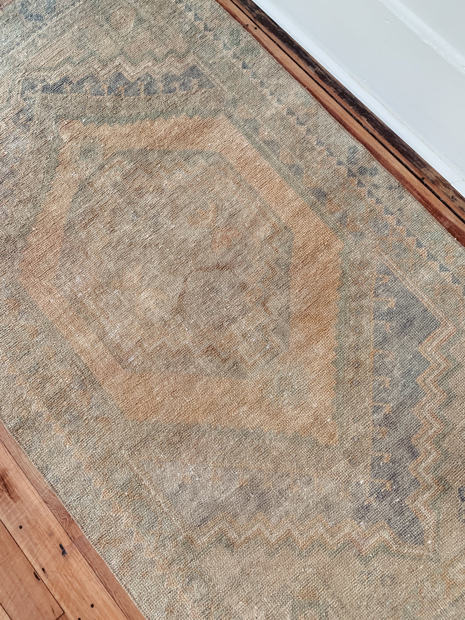 All rugs have been thoroughly cleaned; age-related wear and patina are considered normal in these unique, hand woven vintage rugs. All pieces have been photographed with moderate natural light. In some cases, photos are edited to depict the most true to life colors. Colors may vary depending on your phone or screen settings. Some items may not be perfectly straight or rectangle. We consider these characteristics part of what makes them truly one-of-a-kind.