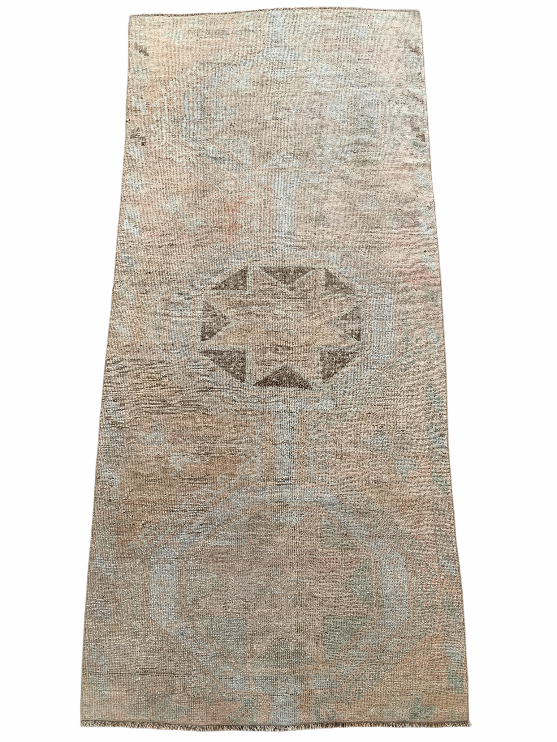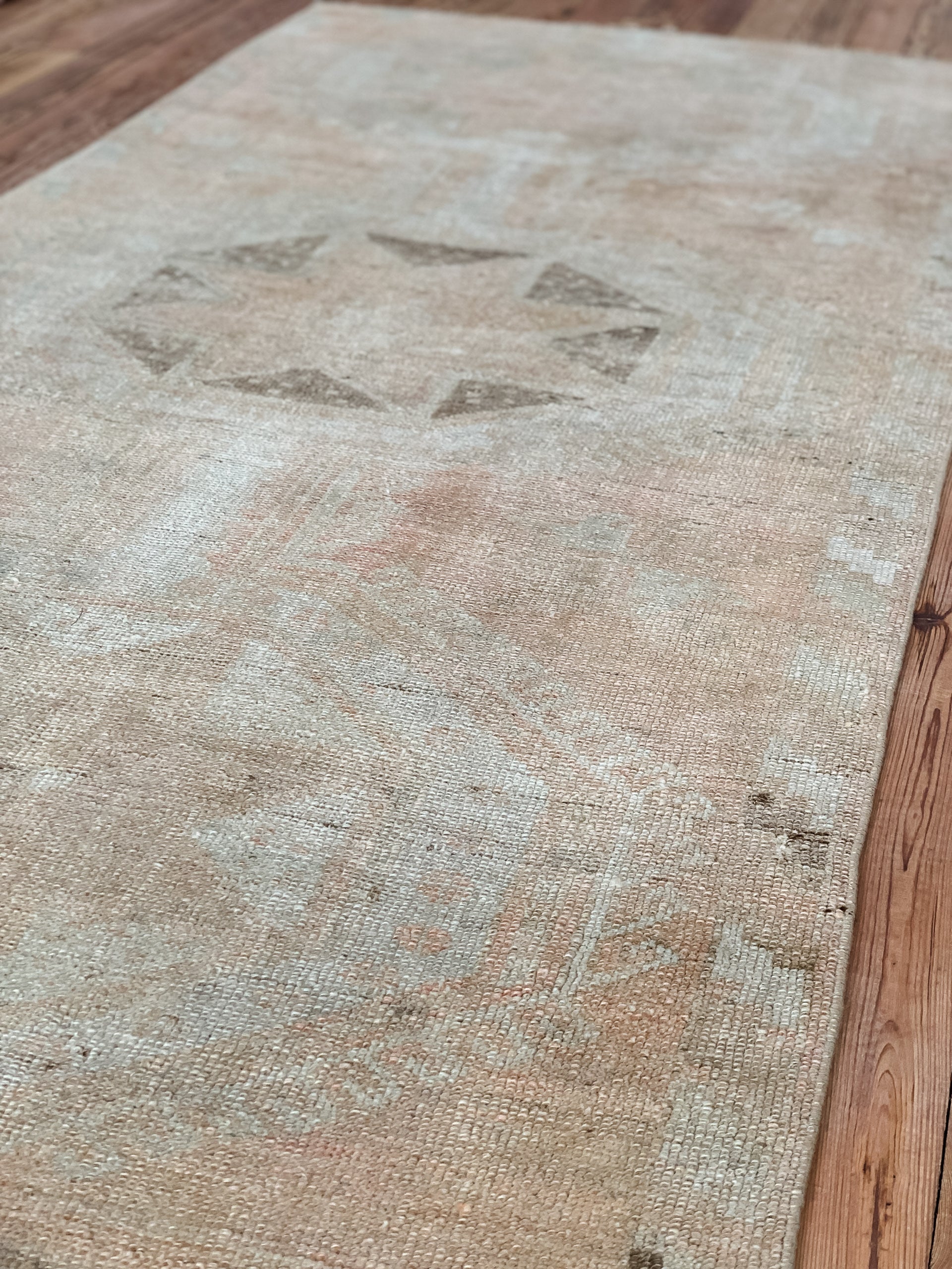 All rugs have been thoroughly cleaned; age-related wear and patina are considered normal in these unique, hand woven vintage rugs. All pieces have been photographed with moderate natural light. Colors may vary depending on your phone or screen settings. Some items may not be perfectly straight or rectangle. We consider these characteristics part of what makes them truly one-of-a-kind.