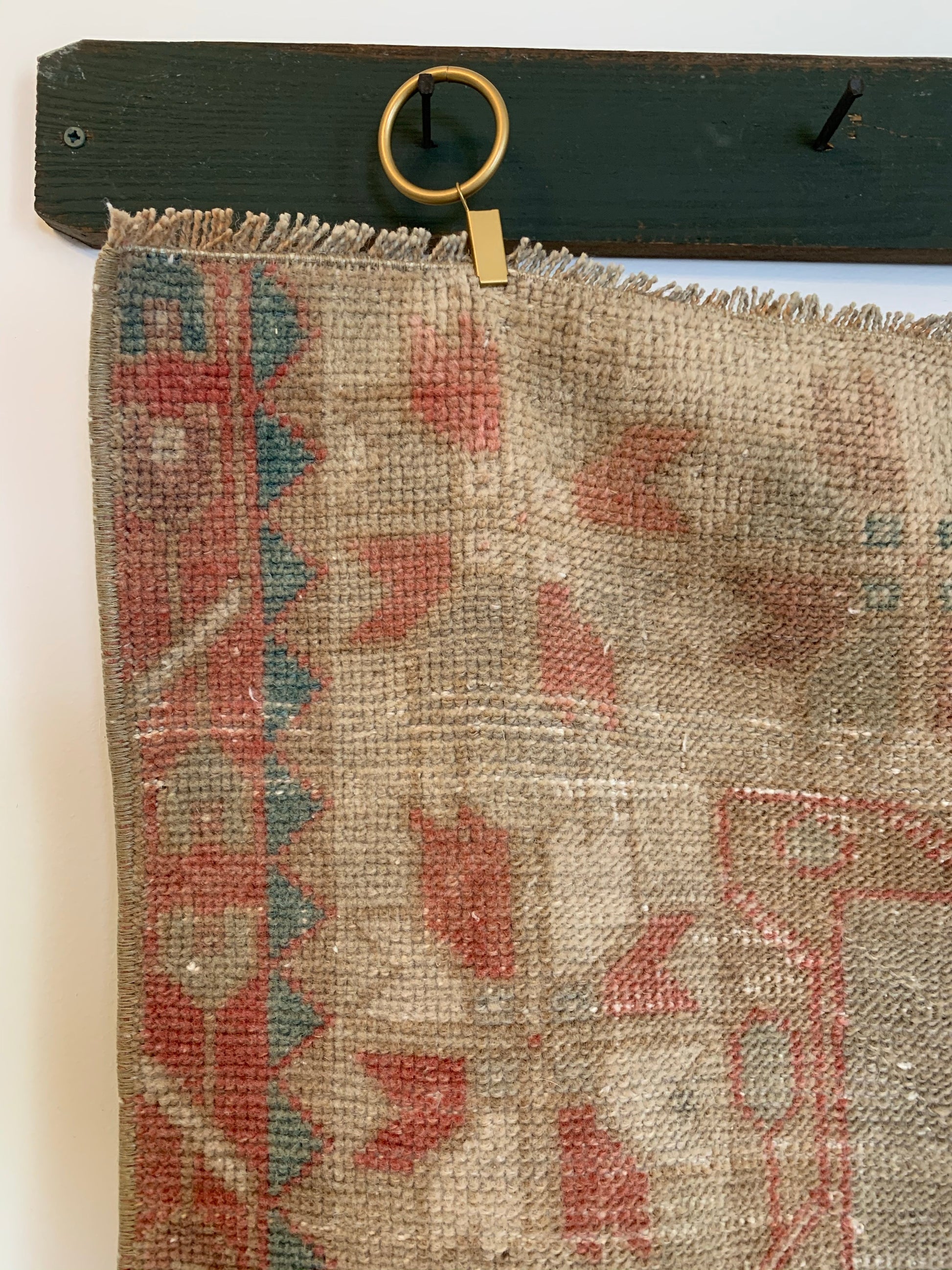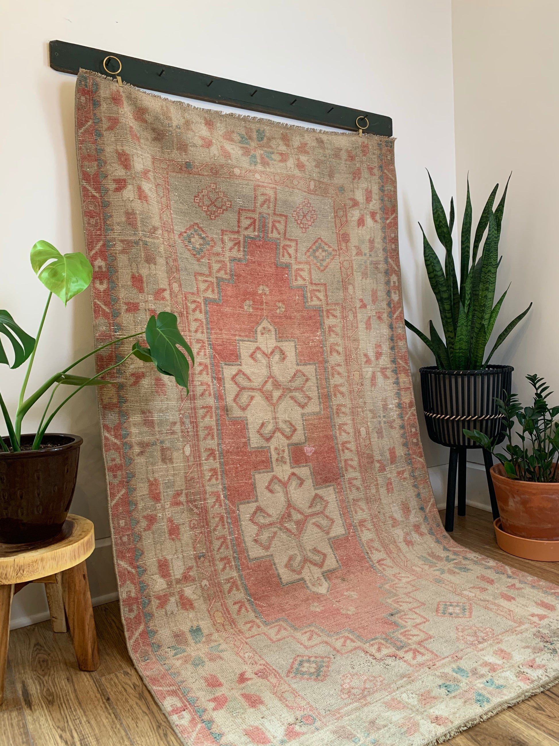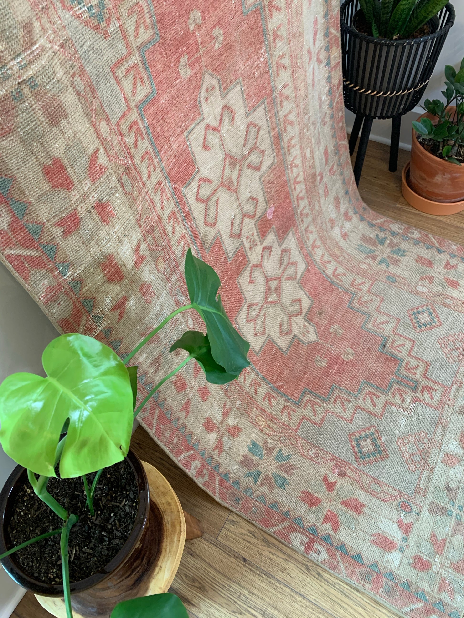Cleaning: Vacuum on occasion, with suction only. Spot clean with clear soap, a little bit of white vinegar, and water. Never use a carpet cleaner machine to clean a vintage rug. If your piece is fragile or antique, or needs a deep clean, take it to a professional.