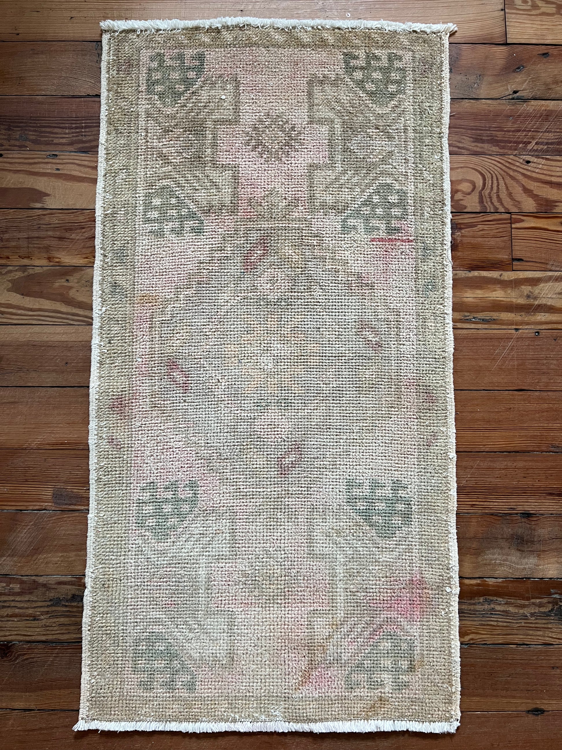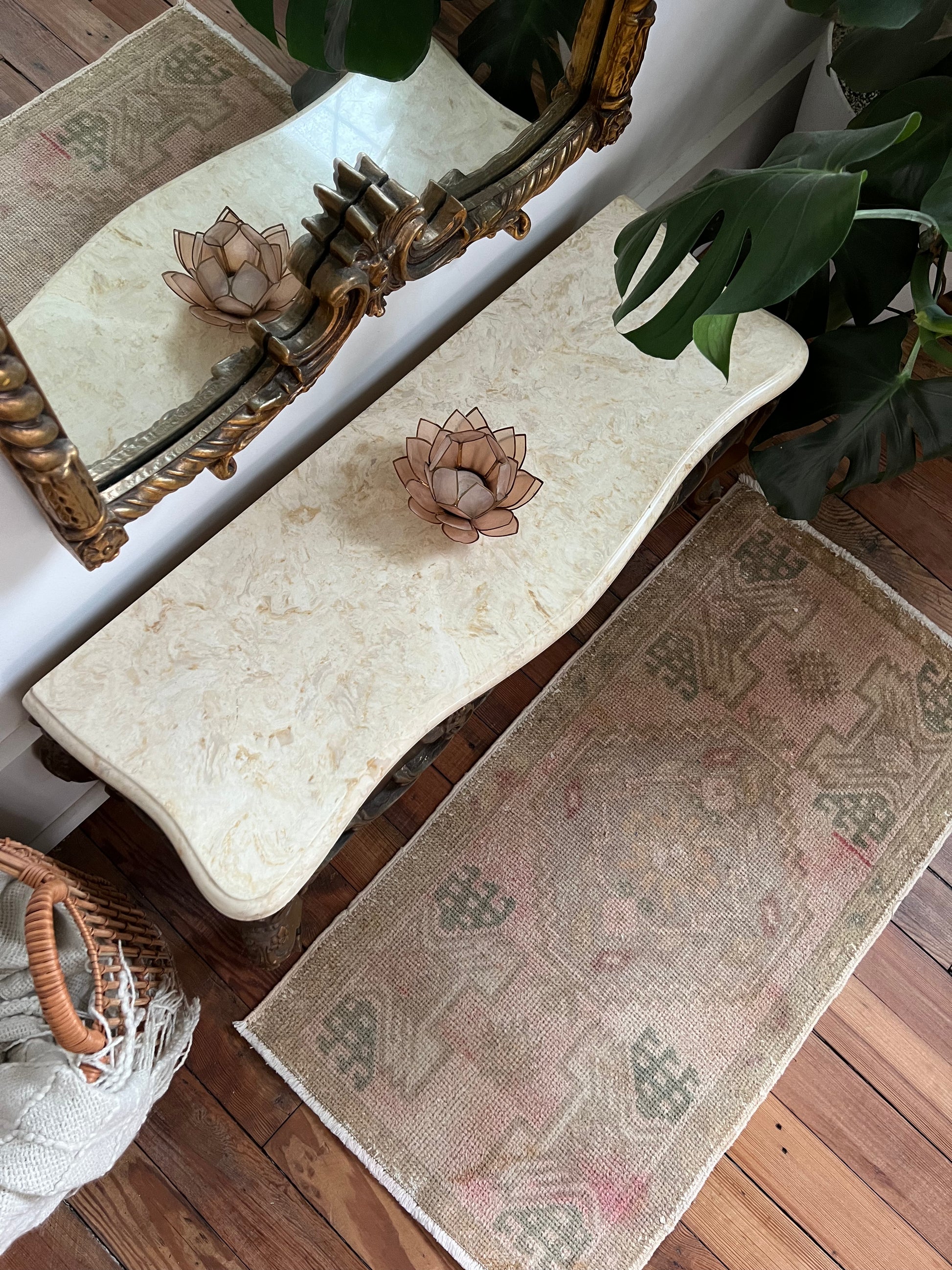 Cleaning: Vacuum on occasion, with suction only. Spot clean with clear soap, a little bit of white vinegar, and water. Never use a carpet cleaner machine to clean a vintage rug. If your piece is fragile or antique, or needs a deep clean, take it to a professional.