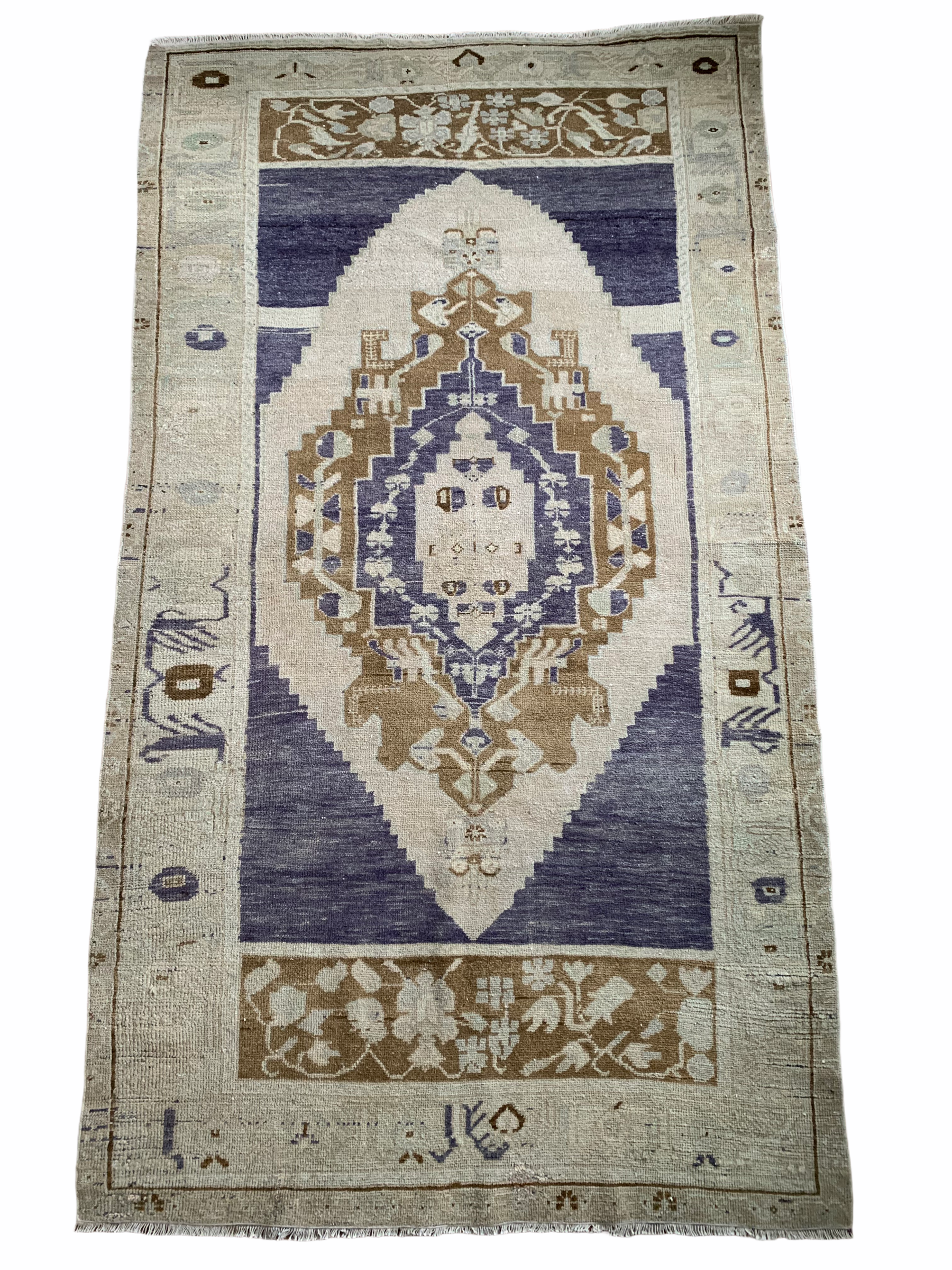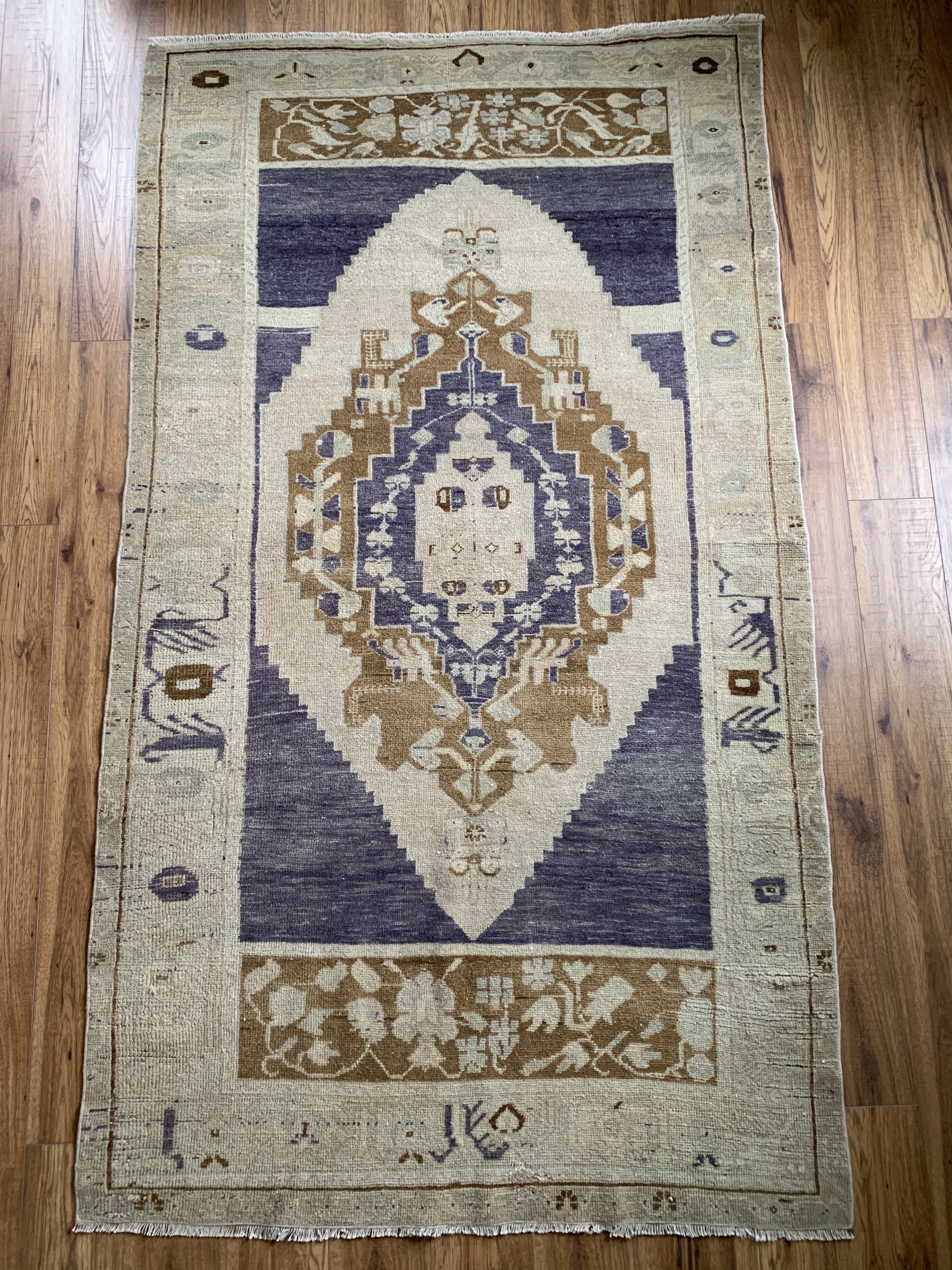 All rugs have been thoroughly cleaned; age-related wear and patina are considered normal in these unique, hand woven vintage rugs. All pieces have been photographed with moderate natural light. Colors may vary depending on your phone or screen settings. Some items may not be perfectly straight or rectangle. We consider these characteristics part of what makes them truly one-of-a-kind.