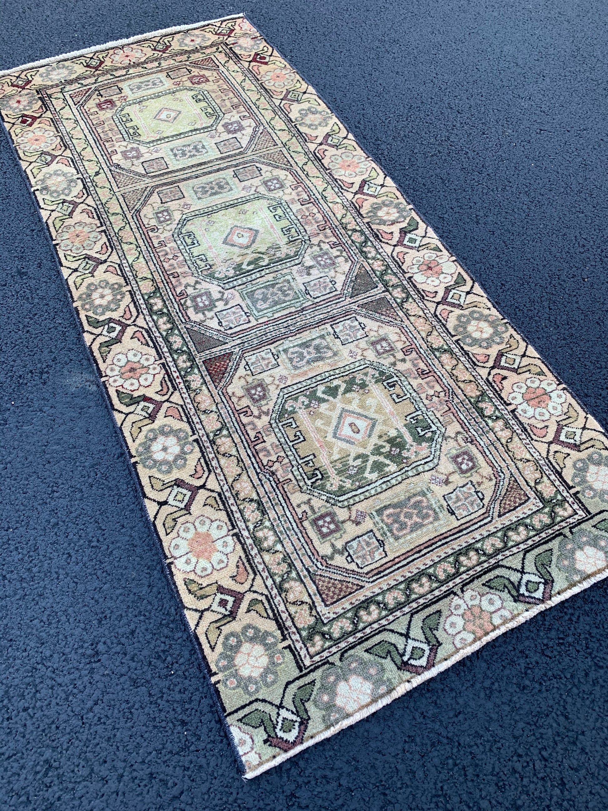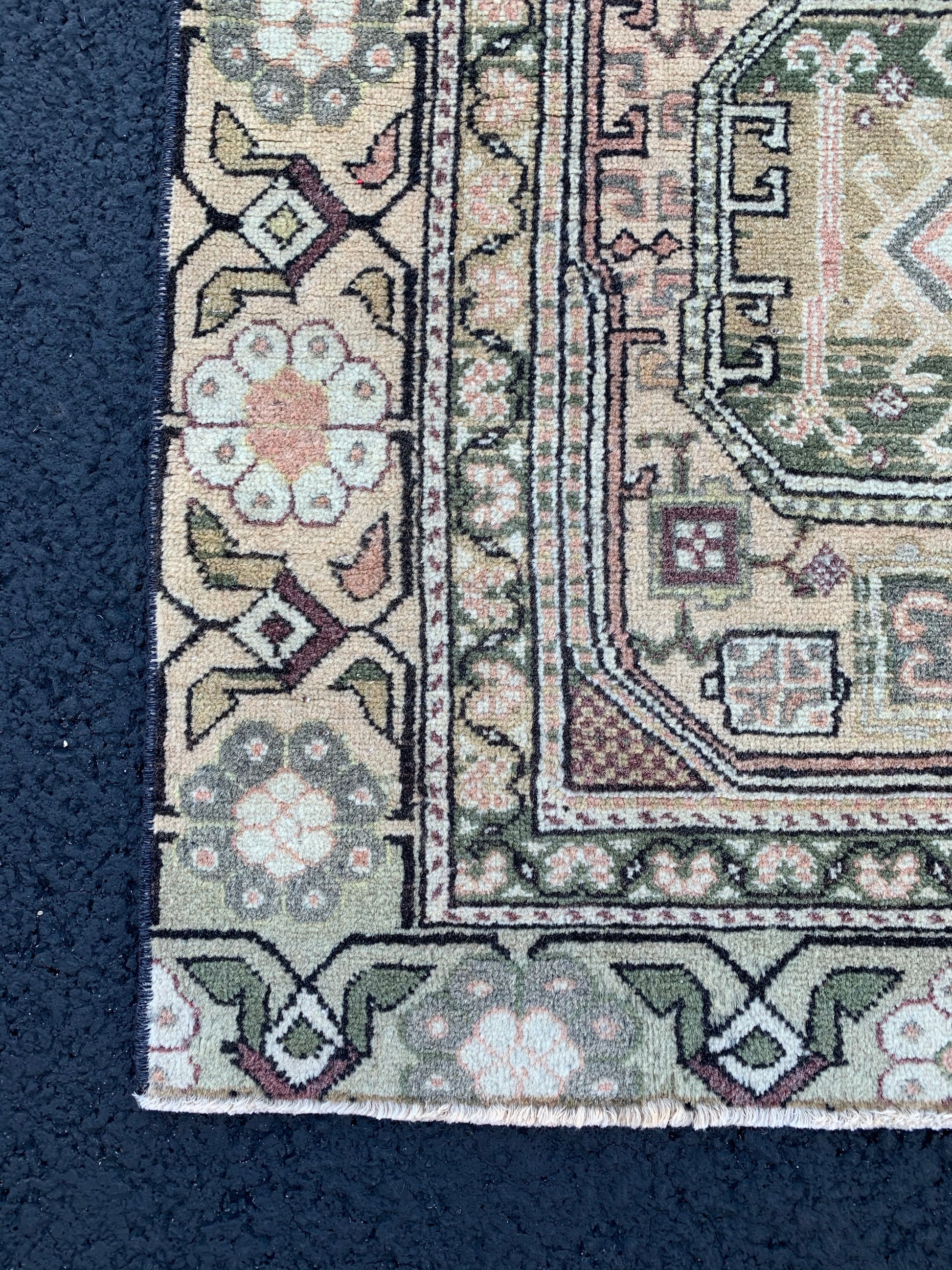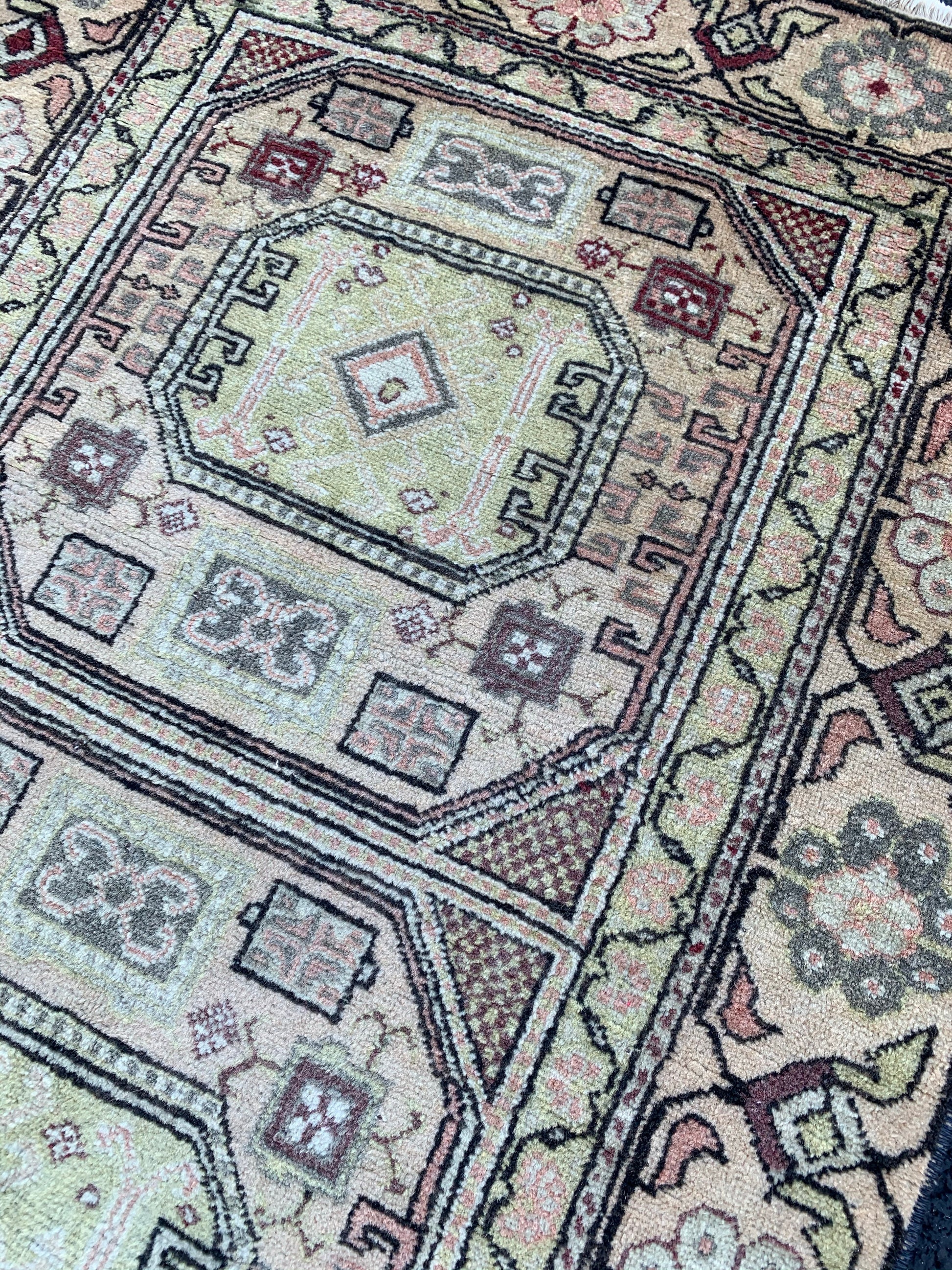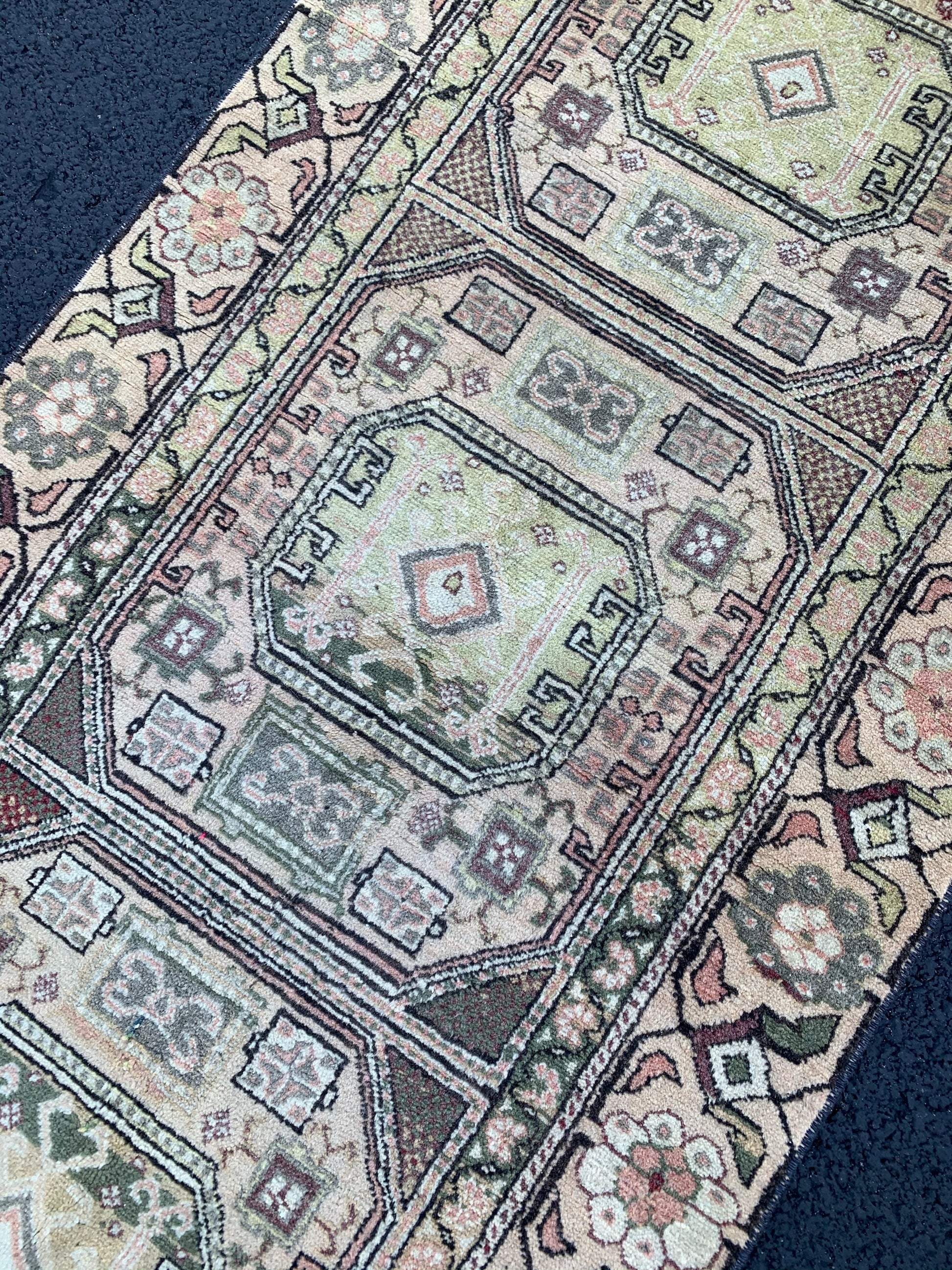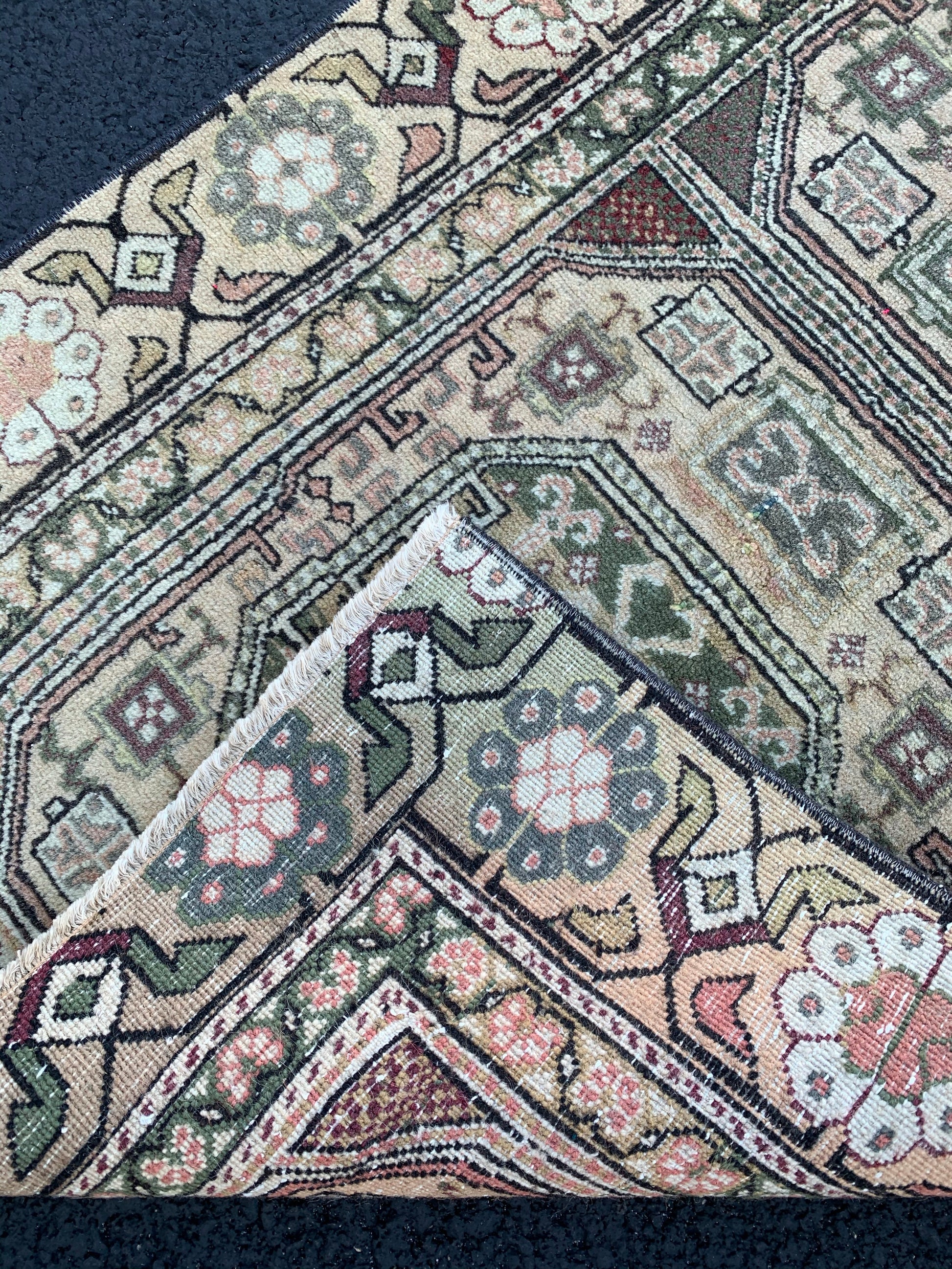 All rugs have been thoroughly cleaned; age-related wear and patina are considered normal in these unique, hand woven vintage rugs. All pieces have been photographed with moderate natural light. Colors may vary depending on your phone or screen settings. Some items may not be perfectly straight or rectangle. We consider these characteristics part of what makes them truly one-of-a-kind.
