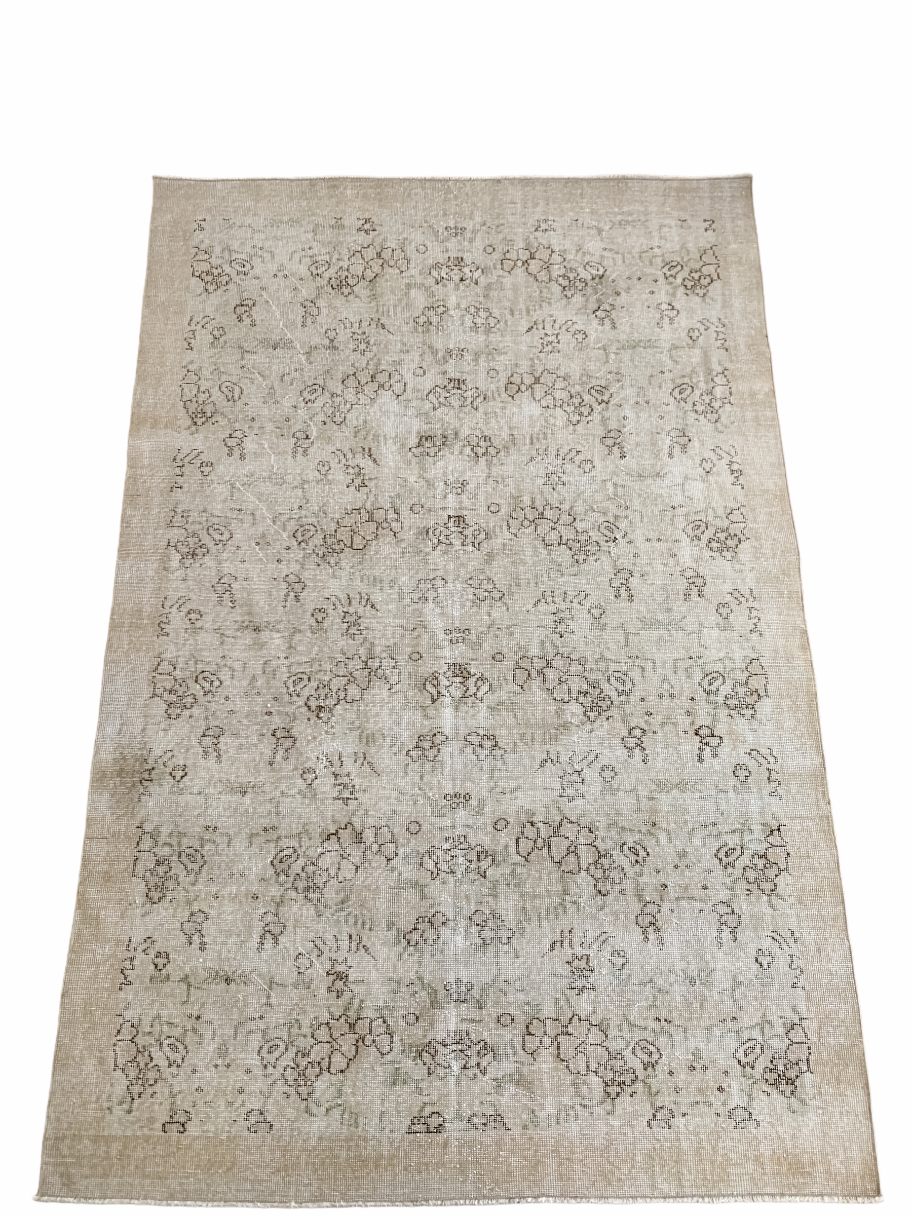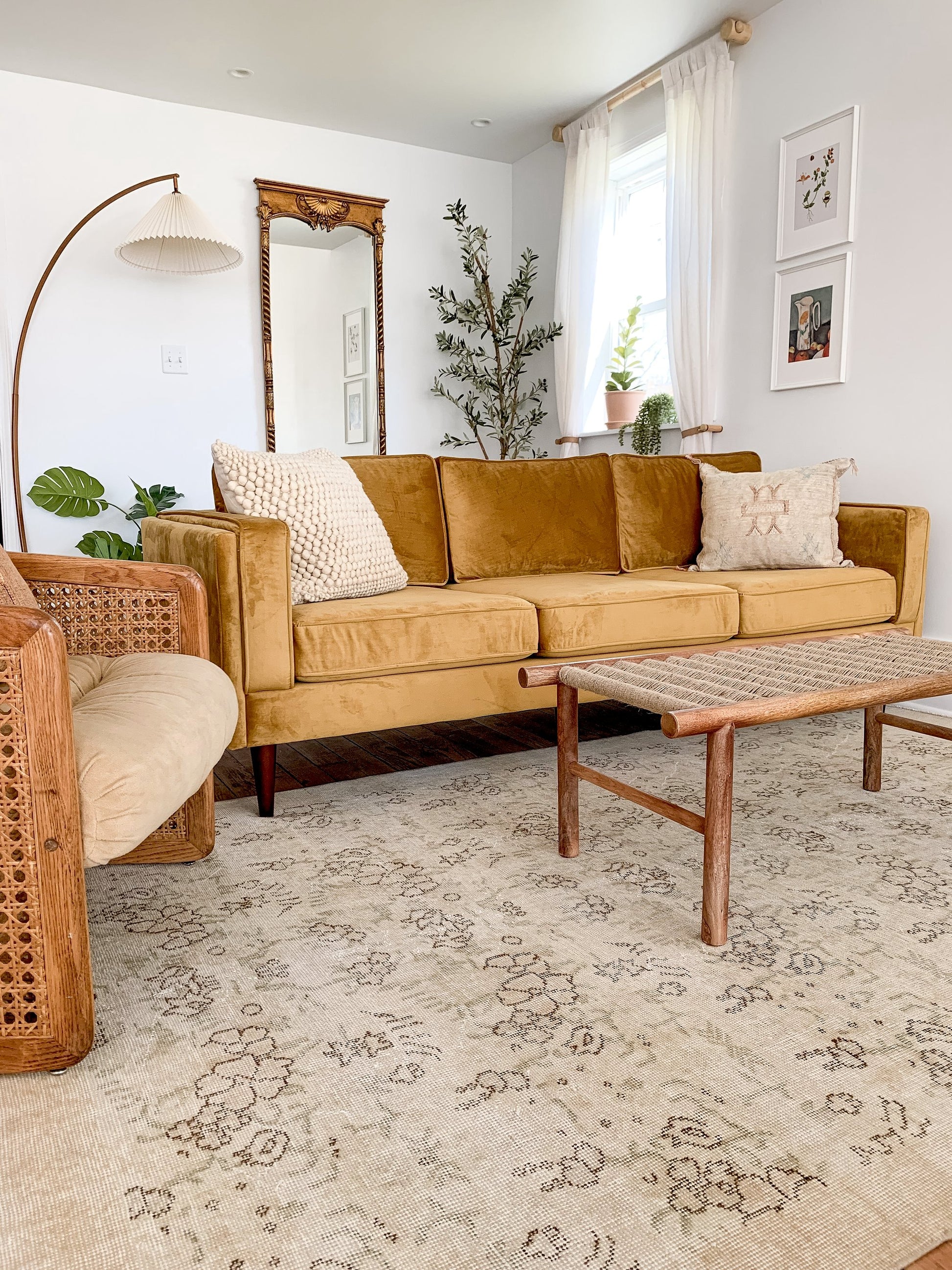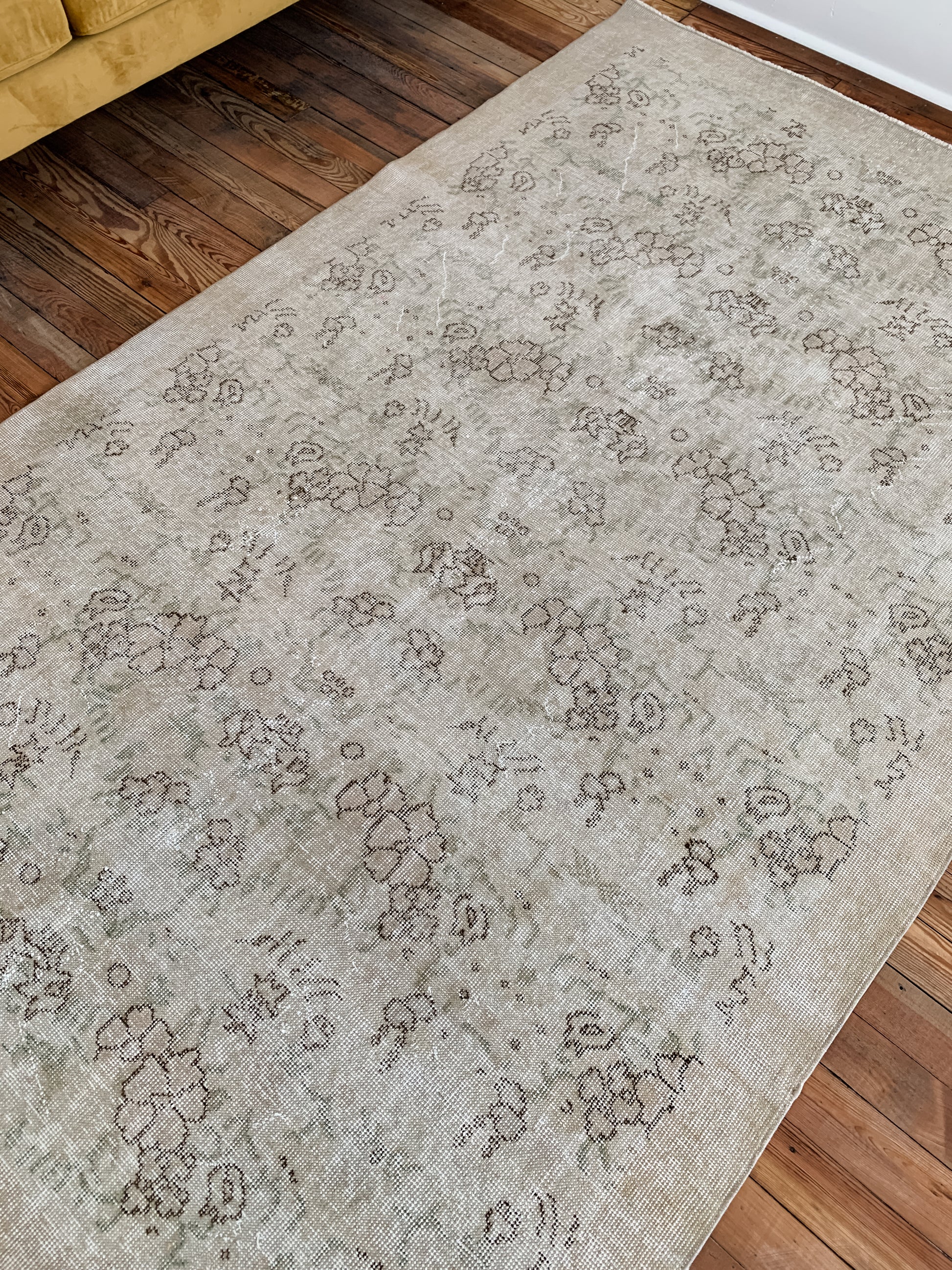 Cleaning: Vacuum on occasion, with suction only. Spot clean with clear soap, a little bit of white vinegar, and water. Never use a carpet cleaner machine to clean a vintage rug. If your piece is fragile or antique, or needs a deep clean, take it to a professional.