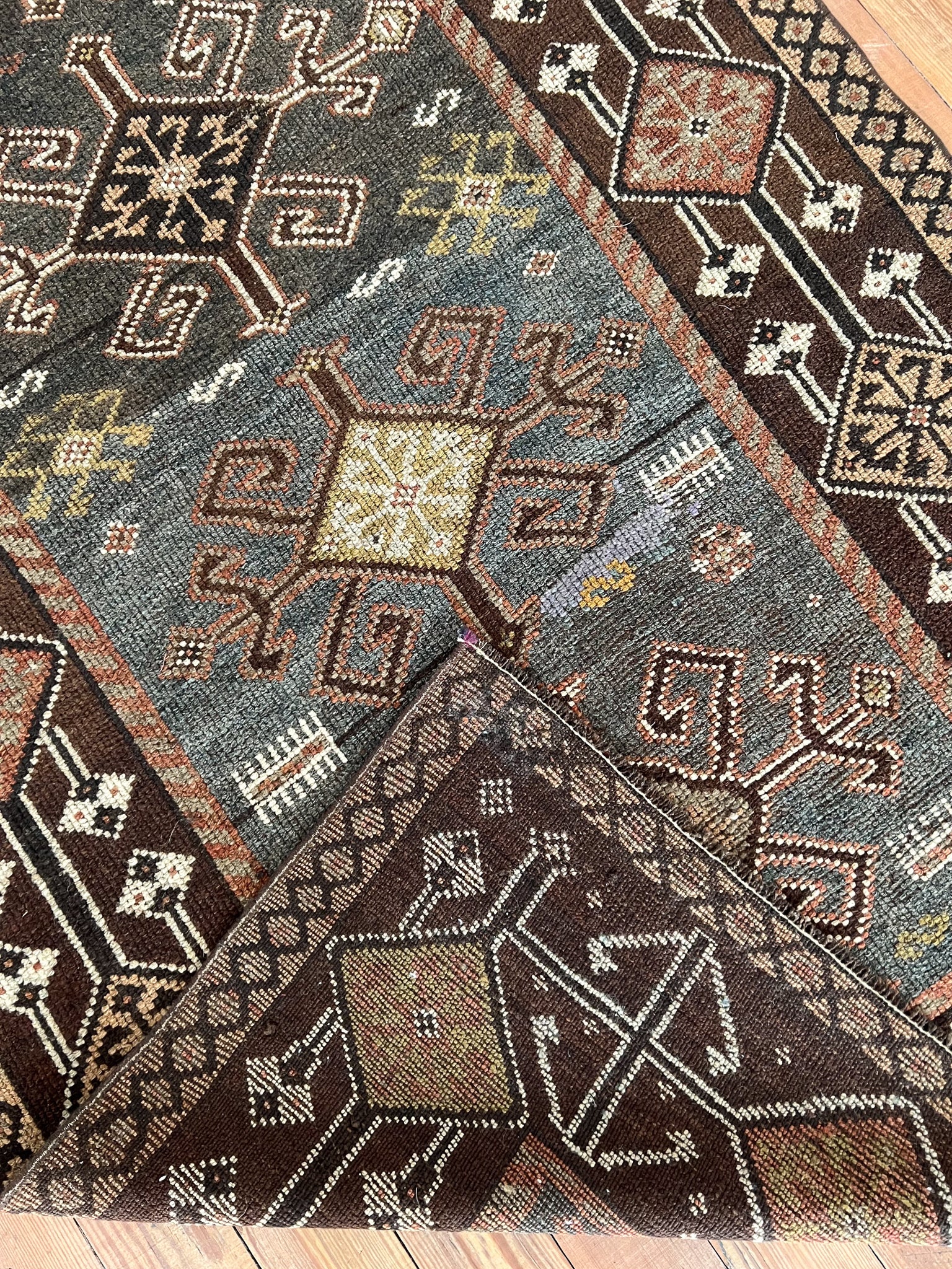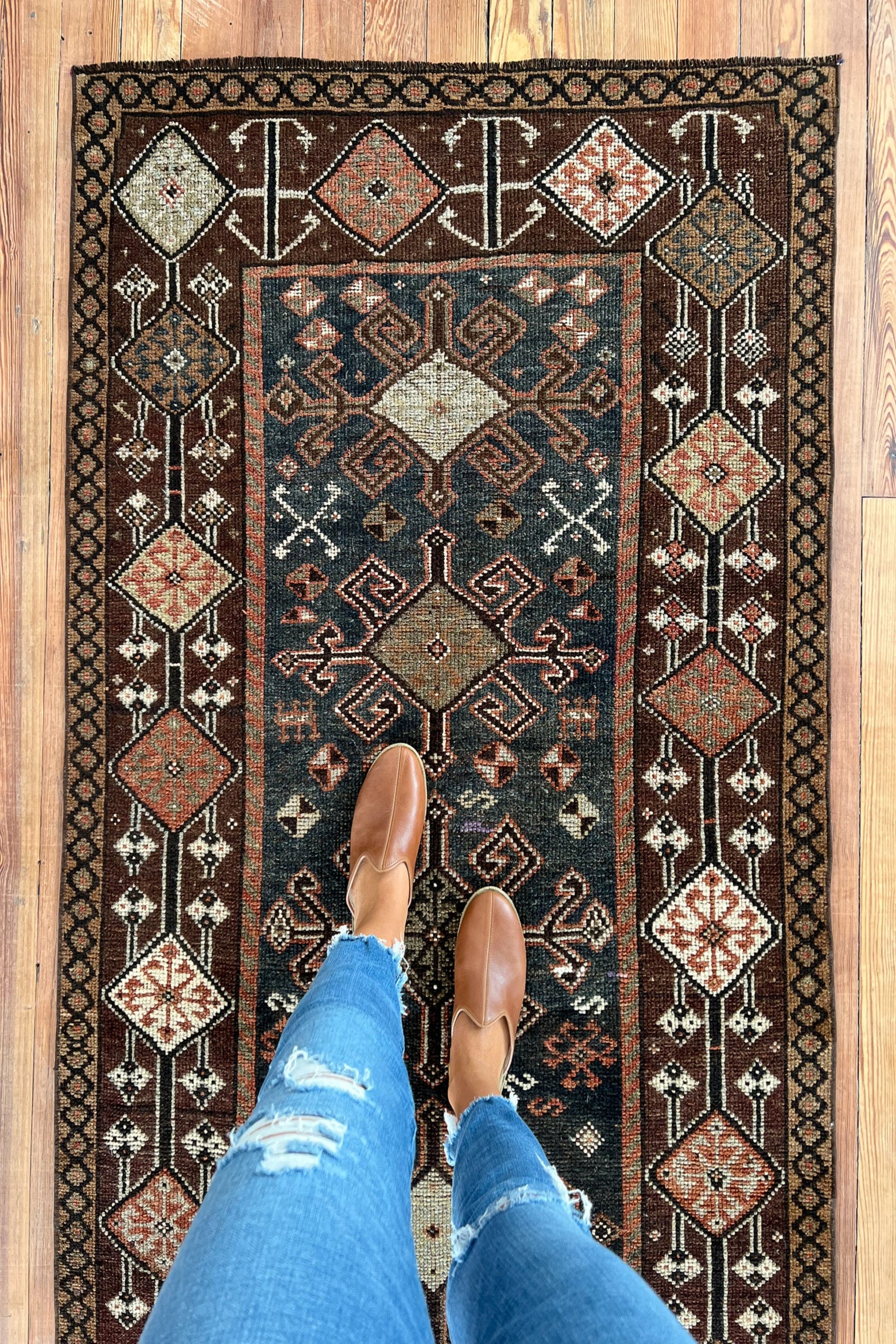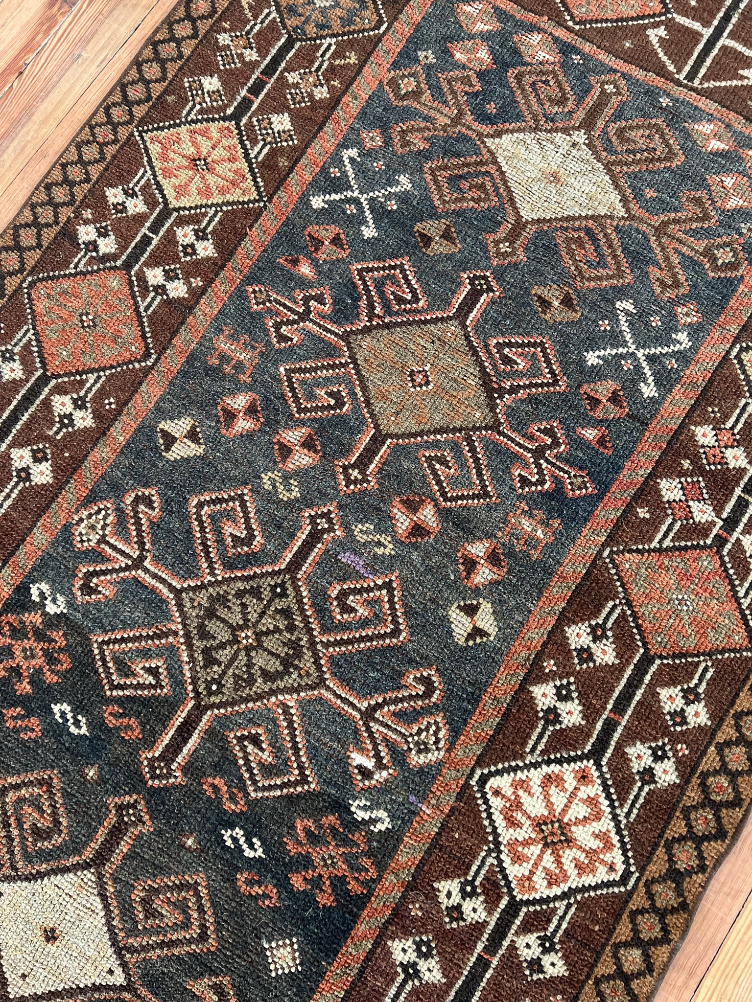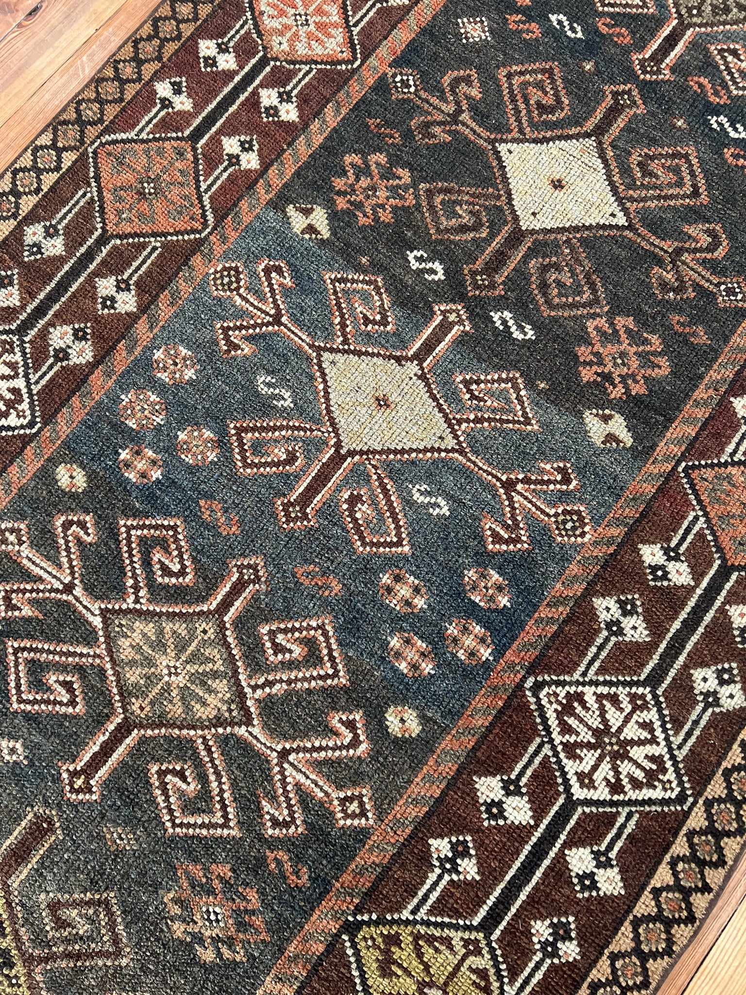 All rugs have been thoroughly cleaned; age-related wear and patina are considered normal in these unique, hand-woven vintage rugs. All pieces have been photographed with moderate natural light. In some cases, photos are edited to depict the most true-to-life colors. Colors may vary depending on your phone or screen settings. Some items may not be perfectly straight or rectangle. We consider these characteristics part of what makes them truly one-of-a-kind.