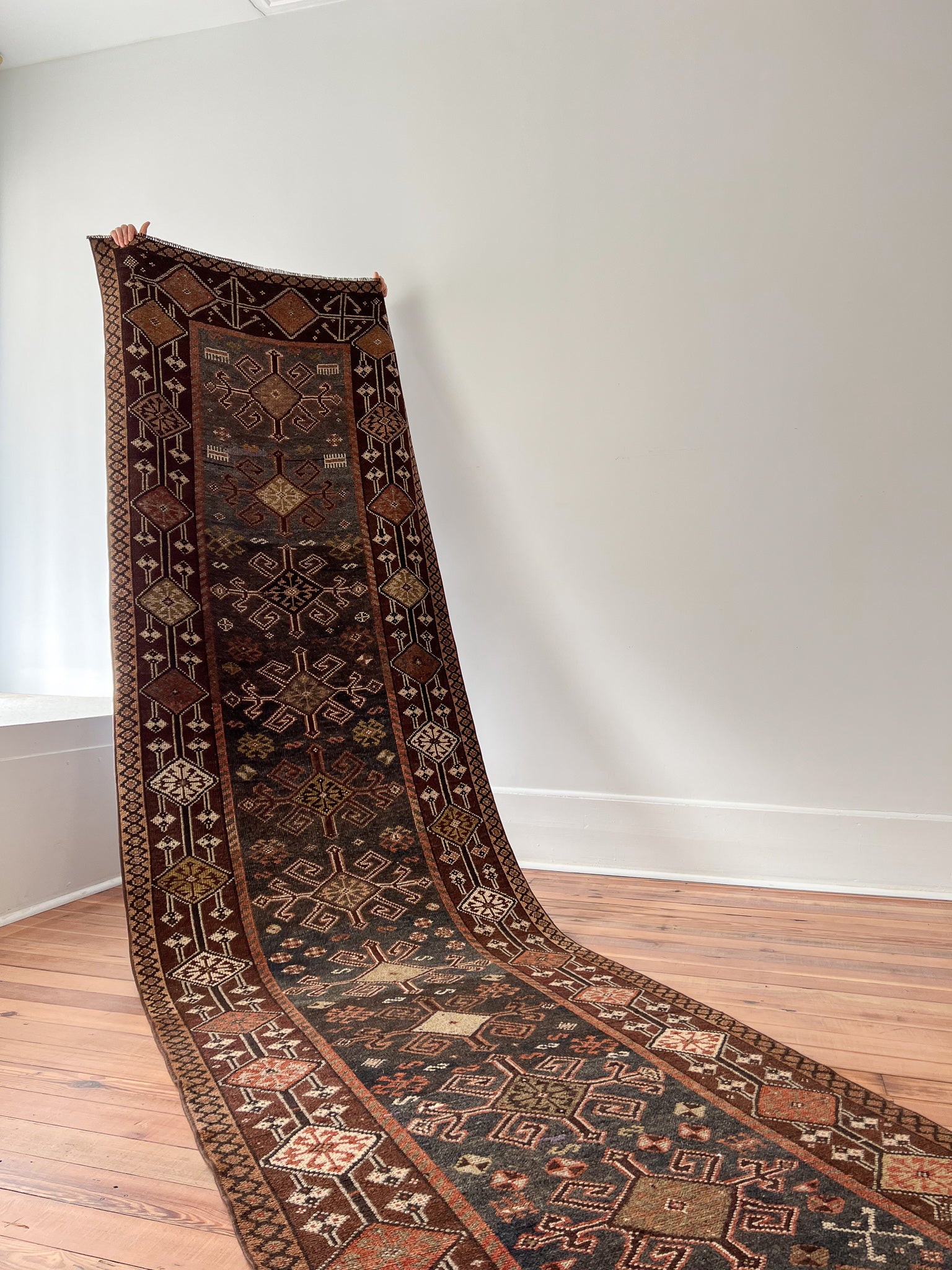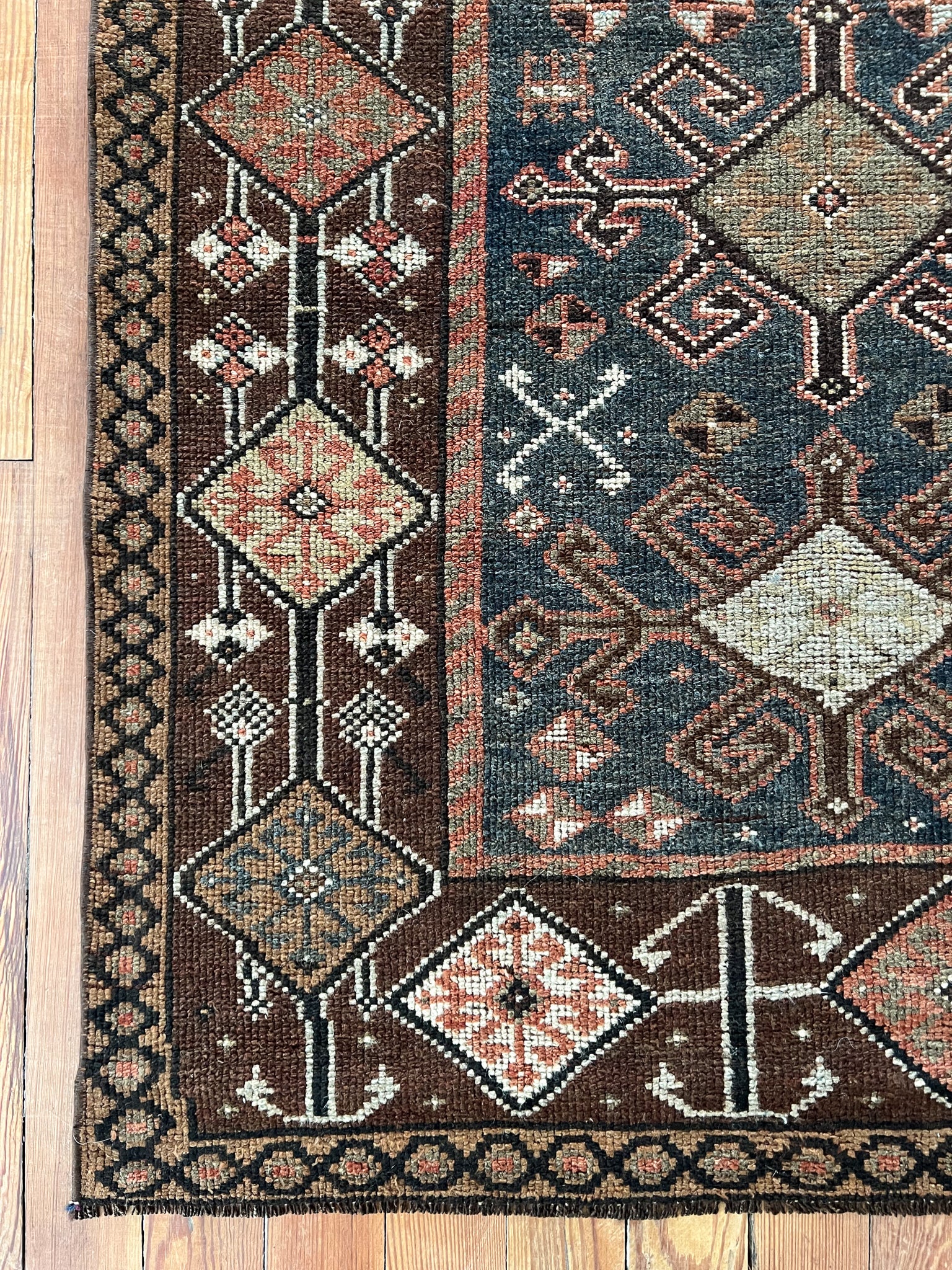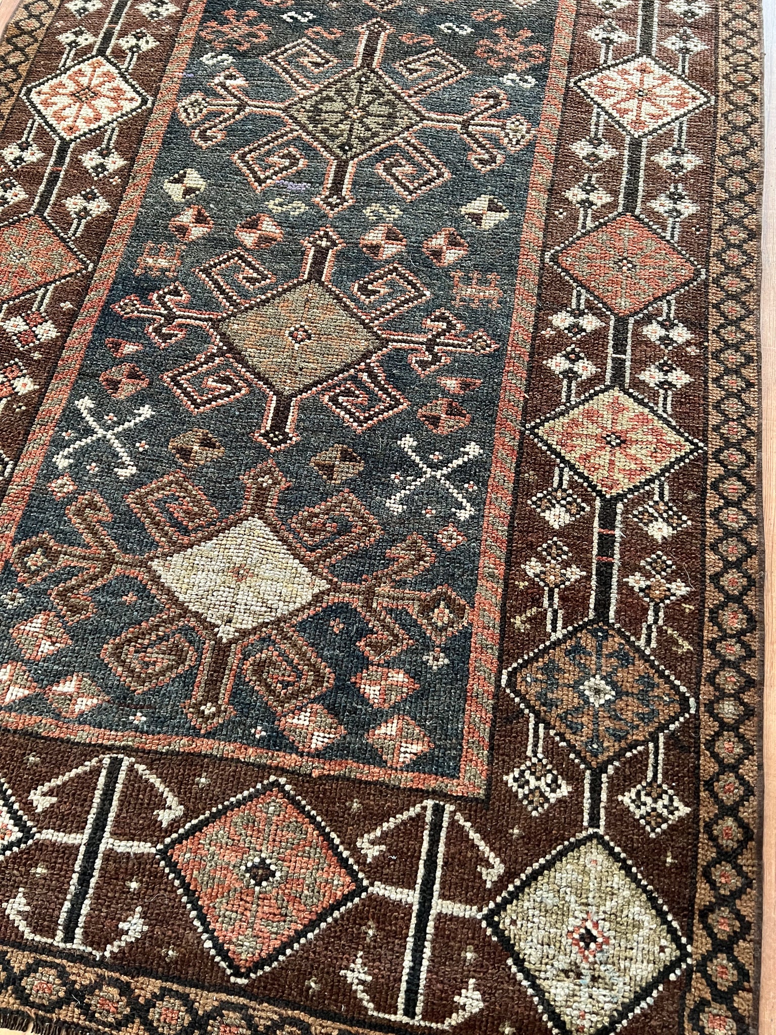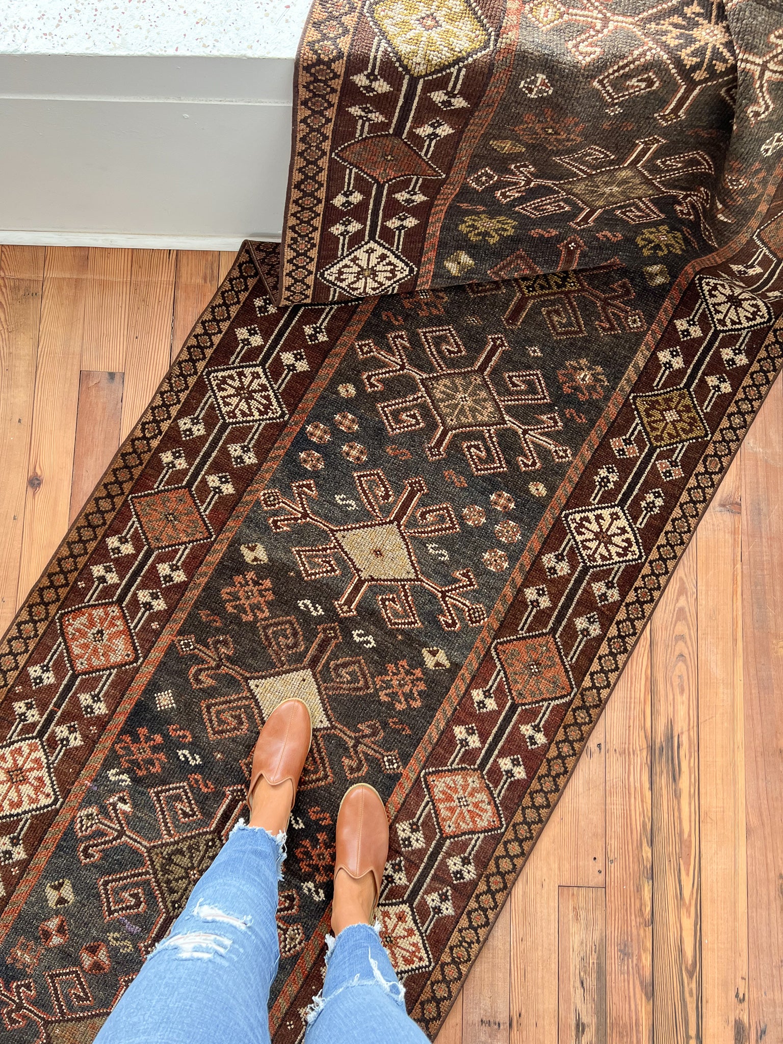 All rugs have been thoroughly cleaned; age-related wear and patina are considered normal in these unique, hand-woven vintage rugs. All pieces have been photographed with moderate natural light. In some cases, photos are edited to depict the most true-to-life colors. Colors may vary depending on your phone or screen settings. Some items may not be perfectly straight or rectangle. We consider these characteristics part of what makes them truly one-of-a-kind.