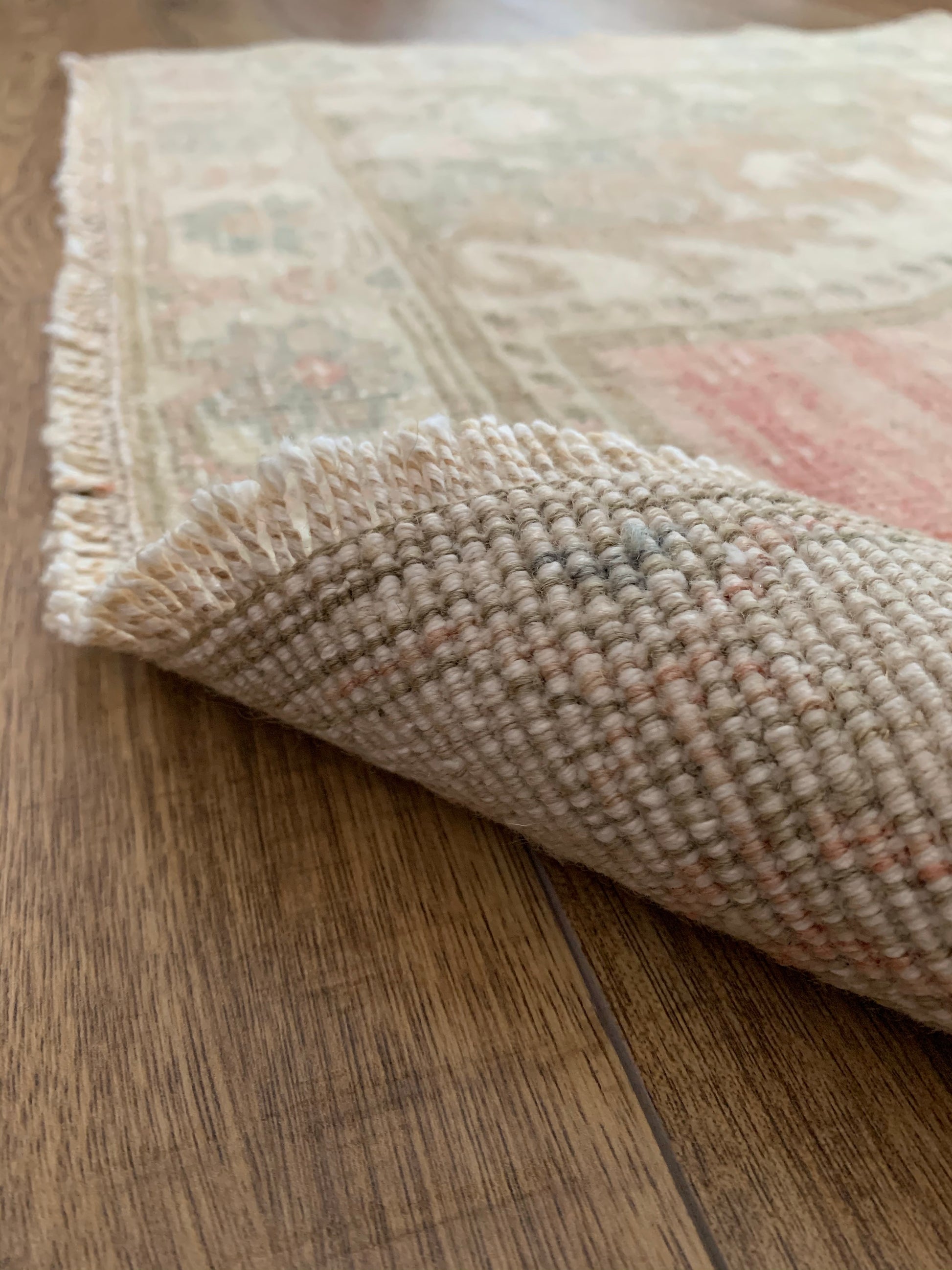All rugs have been thoroughly cleaned; age-related wear and patina are considered normal in these unique, hand woven vintage rugs. All pieces have been photographed with moderate natural light. Colors may vary depending on your phone or screen settings. Some items may not be perfectly straight or rectangle. We consider these characteristics part of what makes them truly one-of-a-kind.