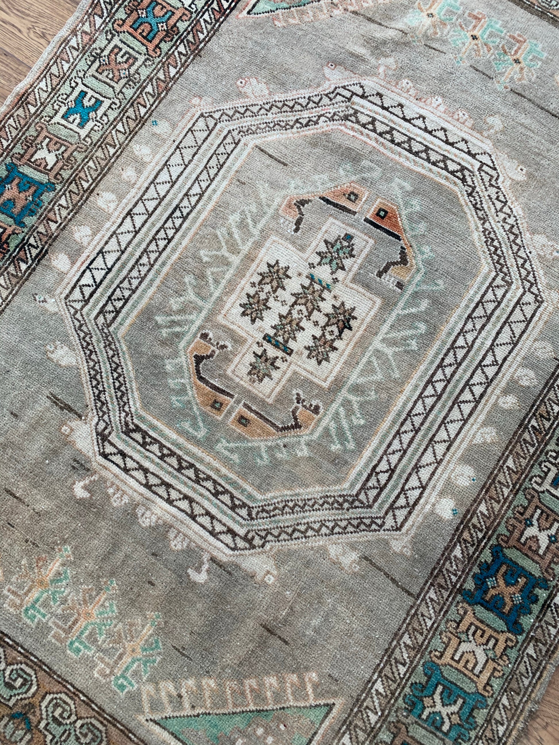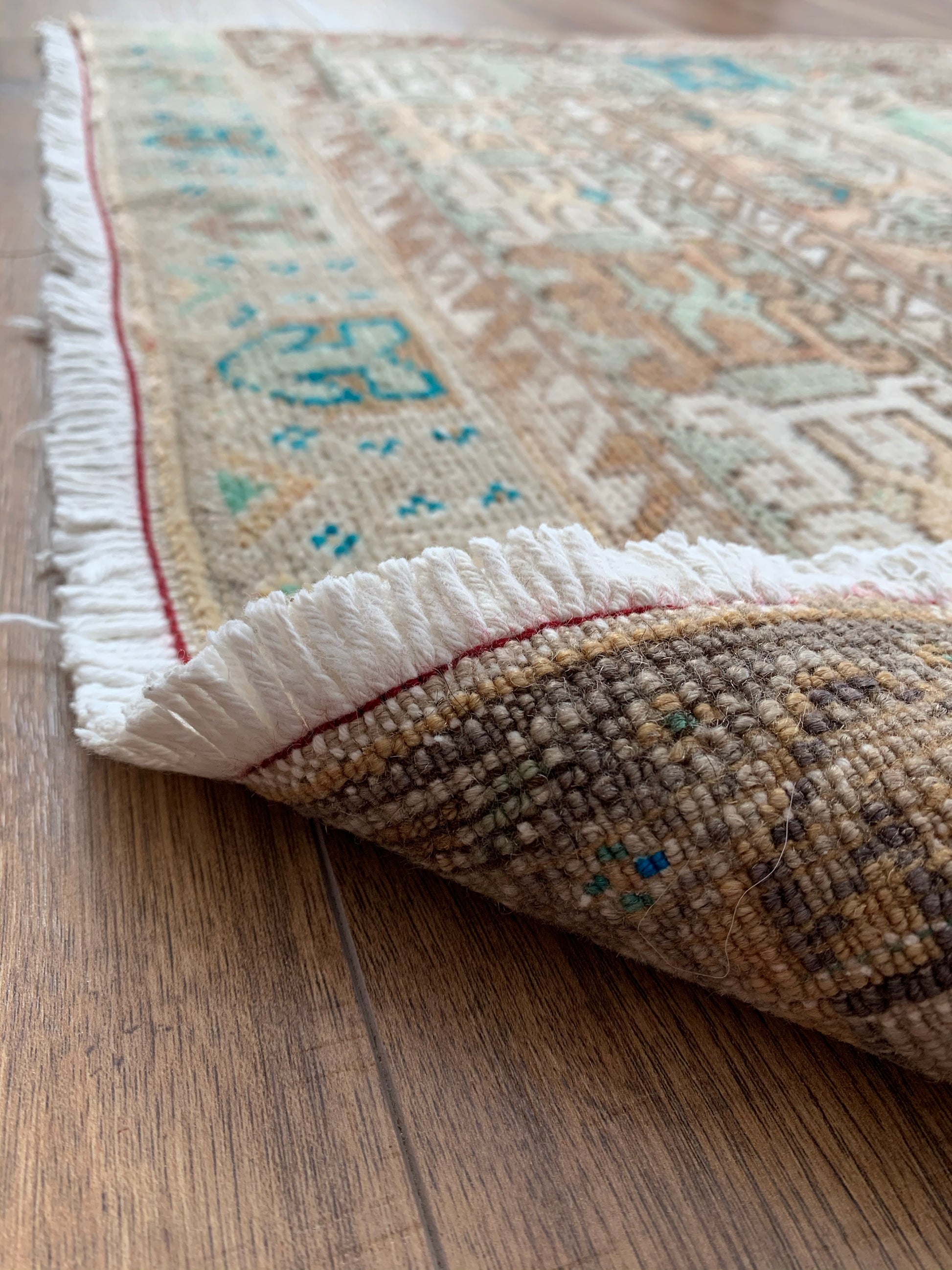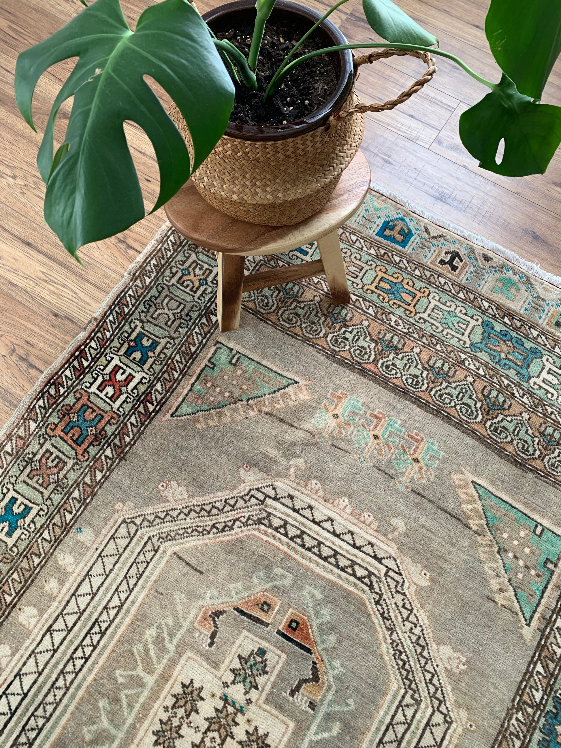 All rugs have been thoroughly cleaned; age-related wear and patina are considered normal in these unique, hand woven vintage rugs. All pieces have been photographed with moderate natural light. Colors may vary depending on your phone or screen settings. Some items may not be perfectly straight or rectangle. We consider these characteristics part of what makes them truly one-of-a-kind.