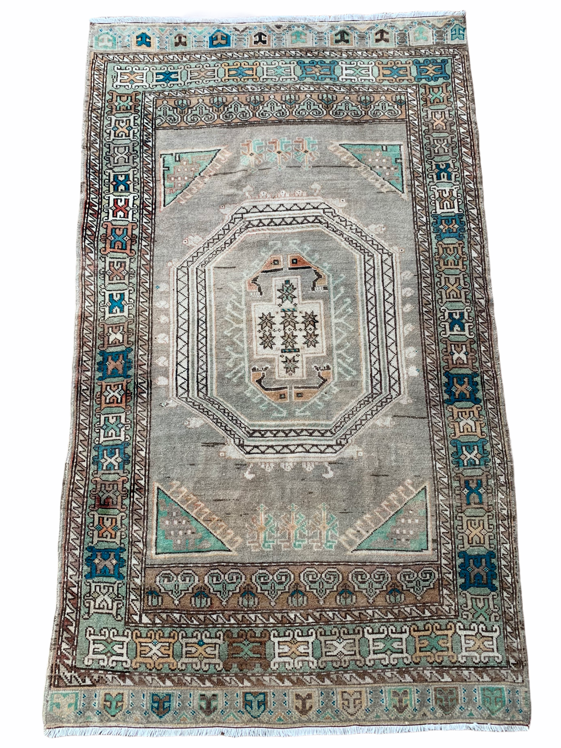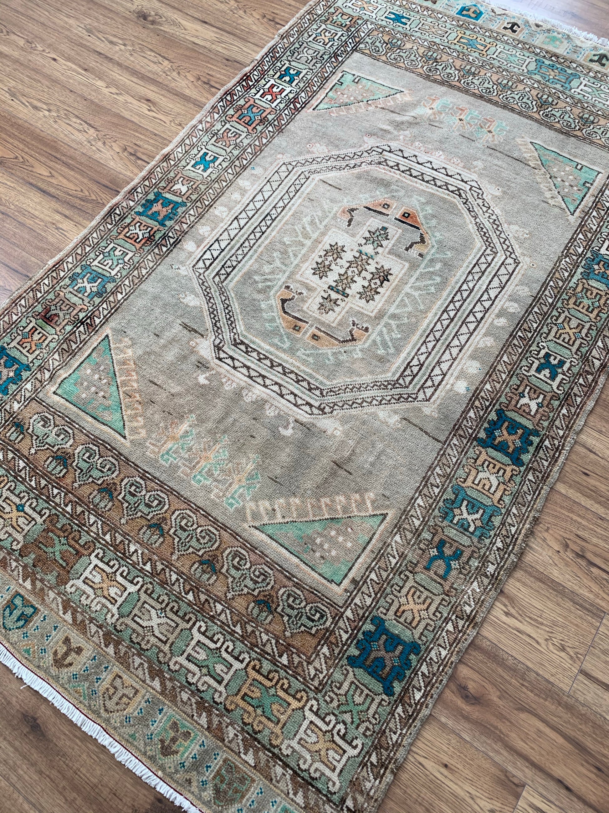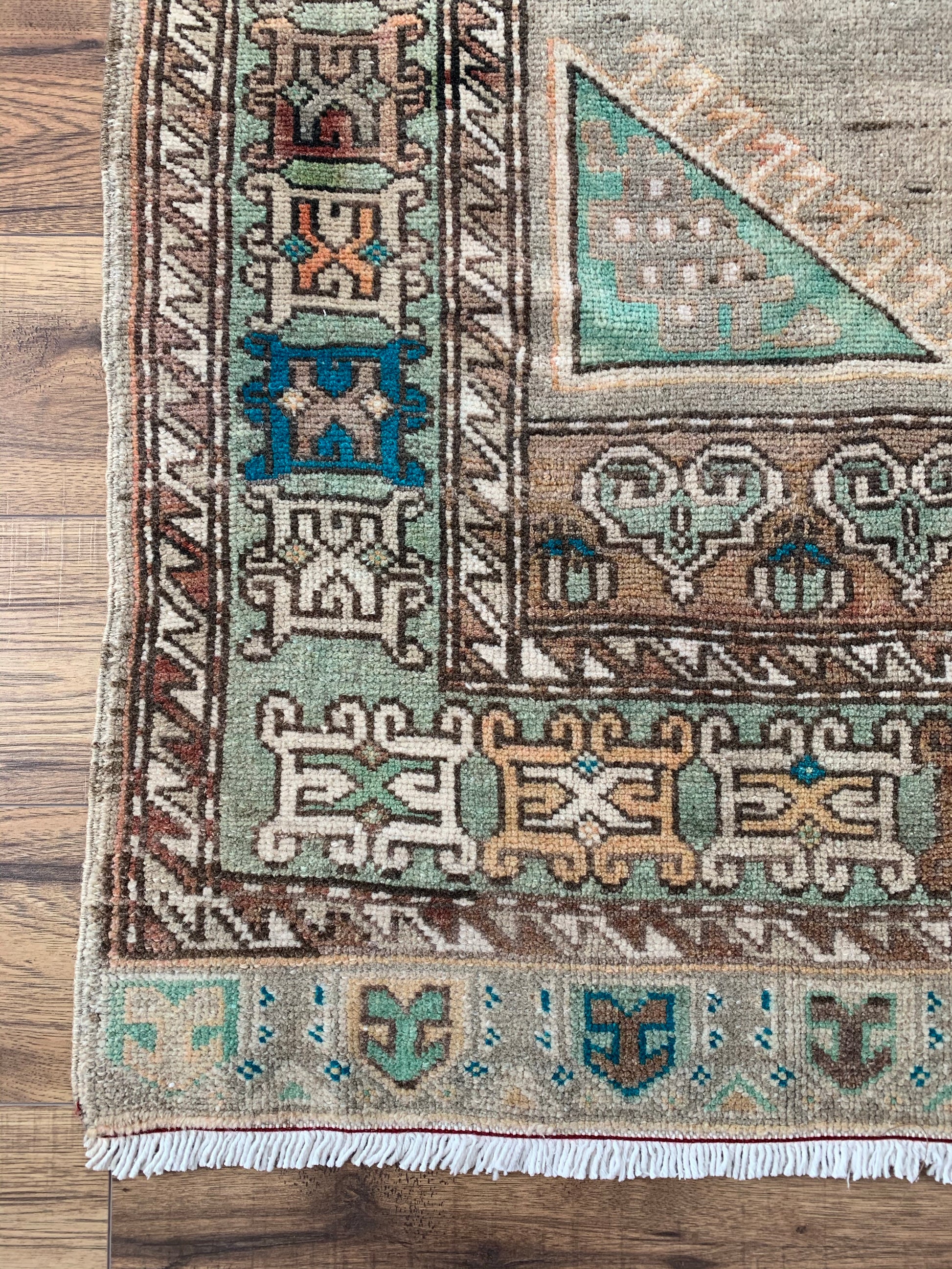 All rugs have been thoroughly cleaned; age-related wear and patina are considered normal in these unique, hand woven vintage rugs. All pieces have been photographed with moderate natural light. Colors may vary depending on your phone or screen settings. Some items may not be perfectly straight or rectangle. We consider these characteristics part of what makes them truly one-of-a-kind.