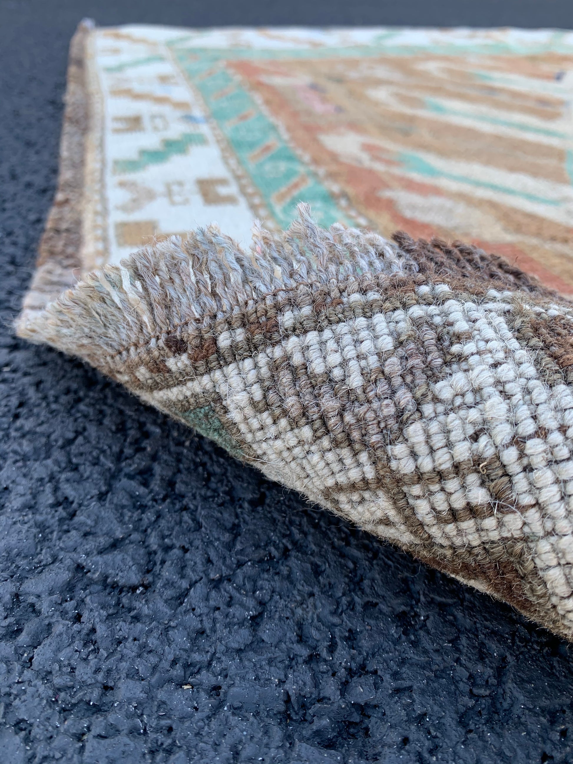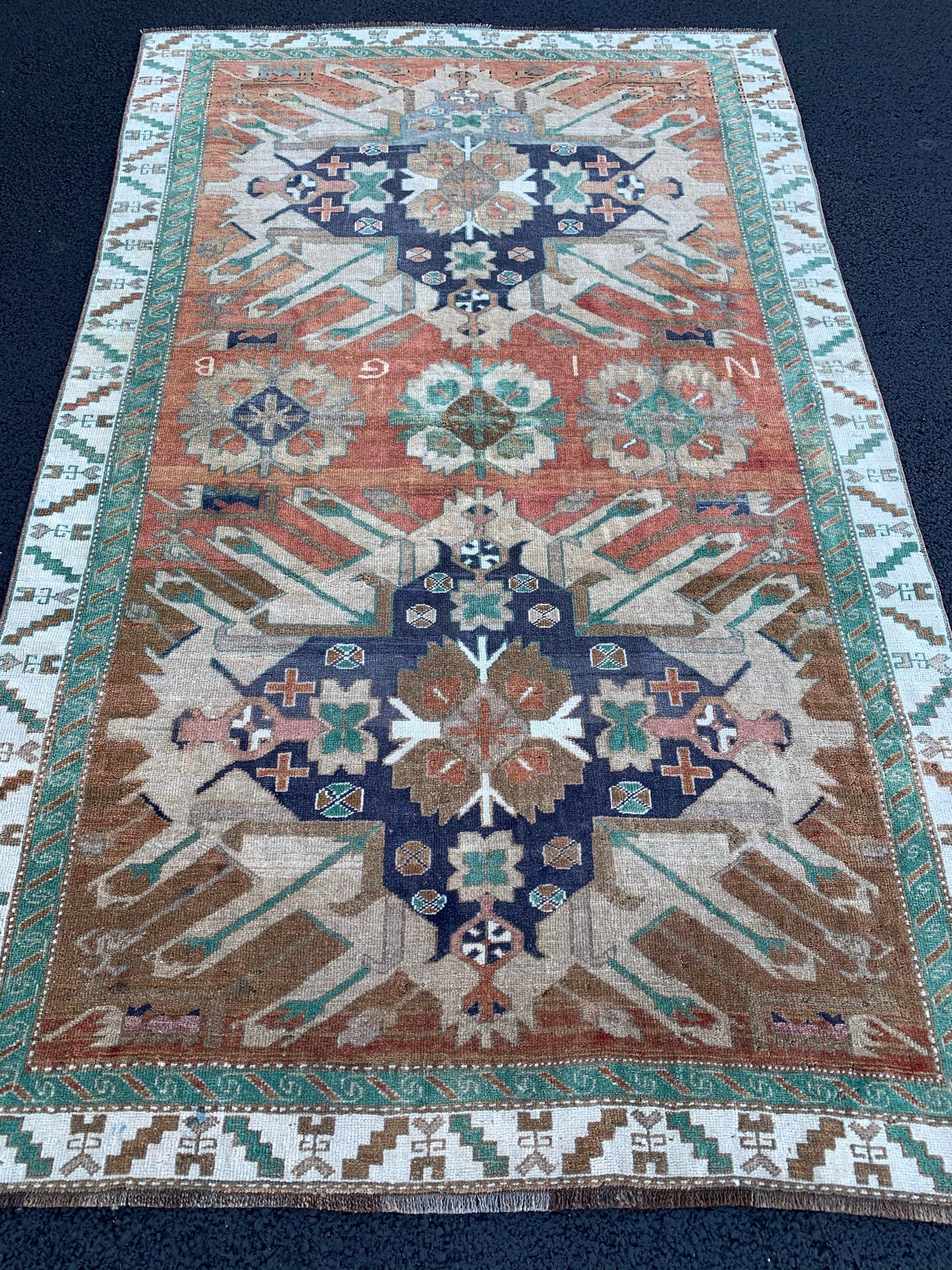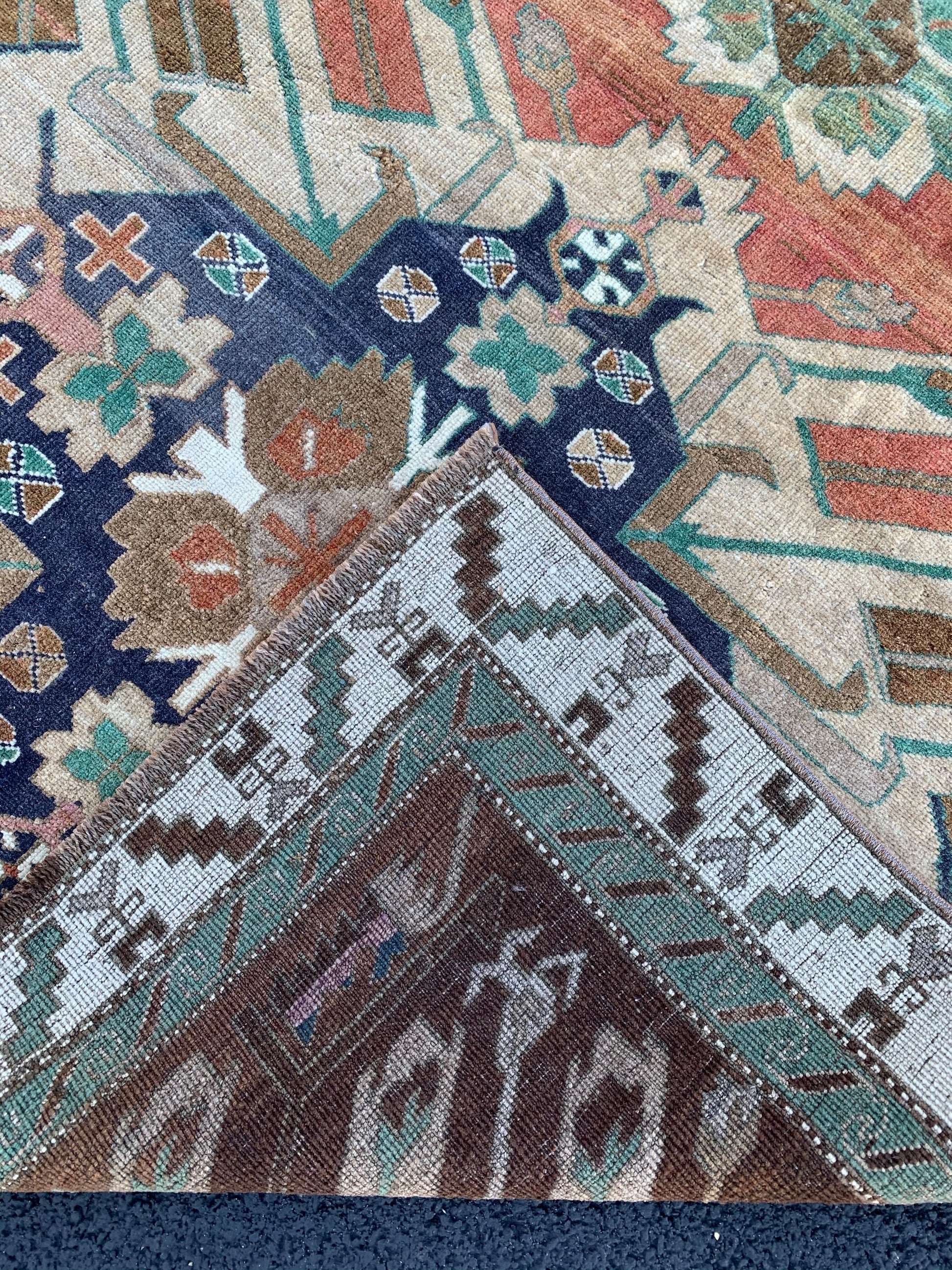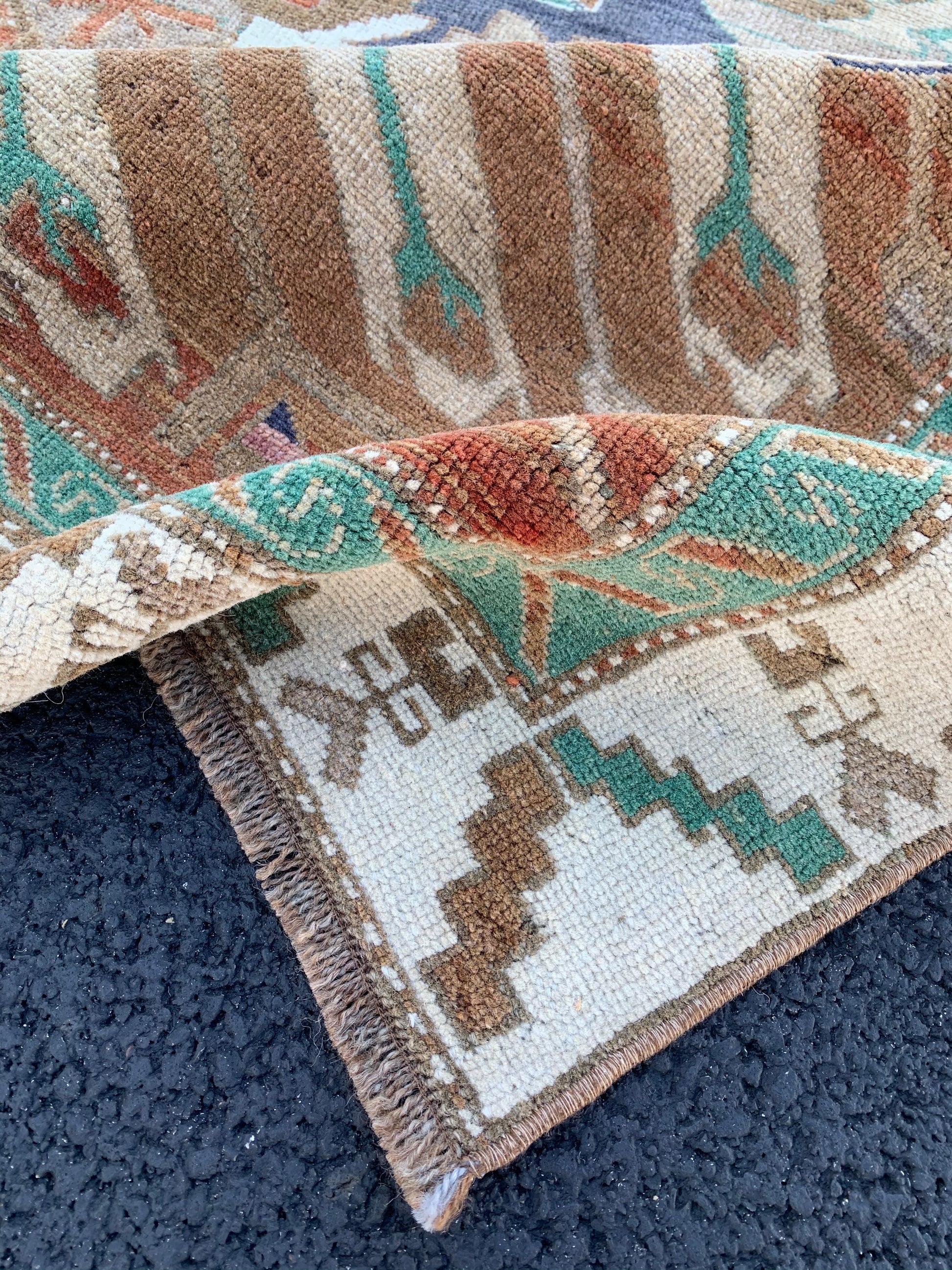 All rugs have been thoroughly cleaned; age-related wear and patina are considered normal in these unique, hand woven vintage rugs. All pieces have been photographed with moderate natural light. Colors may vary depending on your phone or screen settings. Some items may not be perfectly straight or rectangle. We consider these characteristics part of what makes them truly one-of-a-kind.