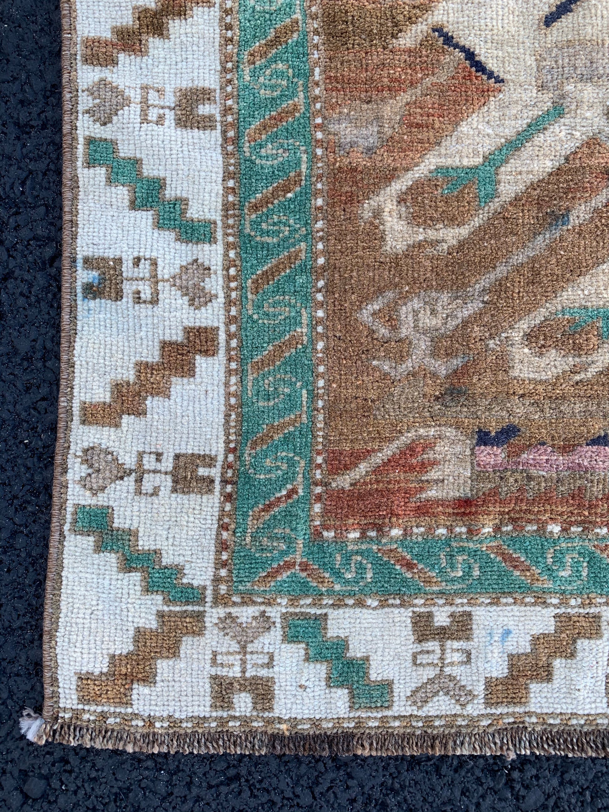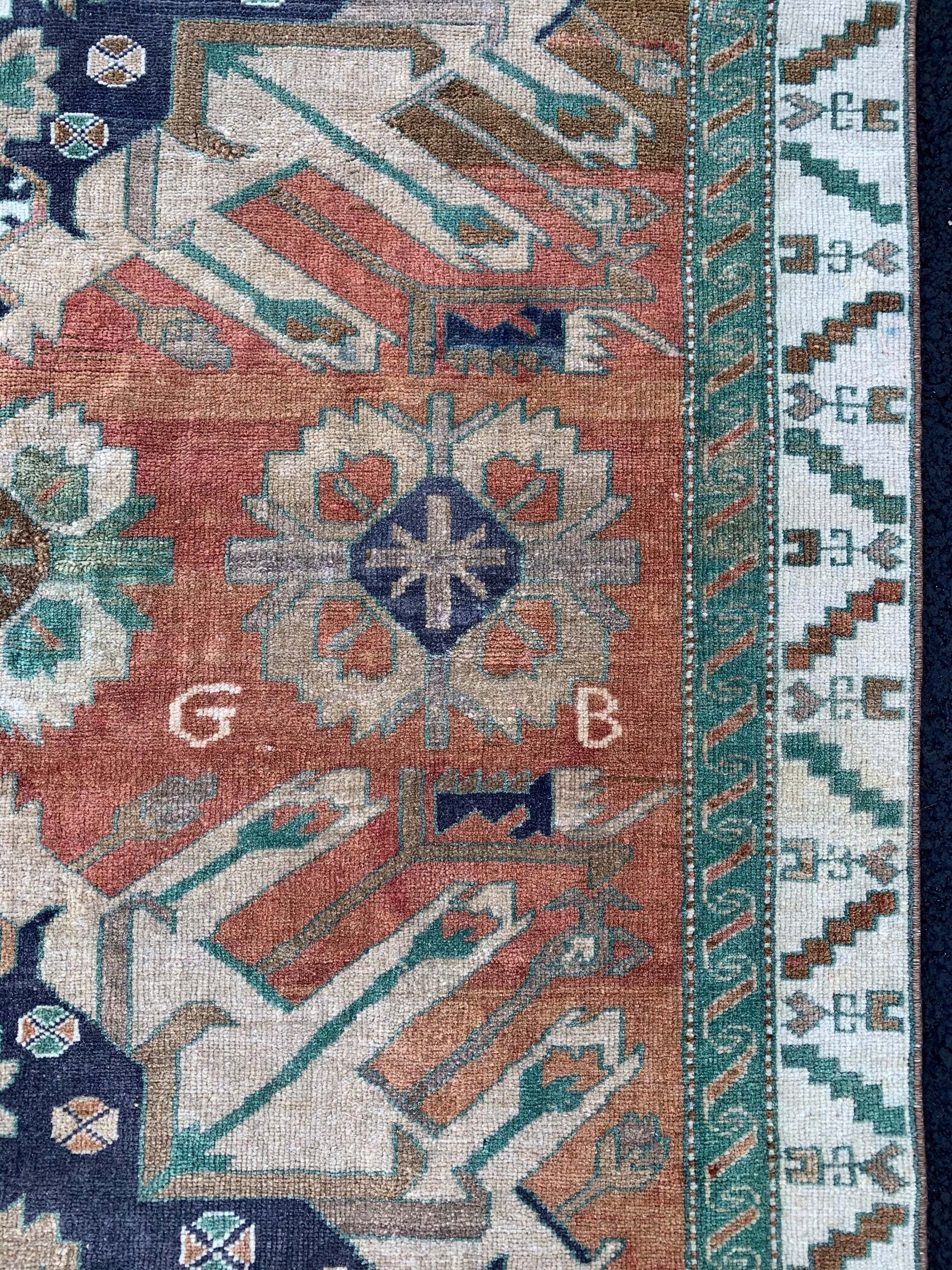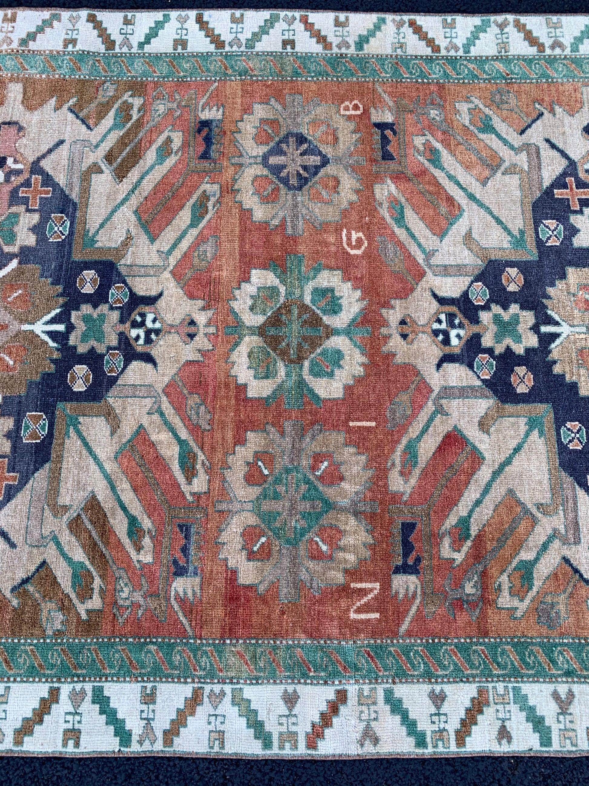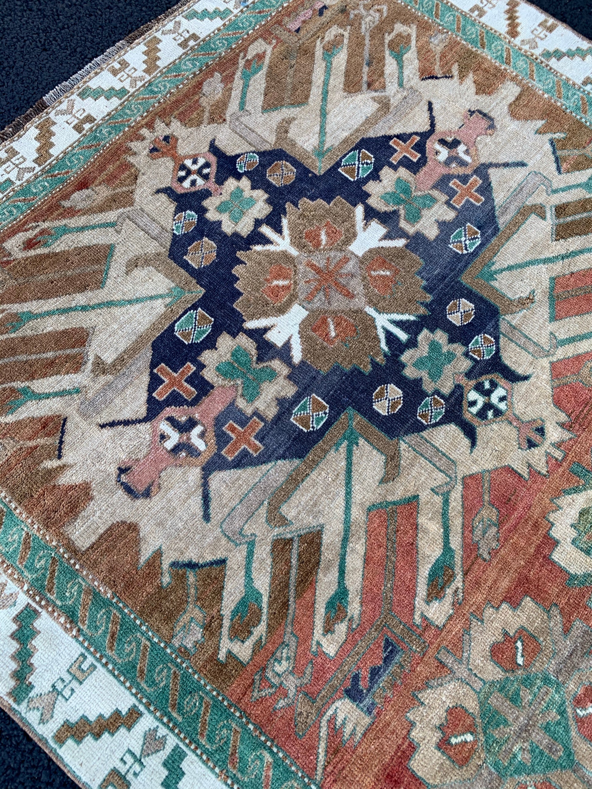 All rugs have been thoroughly cleaned; age-related wear and patina are considered normal in these unique, hand woven vintage rugs. All pieces have been photographed with moderate natural light. Colors may vary depending on your phone or screen settings. Some items may not be perfectly straight or rectangle. We consider these characteristics part of what makes them truly one-of-a-kind.