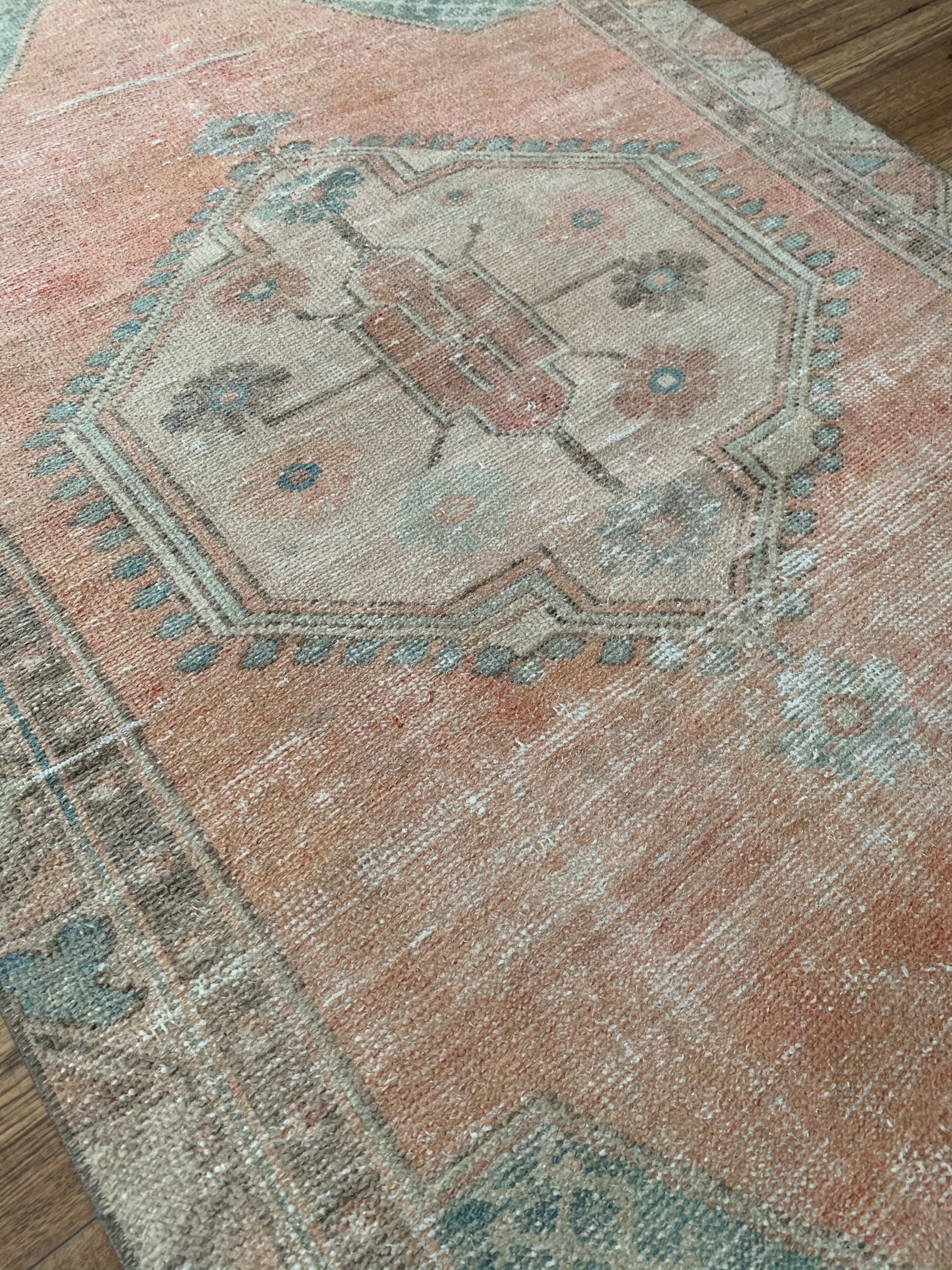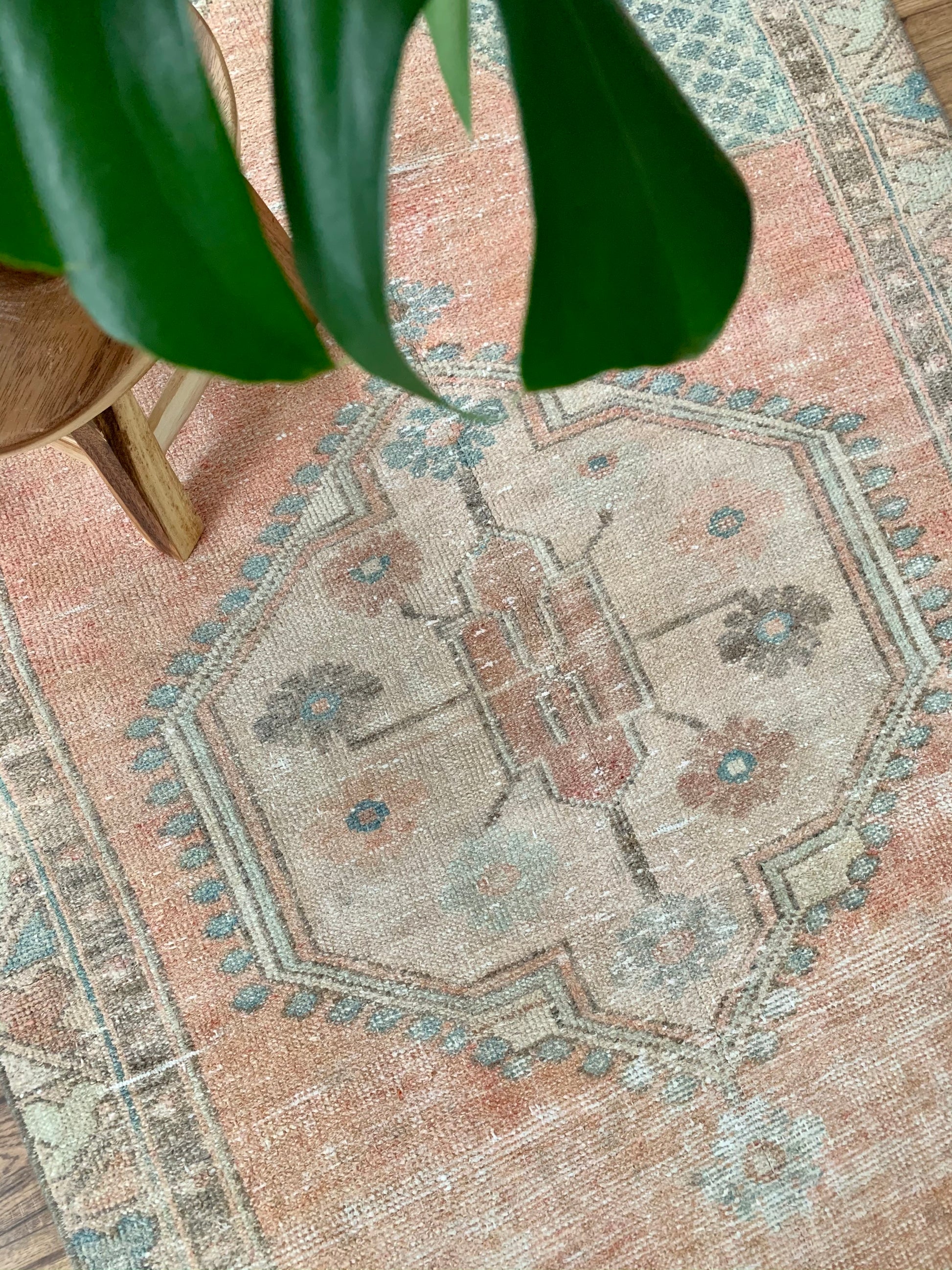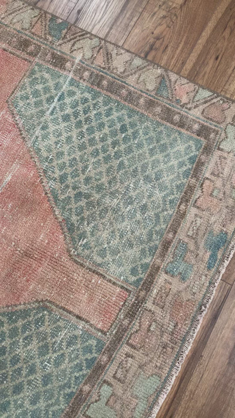 All rugs have been thoroughly cleaned; age-related wear and patina are considered normal in these unique, hand woven vintage rugs. All pieces have been photographed with moderate natural light. Colors may vary depending on your phone or screen settings. Some items may not be perfectly straight or rectangle. We consider these characteristics part of what makes them truly one-of-a-kind.