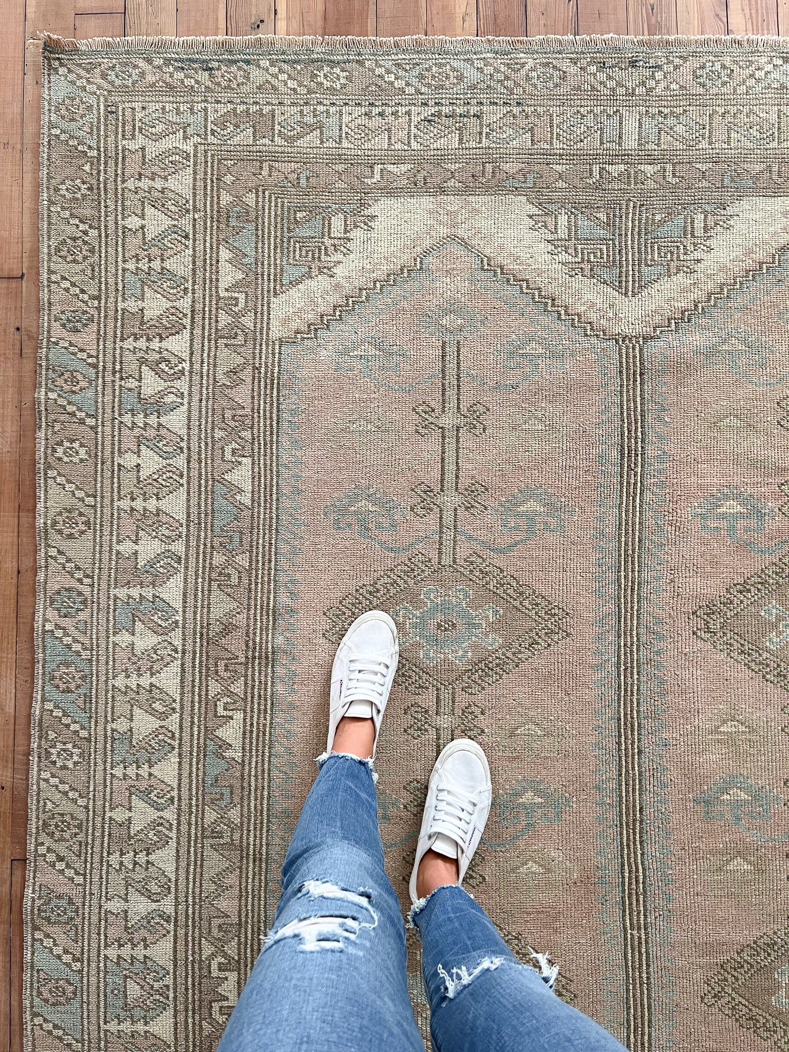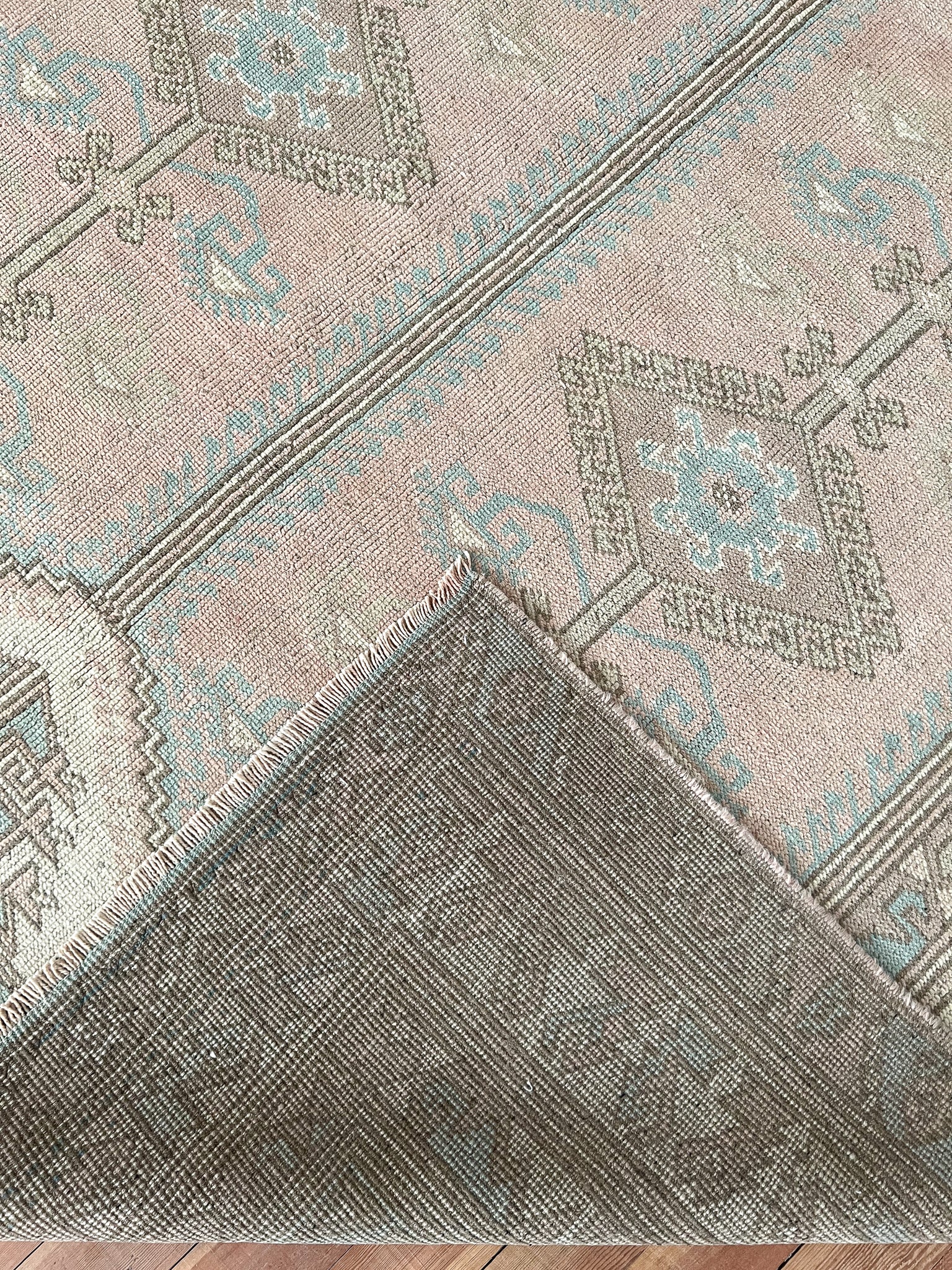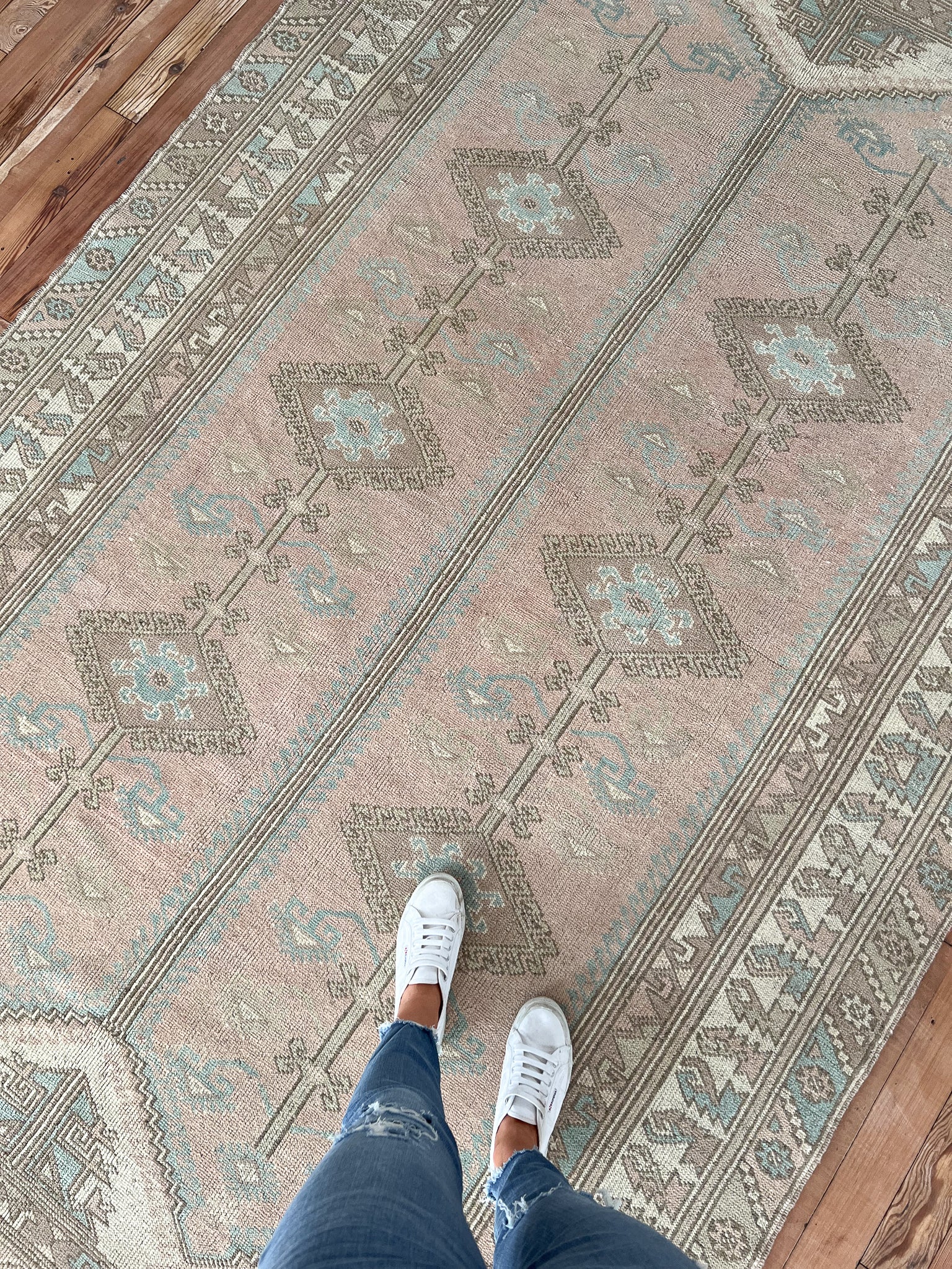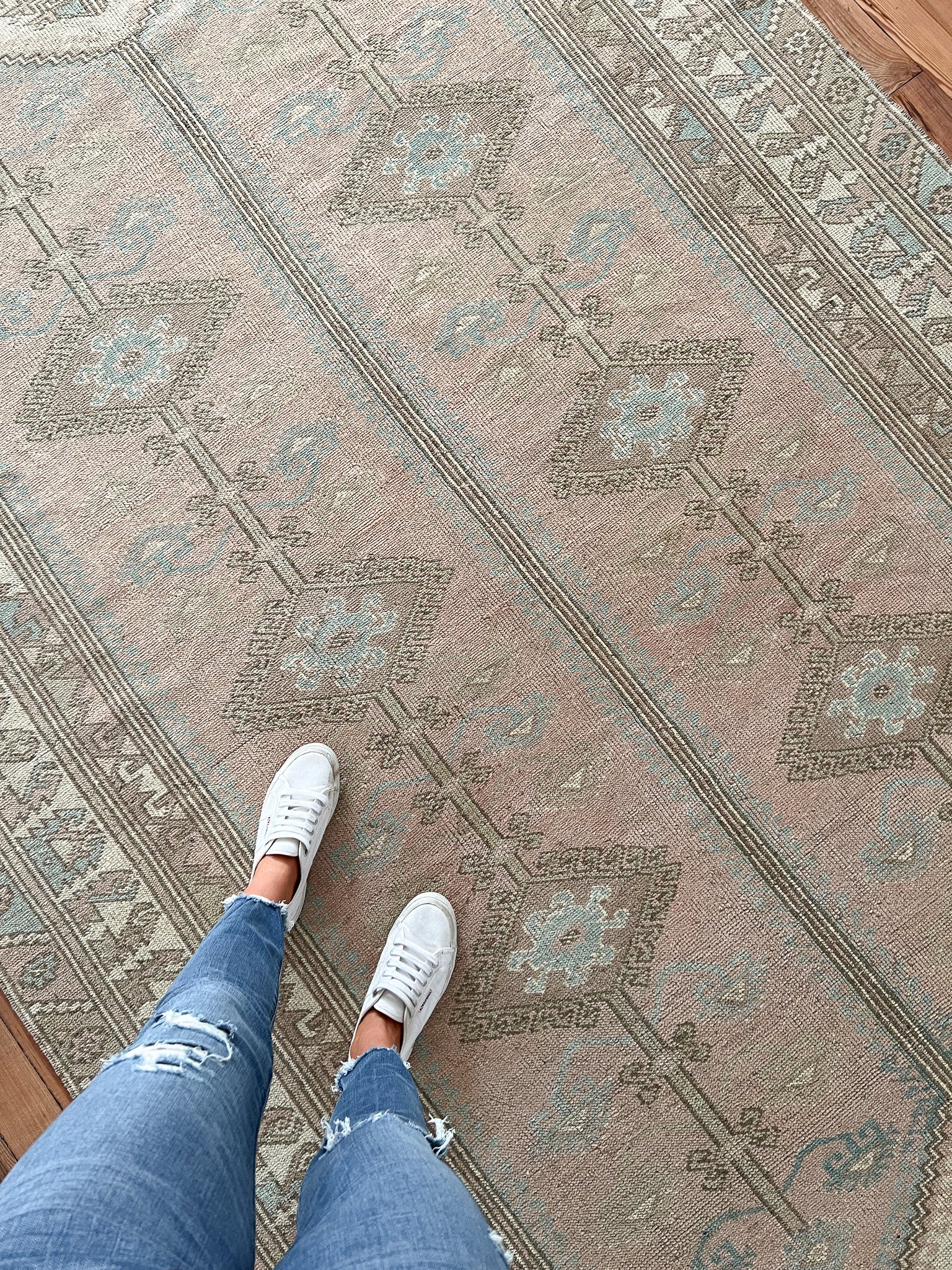 All rugs have been thoroughly cleaned; age-related wear and patina are considered normal in these unique, hand-woven vintage rugs. All pieces have been photographed with moderate natural light. In some cases, photos are edited to depict the most true-to-life colors. Colors may vary depending on your phone or screen settings. Some items may not be perfectly straight or rectangle. We consider these characteristics part of what makes them truly one-of-a-kind.