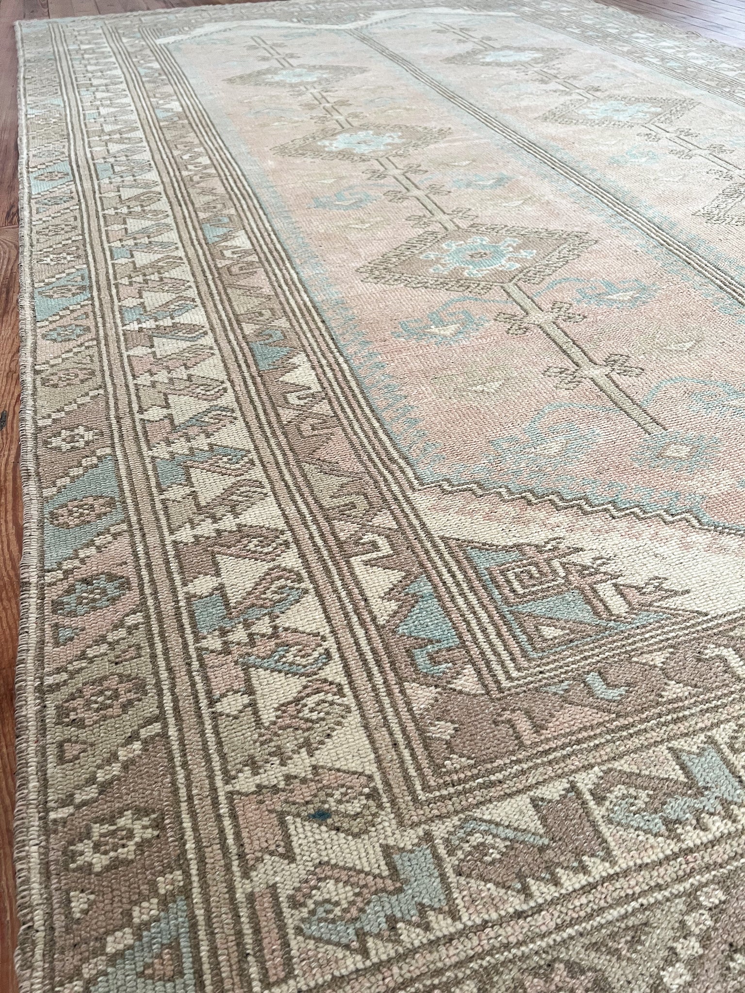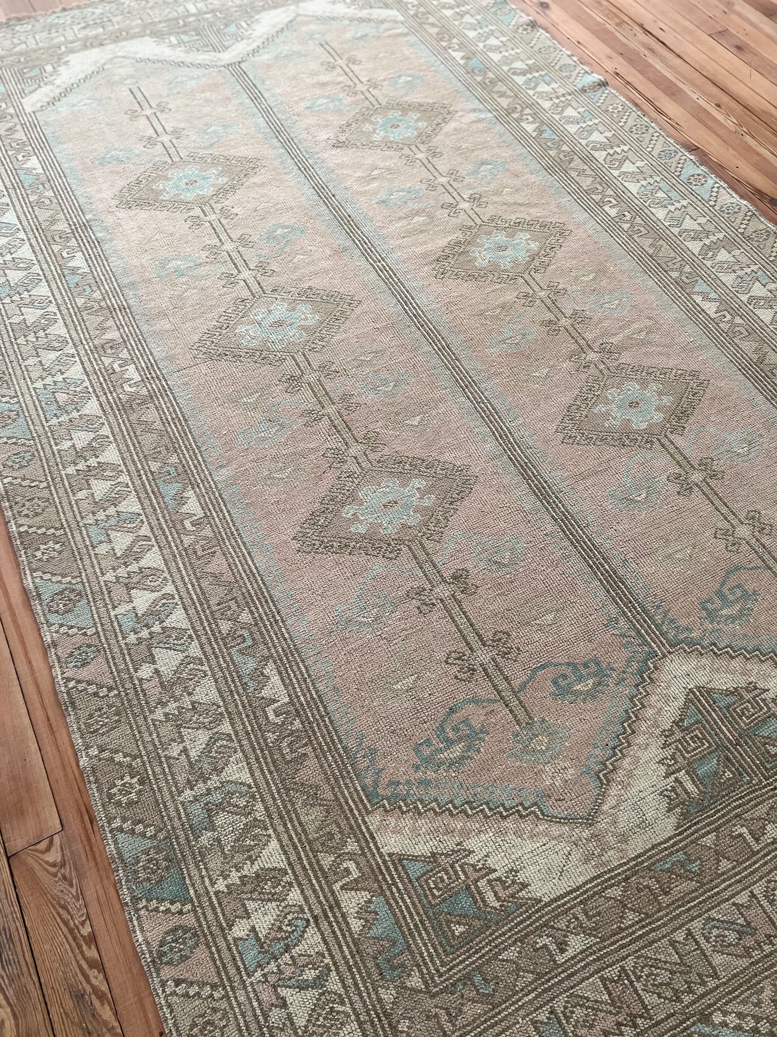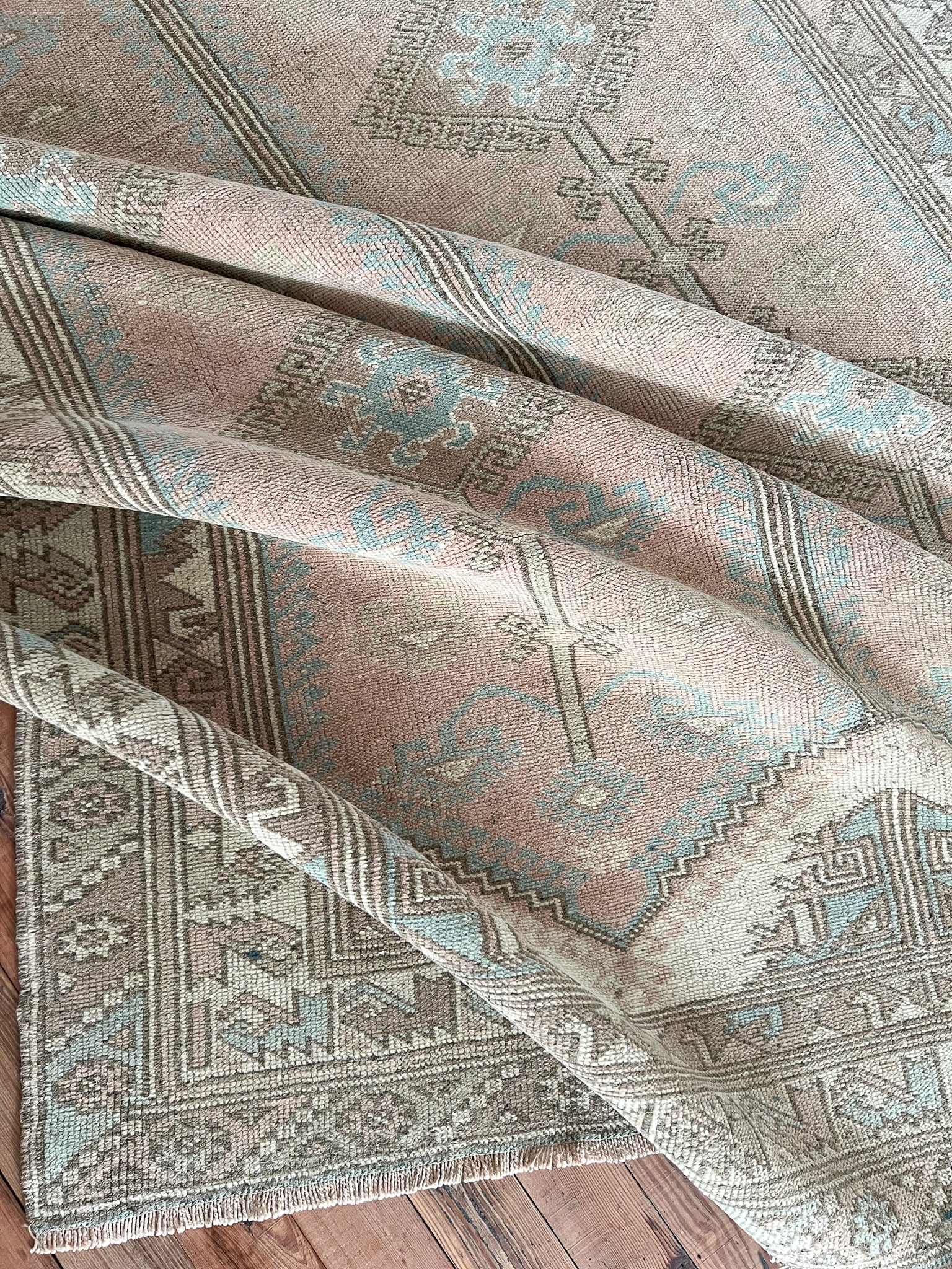 All rugs have been thoroughly cleaned; age-related wear and patina are considered normal in these unique, hand-woven vintage rugs. All pieces have been photographed with moderate natural light. In some cases, photos are edited to depict the most true-to-life colors. Colors may vary depending on your phone or screen settings. Some items may not be perfectly straight or rectangle. We consider these characteristics part of what makes them truly one-of-a-kind.