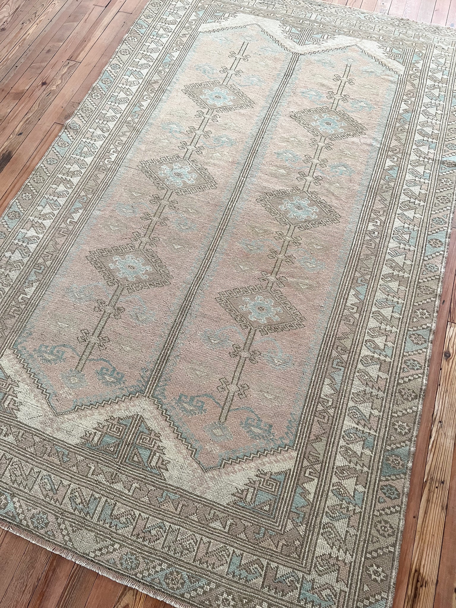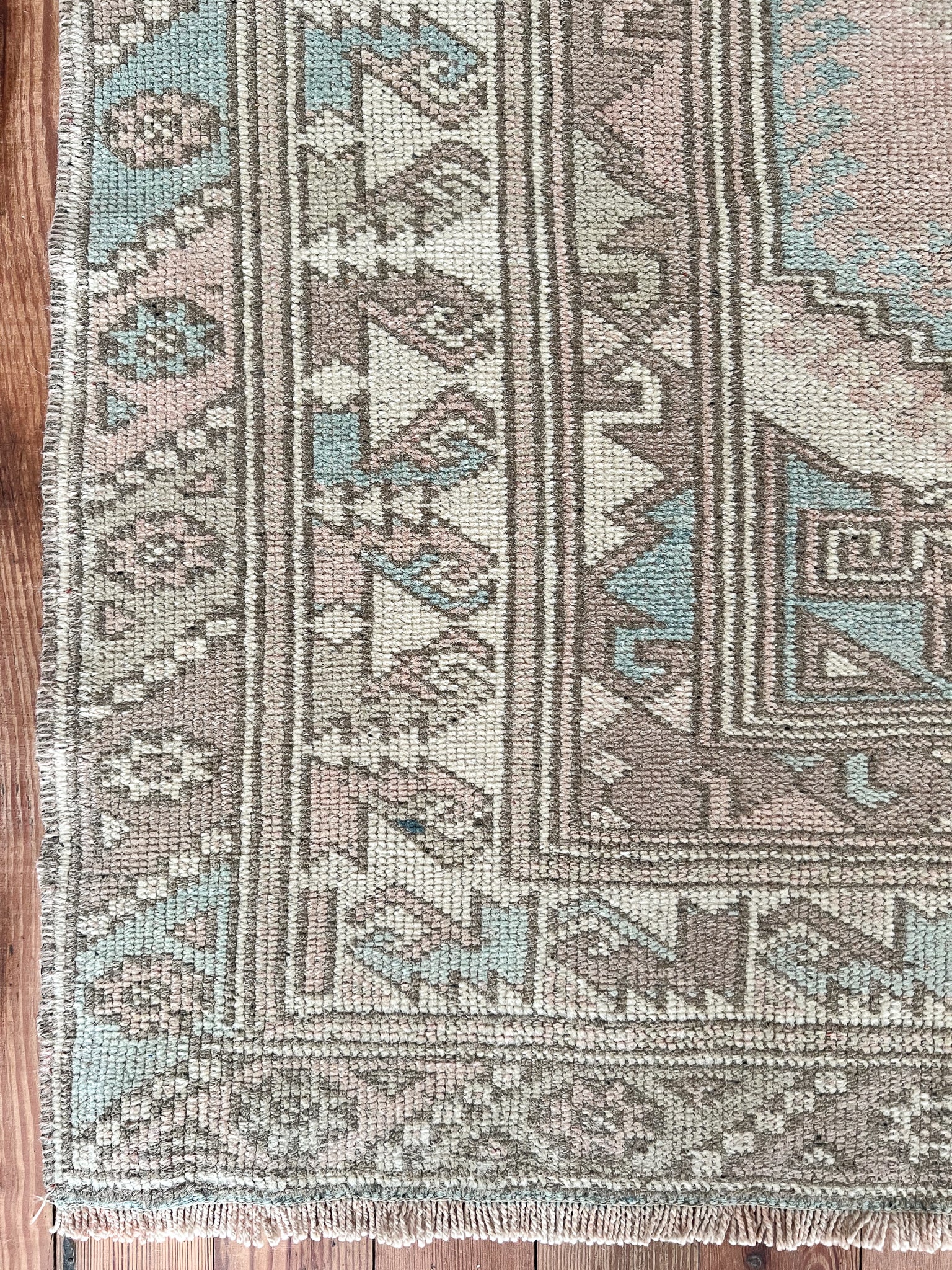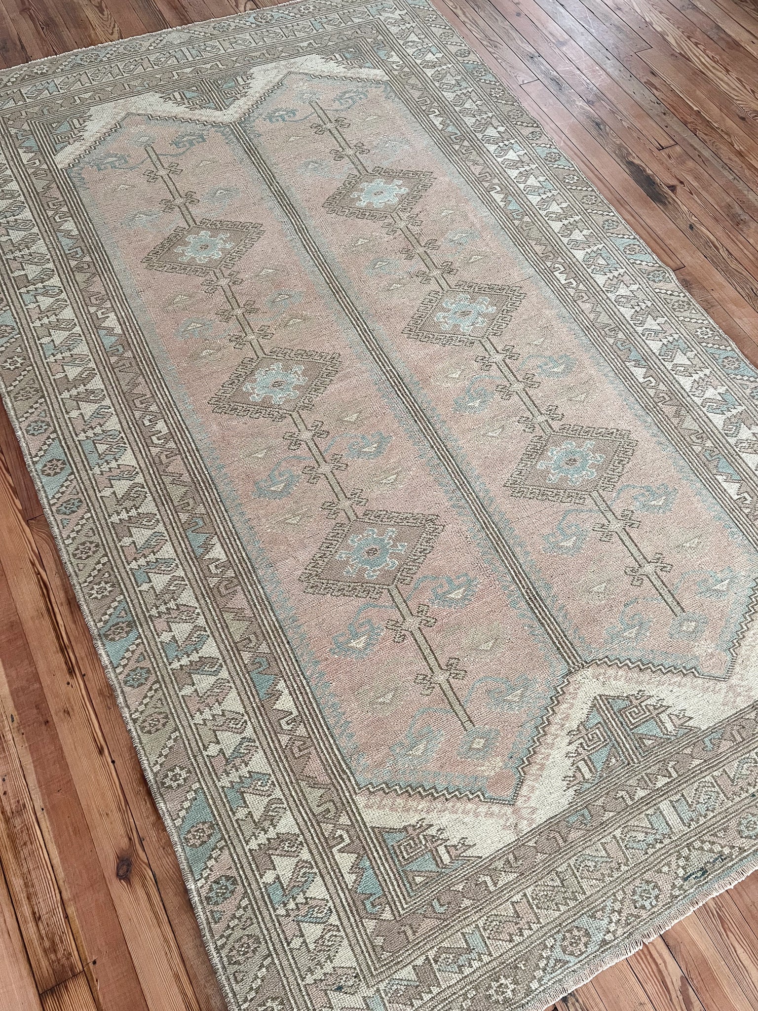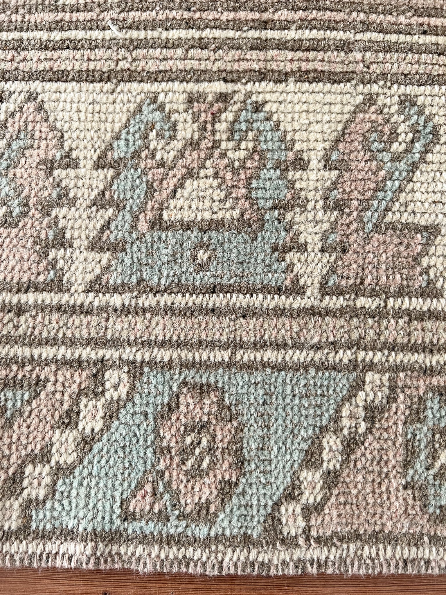 All rugs have been thoroughly cleaned; age-related wear and patina are considered normal in these unique, hand-woven vintage rugs. All pieces have been photographed with moderate natural light. In some cases, photos are edited to depict the most true-to-life colors. Colors may vary depending on your phone or screen settings. Some items may not be perfectly straight or rectangle. We consider these characteristics part of what makes them truly one-of-a-kind.
