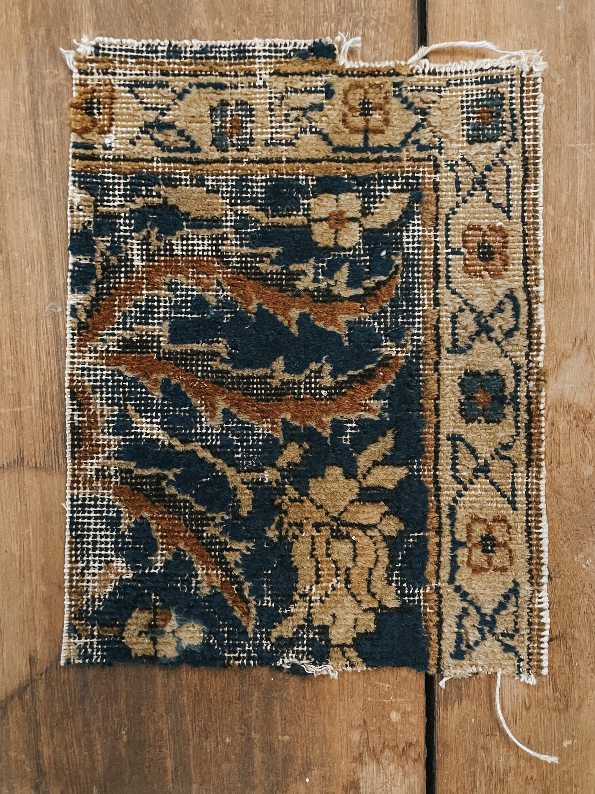 Each rug listed on our site is either a wool pile on a cotton foundation or a wool pile on a wool foundation. Quality, unrefined wool contains a substance called lanolin. Lanolin tends to have a natural smell, which many compare to the smell of sheep – or almost metallic-y, but sweet and grassy.