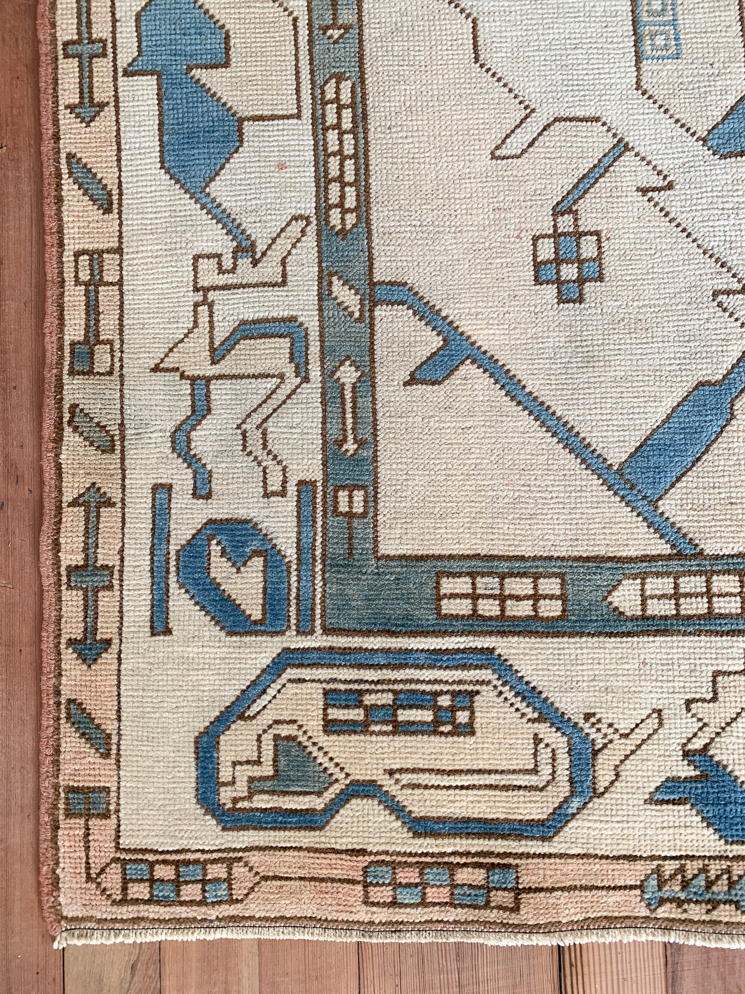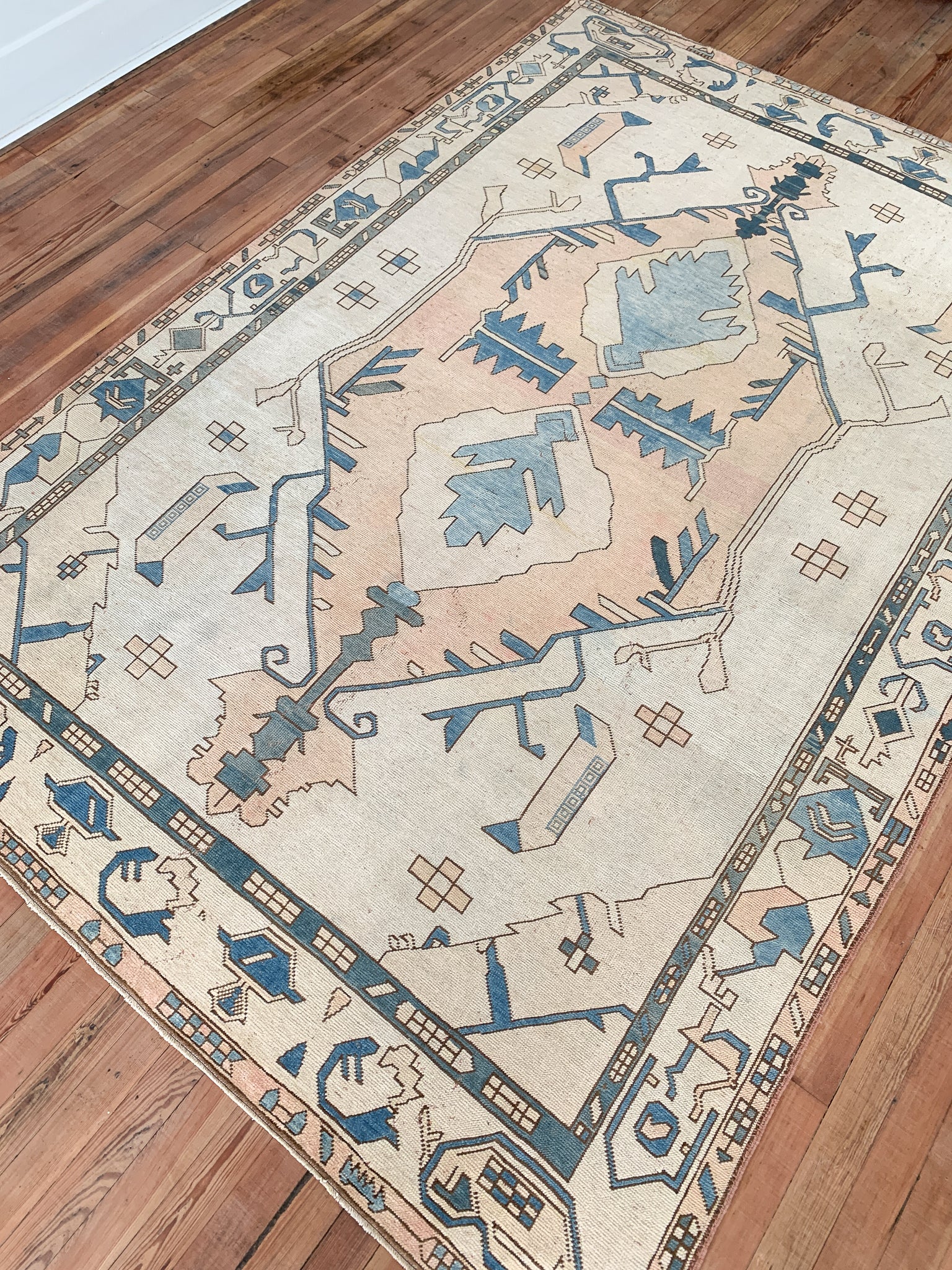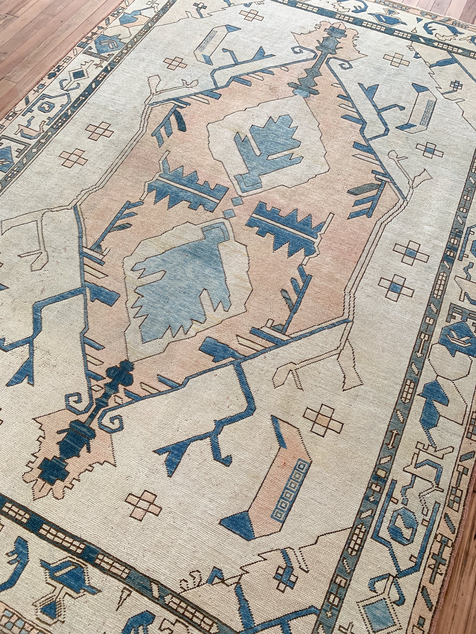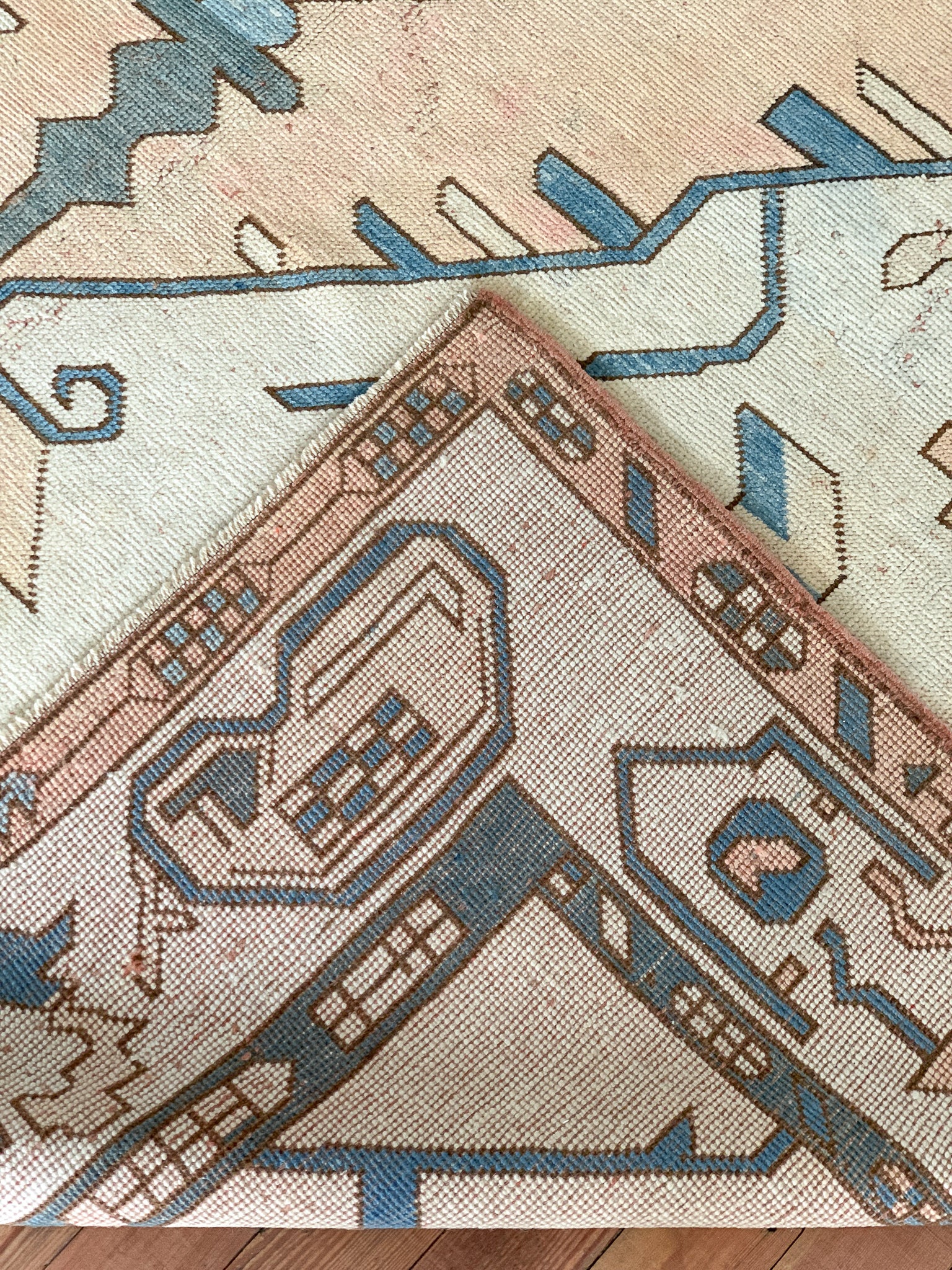 All rugs have been thoroughly cleaned; age-related wear and patina are considered normal in these unique, hand-woven vintage rugs. All pieces have been photographed with moderate natural light. In some cases, photos are edited to depict the most true-to-life colors. Colors may vary depending on your phone or screen settings. Some items may not be perfectly straight or rectangle. We consider these characteristics part of what makes them truly one-of-a-kind.