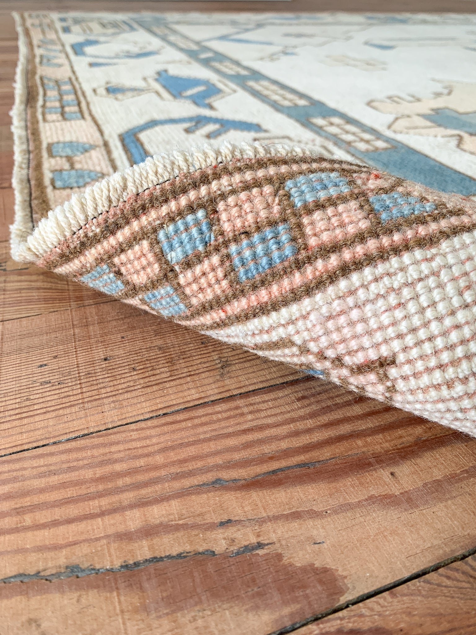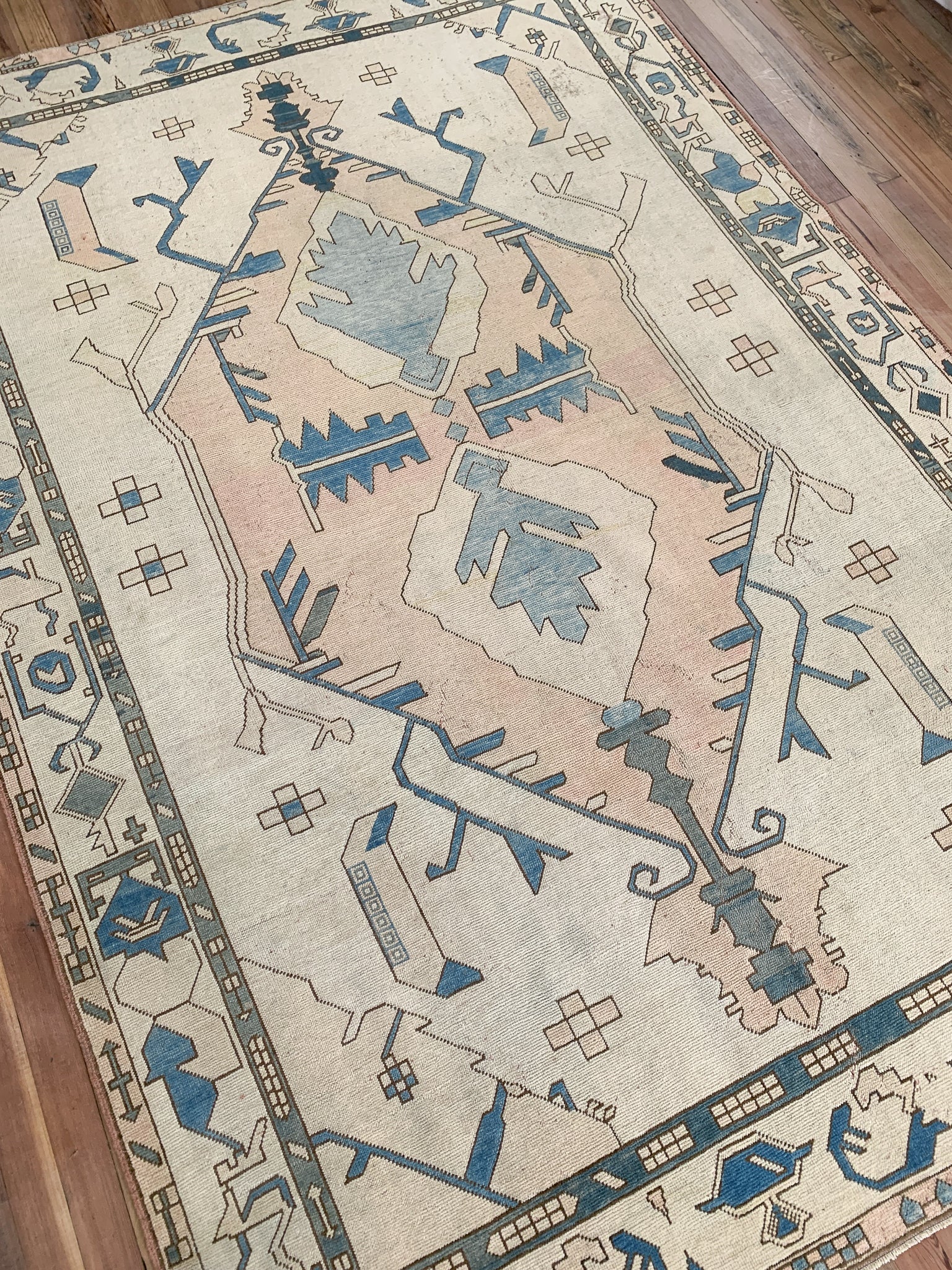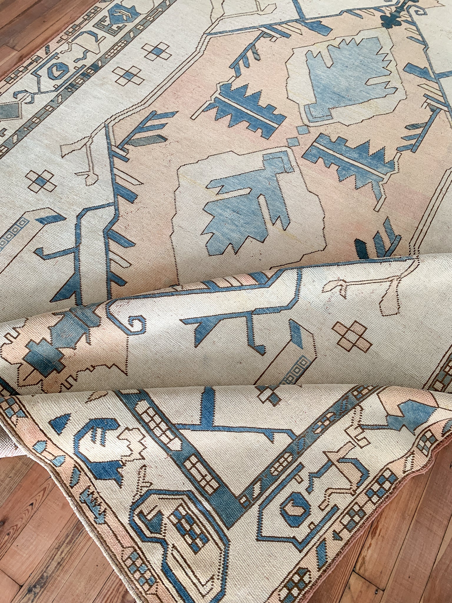 All rugs have been thoroughly cleaned; age-related wear and patina are considered normal in these unique, hand-woven vintage rugs. All pieces have been photographed with moderate natural light. In some cases, photos are edited to depict the most true-to-life colors. Colors may vary depending on your phone or screen settings. Some items may not be perfectly straight or rectangle. We consider these characteristics part of what makes them truly one-of-a-kind.