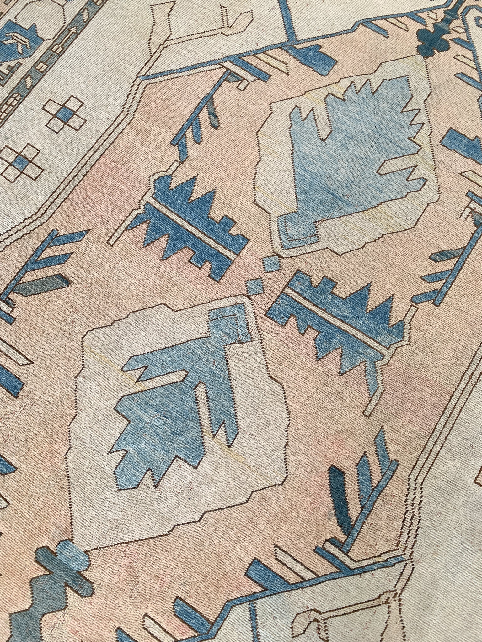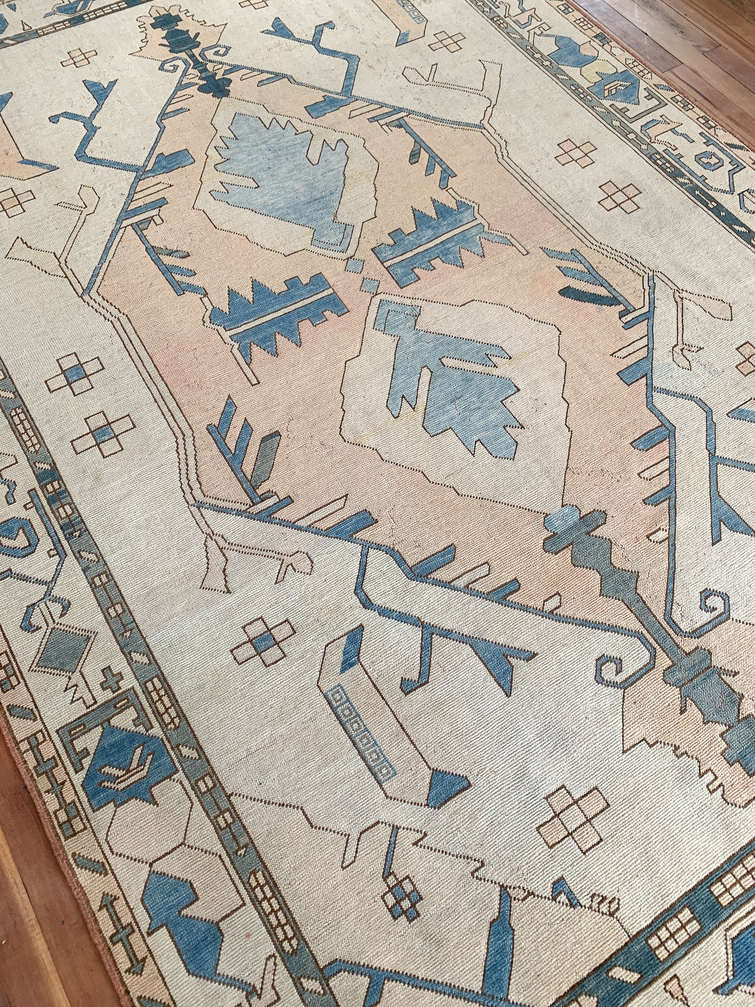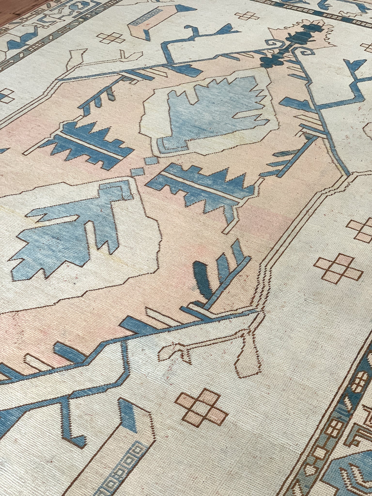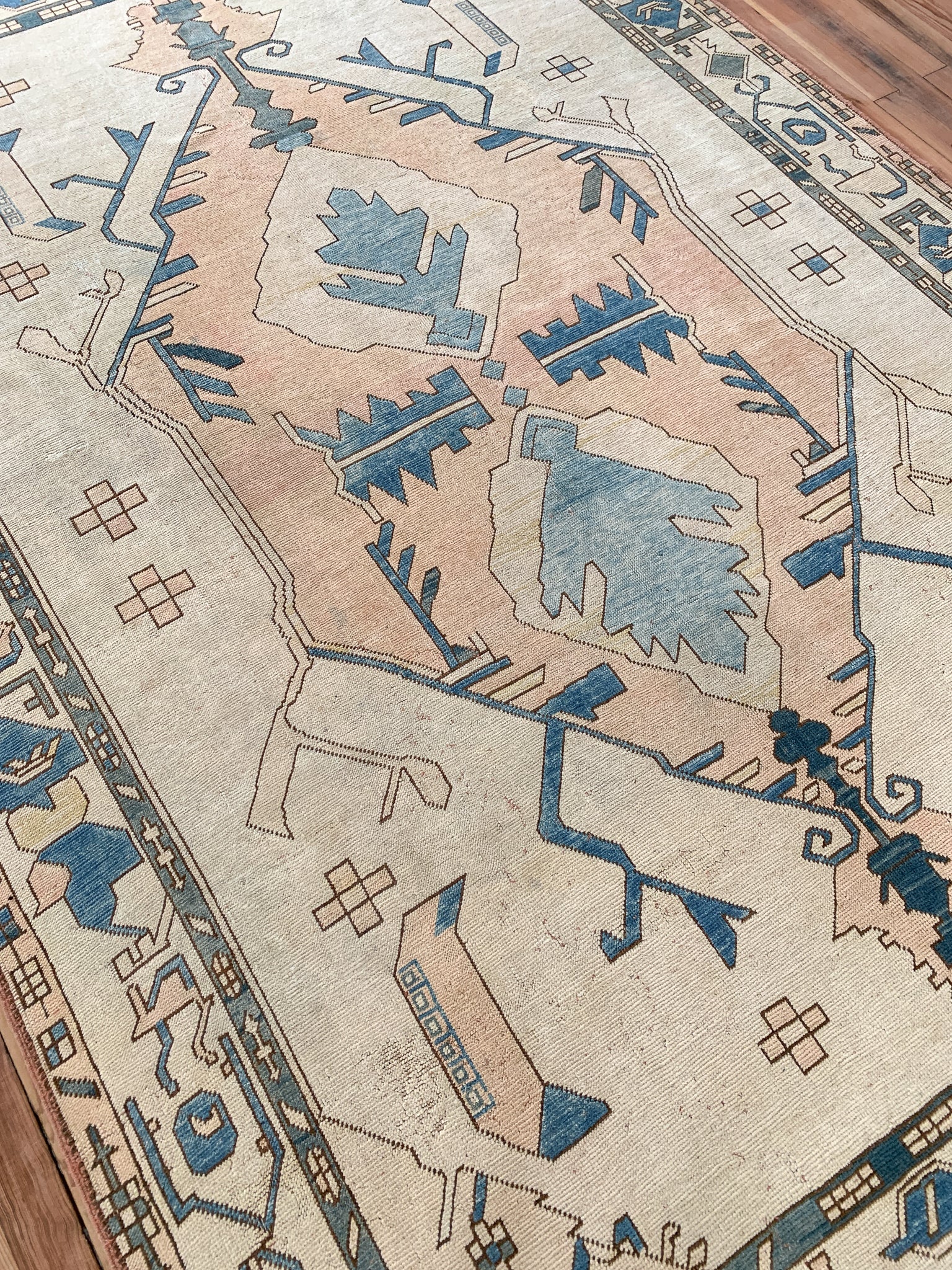 All rugs have been thoroughly cleaned; age-related wear and patina are considered normal in these unique, hand-woven vintage rugs. All pieces have been photographed with moderate natural light. In some cases, photos are edited to depict the most true-to-life colors. Colors may vary depending on your phone or screen settings. Some items may not be perfectly straight or rectangle. We consider these characteristics part of what makes them truly one-of-a-kind.