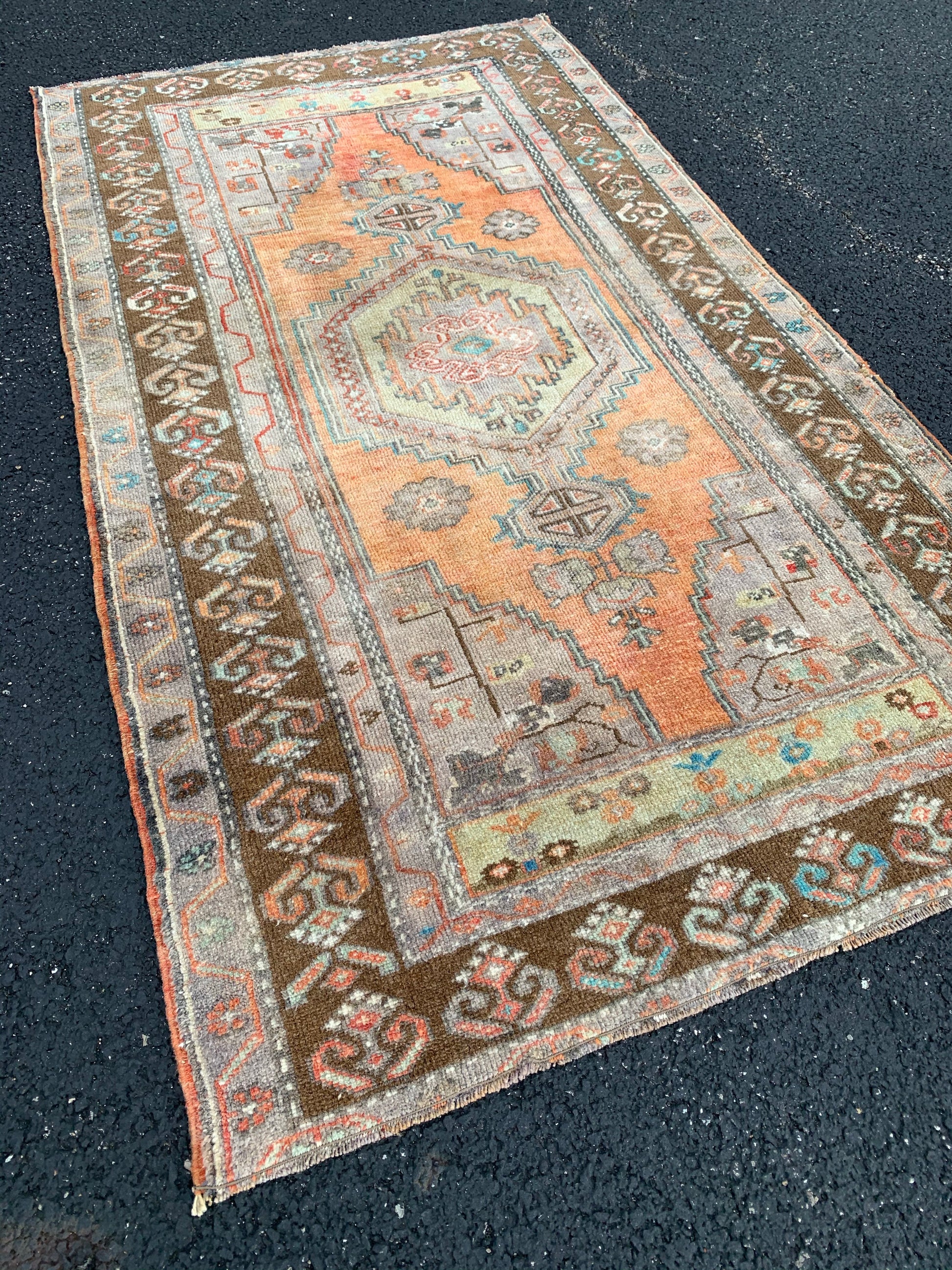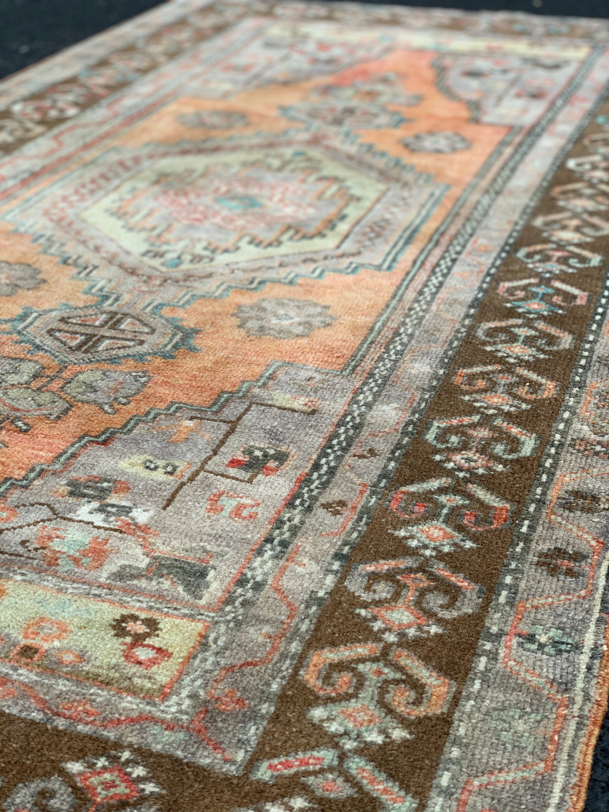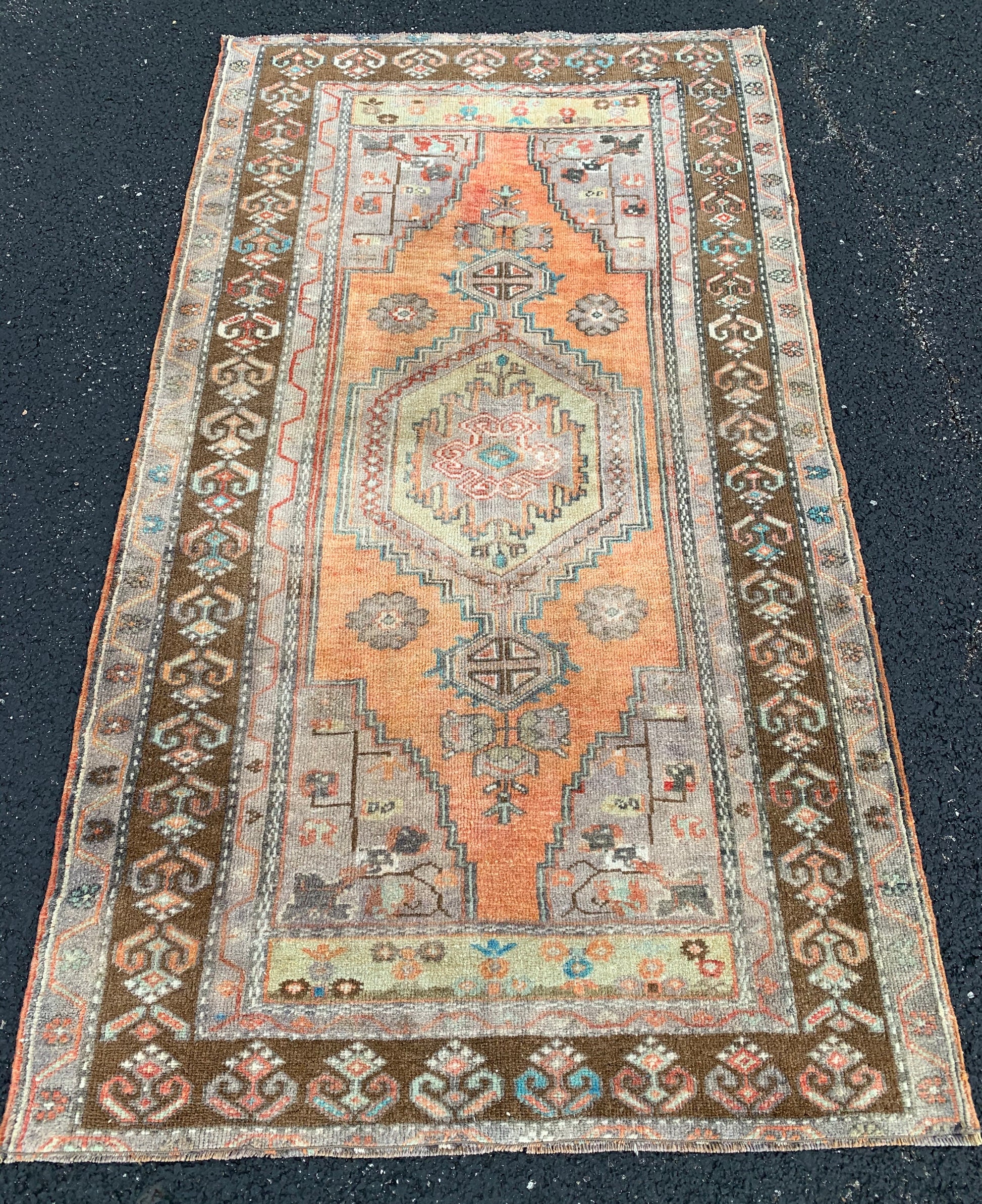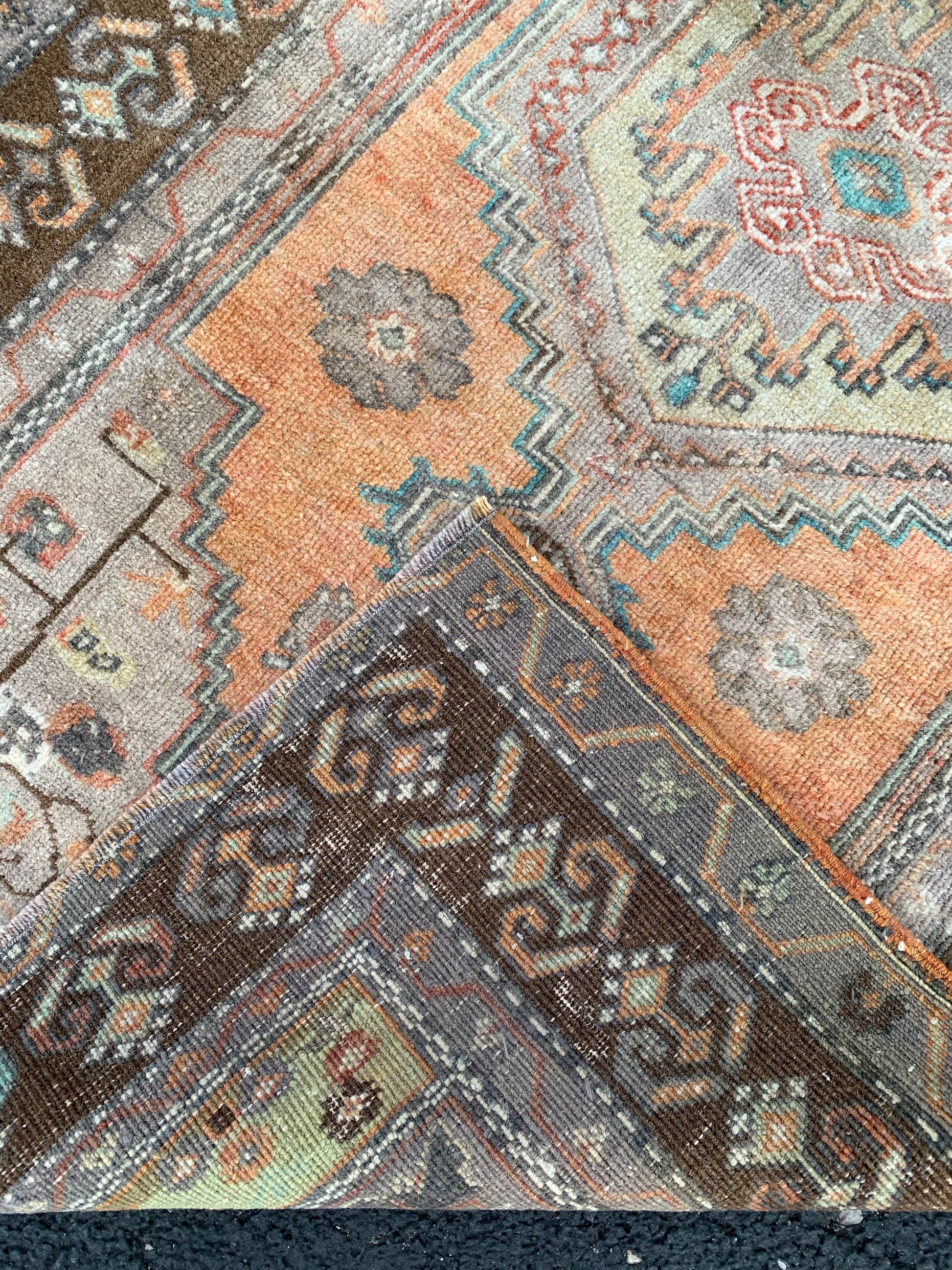 All rugs have been thoroughly cleaned; age-related wear and patina are considered normal in these unique, hand woven vintage rugs. All pieces have been photographed with moderate natural light. Colors may vary depending on your phone or screen settings. Some items may not be perfectly straight or rectangle. We consider these characteristics part of what makes them truly one-of-a-kind.