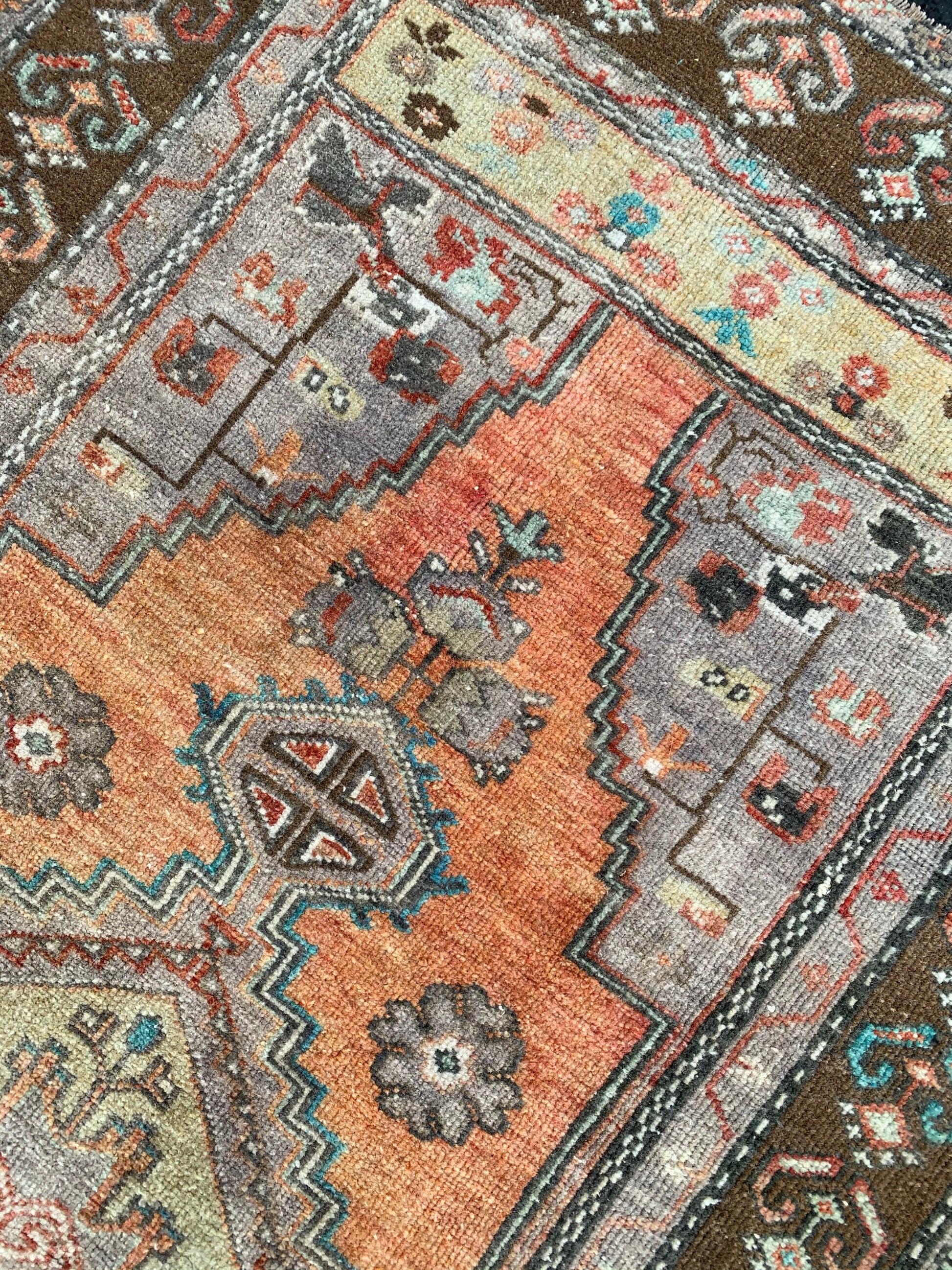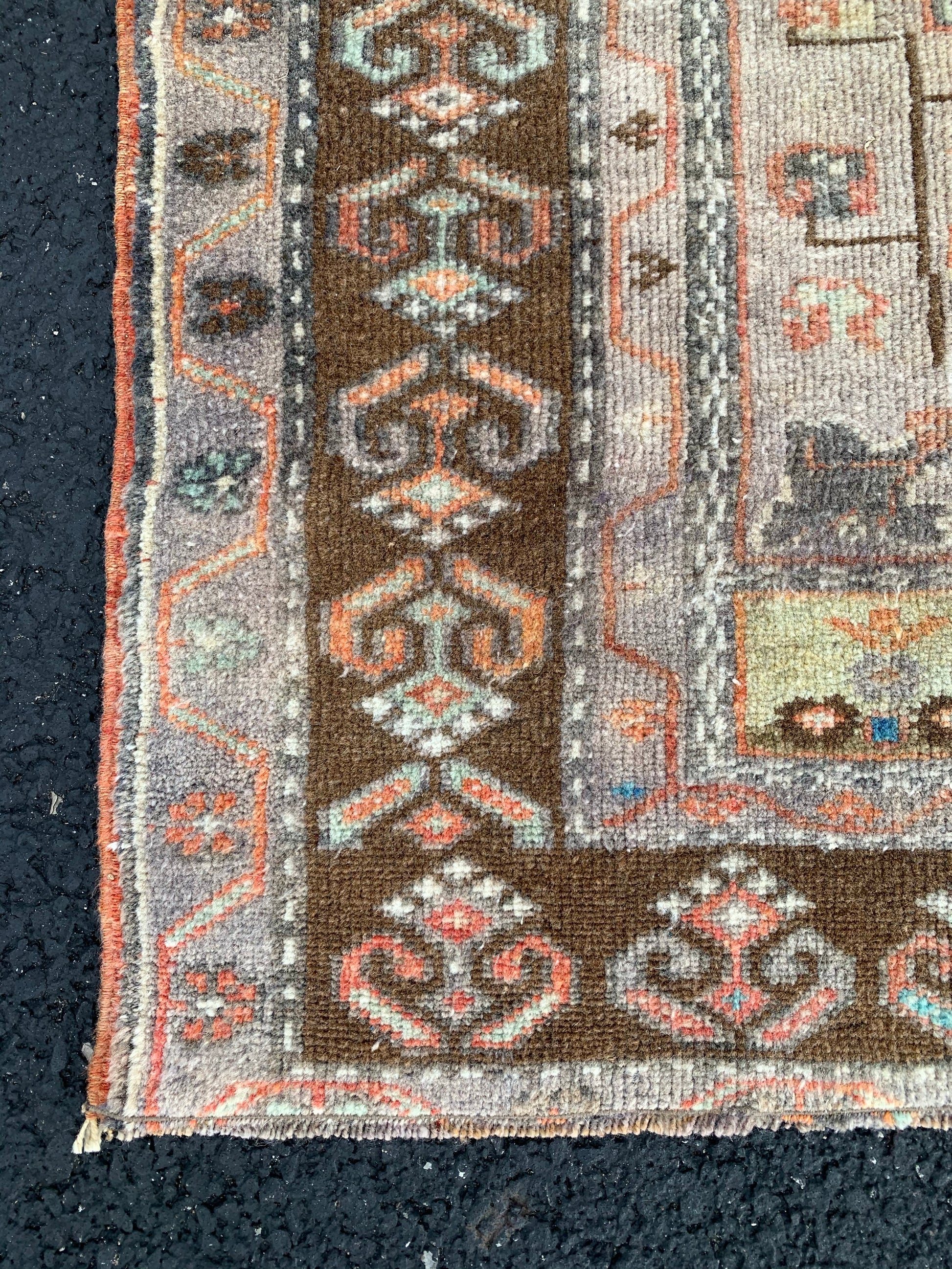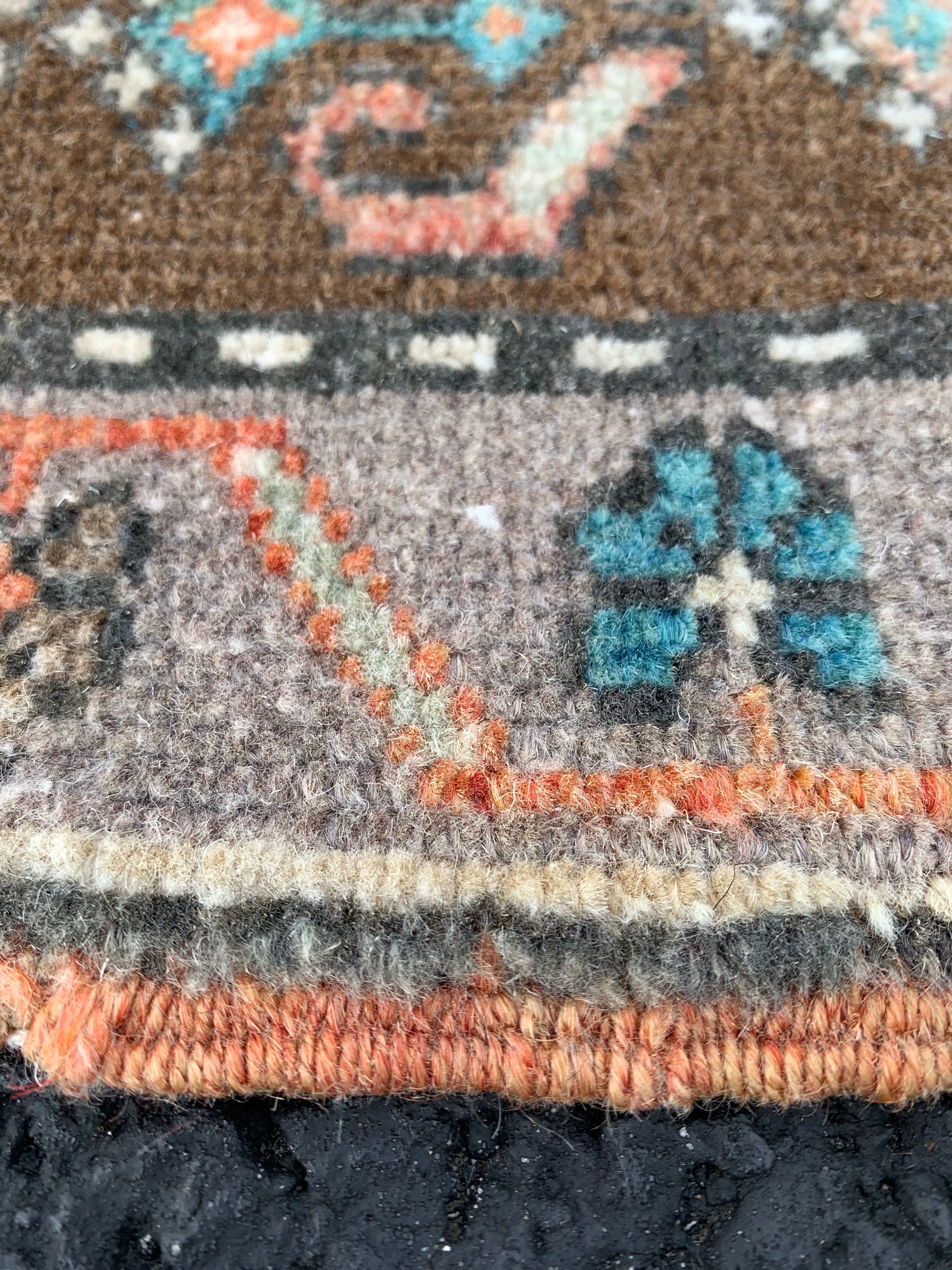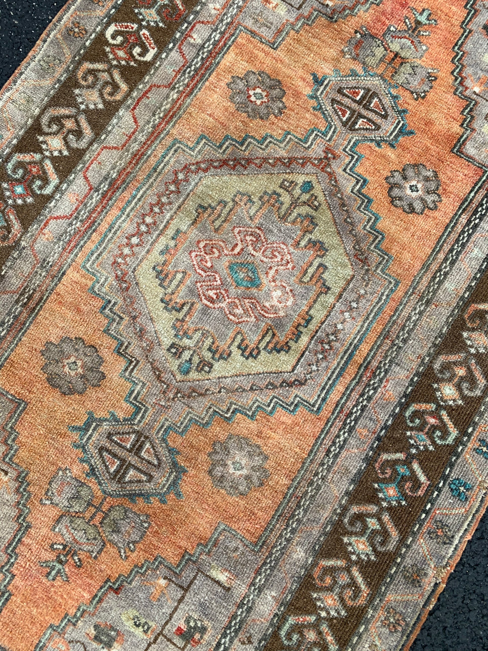 All rugs have been thoroughly cleaned; age-related wear and patina are considered normal in these unique, hand woven vintage rugs. All pieces have been photographed with moderate natural light. Colors may vary depending on your phone or screen settings. Some items may not be perfectly straight or rectangle. We consider these characteristics part of what makes them truly one-of-a-kind.