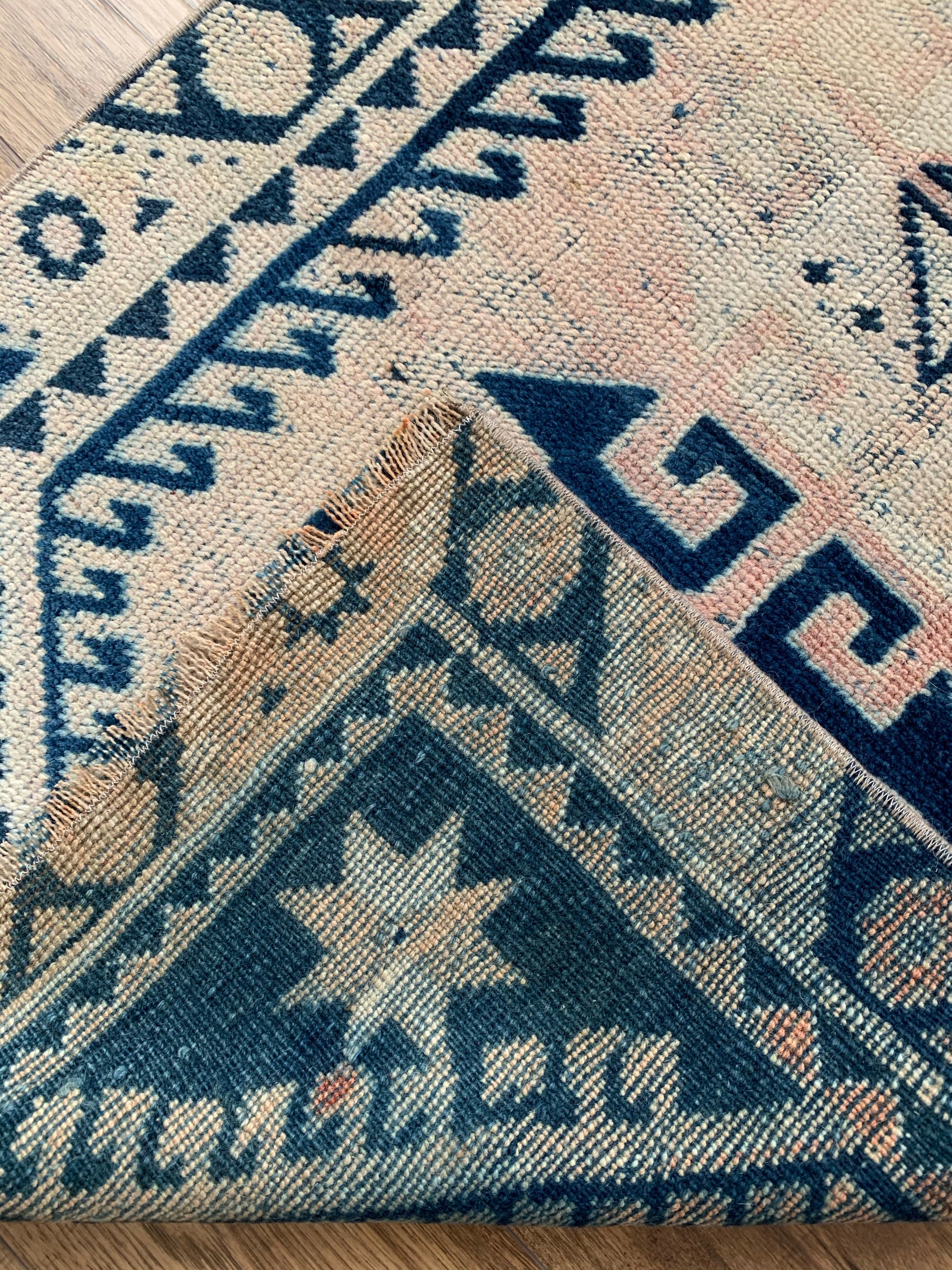All rugs have been thoroughly cleaned; age-related wear and patina are considered normal in these unique, hand woven vintage rugs. All pieces have been photographed with moderate natural light. Colors may vary depending on your phone or screen settings. Some items may not be perfectly straight or rectangle. We consider these characteristics part of what makes them truly one-of-a-kind.