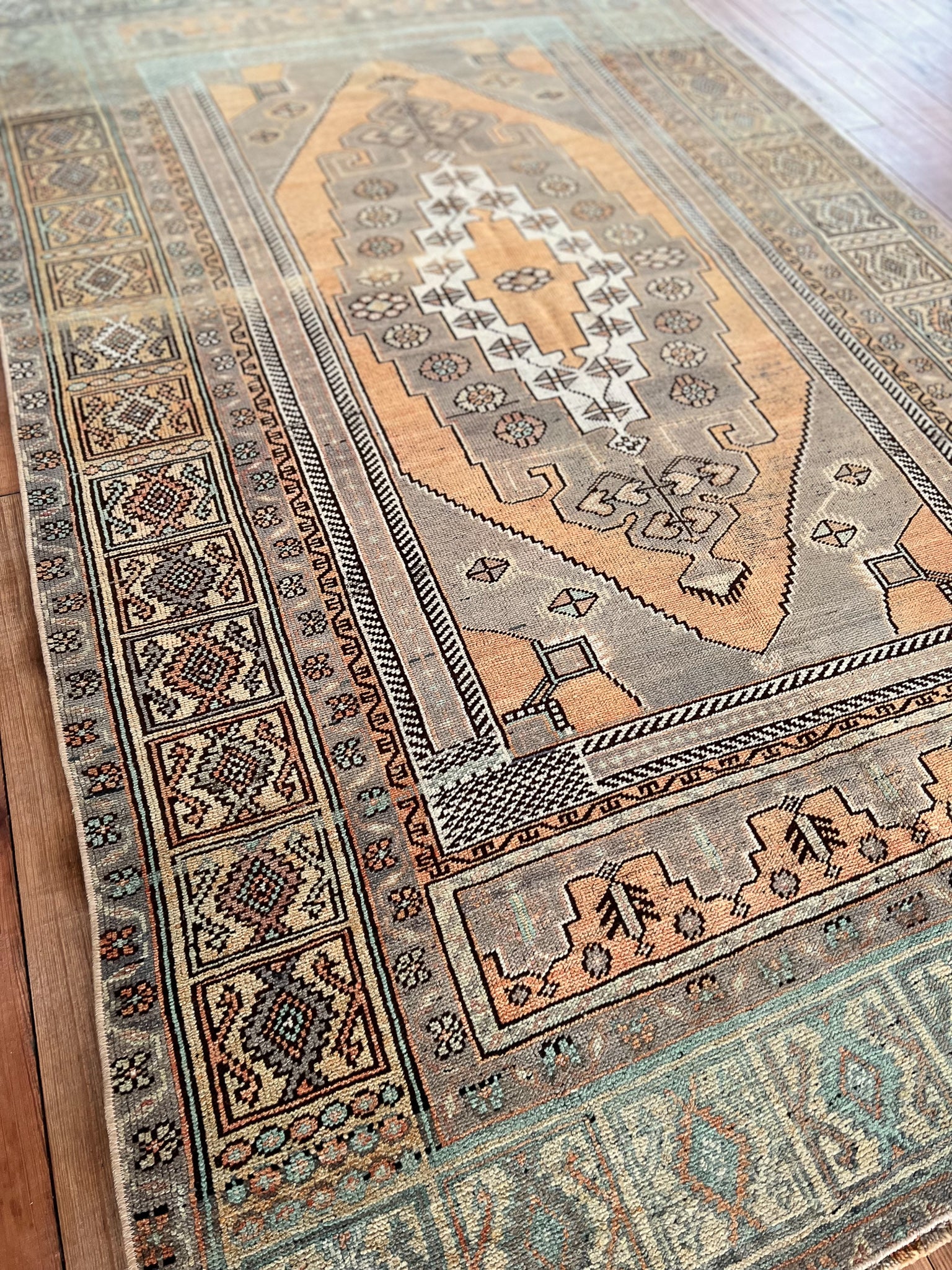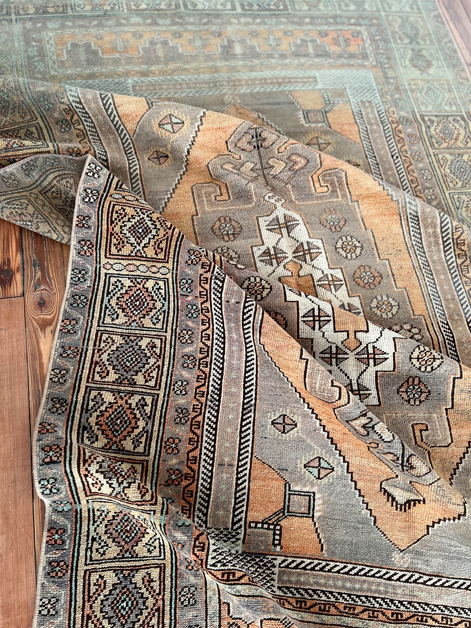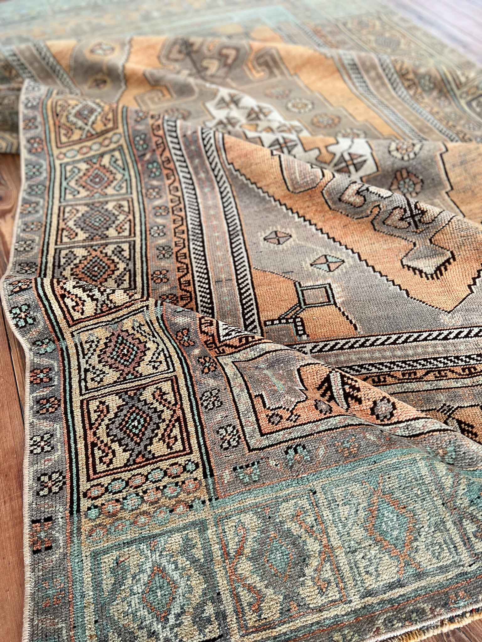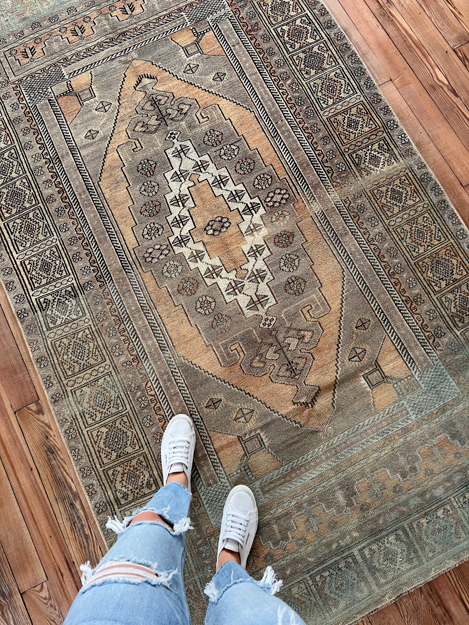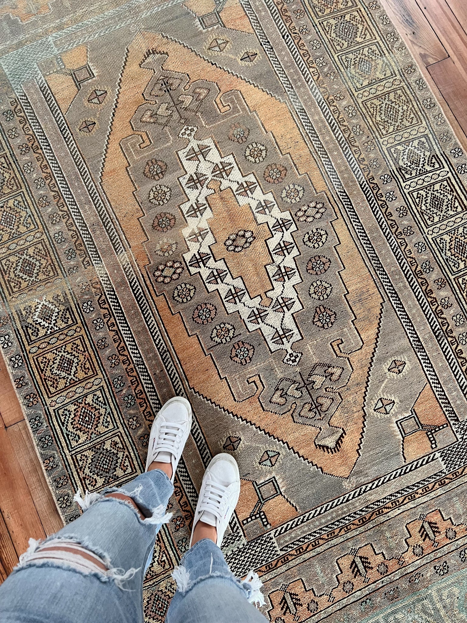 All rugs have been thoroughly cleaned; age-related wear and patina are considered normal in these unique, hand-woven vintage rugs. All pieces have been photographed with moderate natural light. In some cases, photos are edited to depict the most true-to-life colors. Colors may vary depending on your phone or screen settings. Some items may not be perfectly straight or rectangle. We consider these characteristics part of what makes them truly one-of-a-kind.