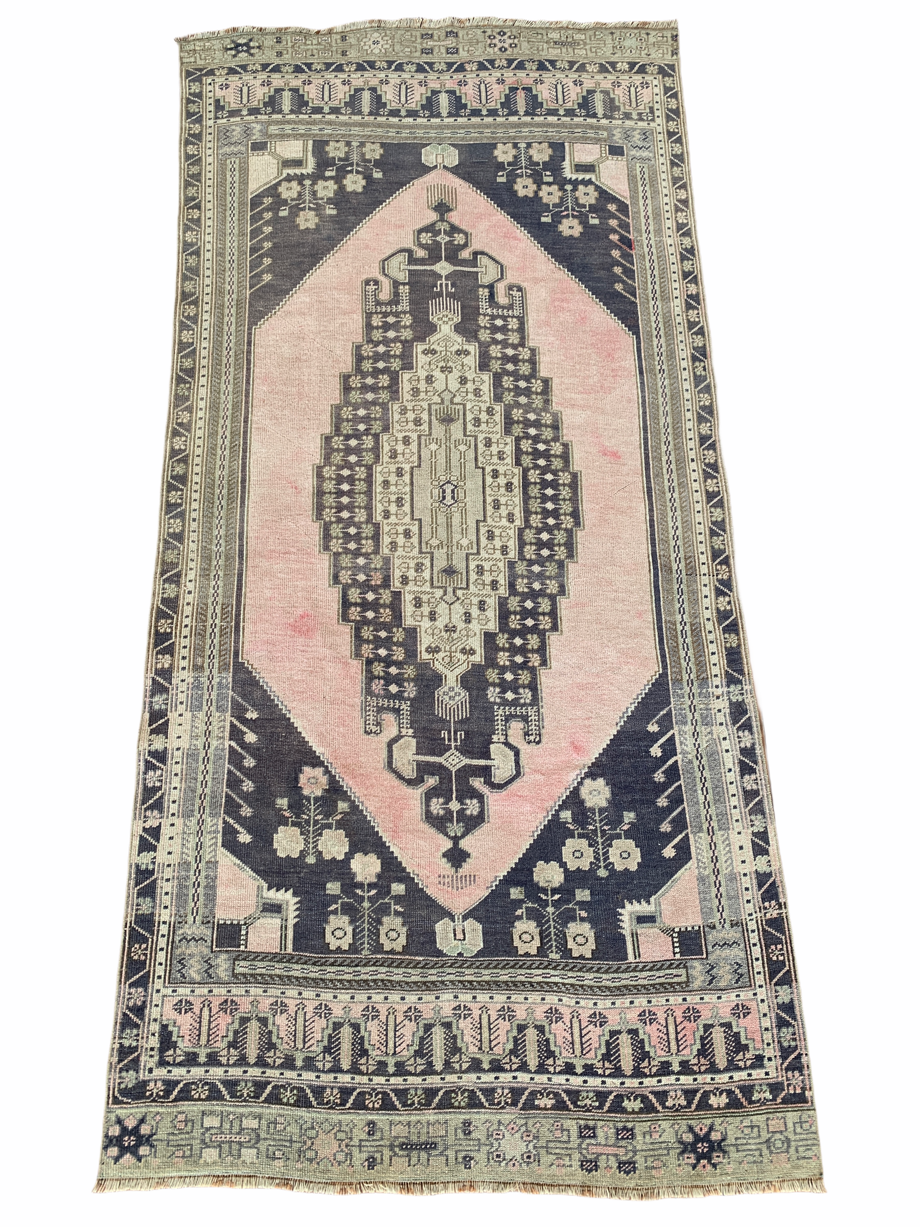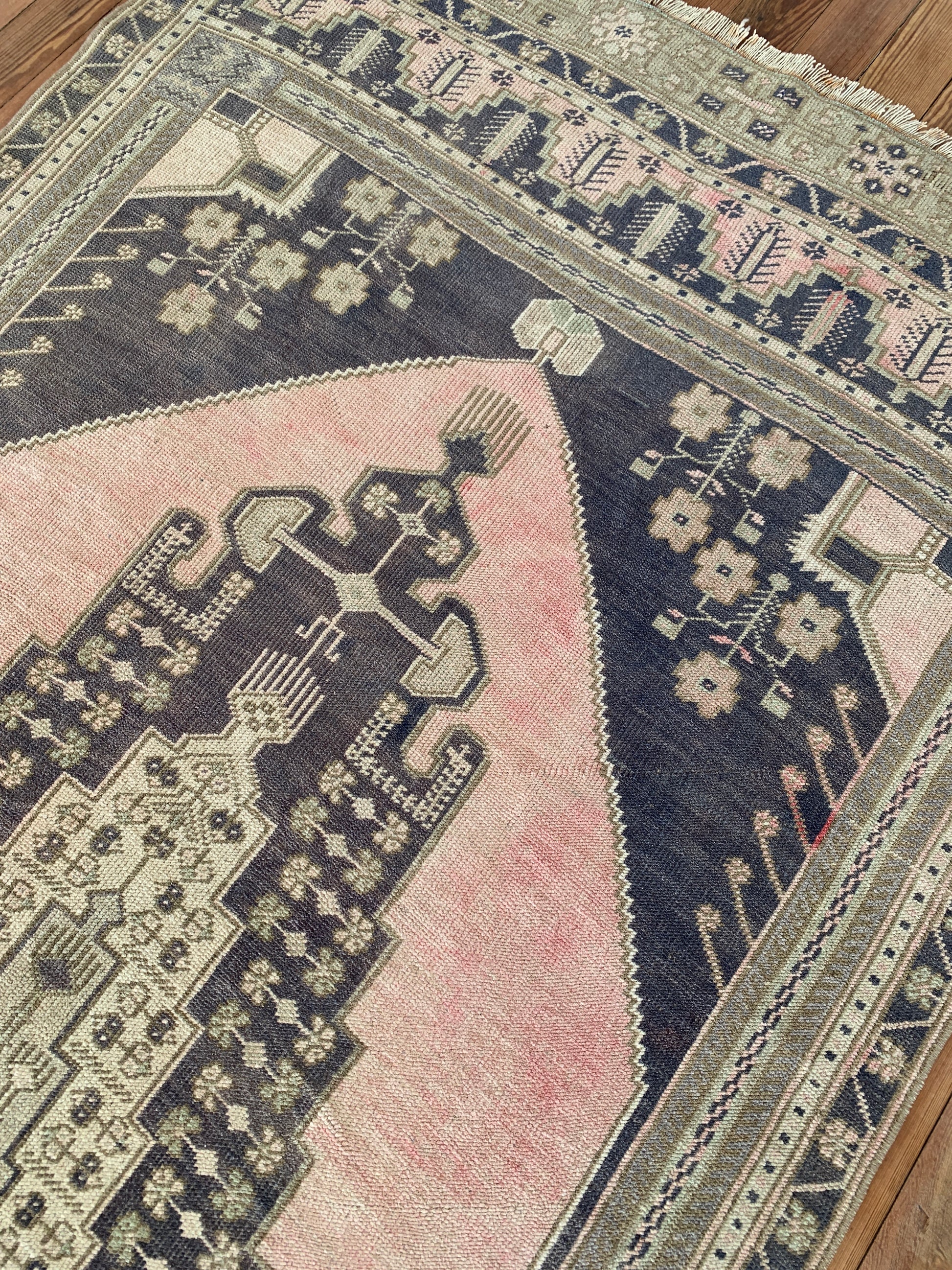All rugs have been thoroughly cleaned; age-related wear and patina are considered normal in these unique, hand woven vintage rugs. All pieces have been photographed with moderate natural light. Colors may vary depending on your phone or screen settings. Some items may not be perfectly straight or rectangle. We consider these characteristics part of what makes them truly one-of-a-kind.