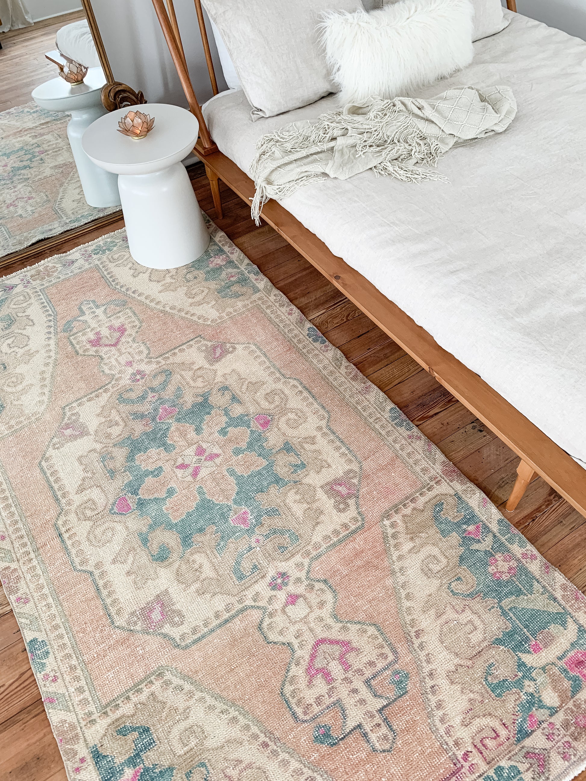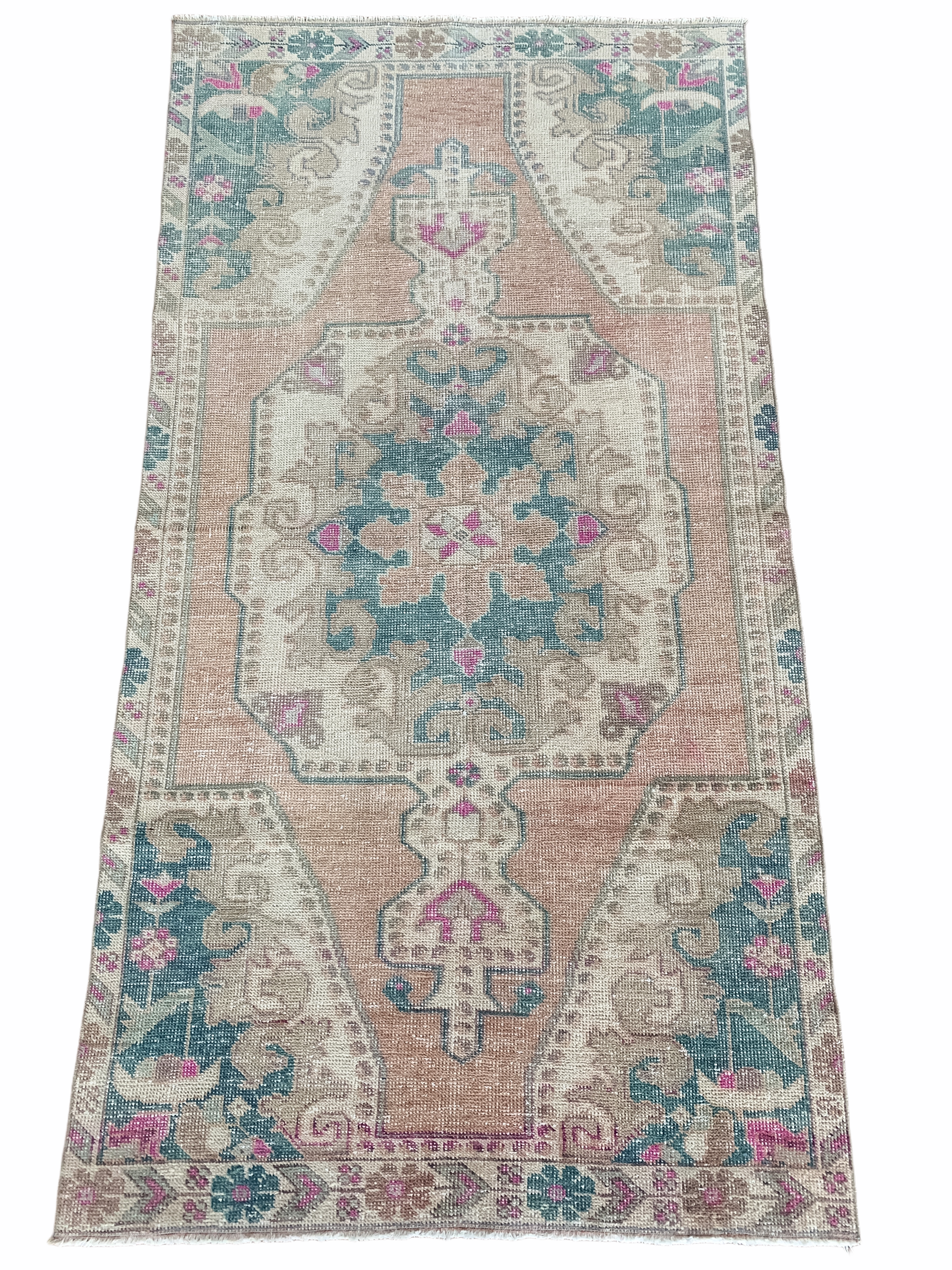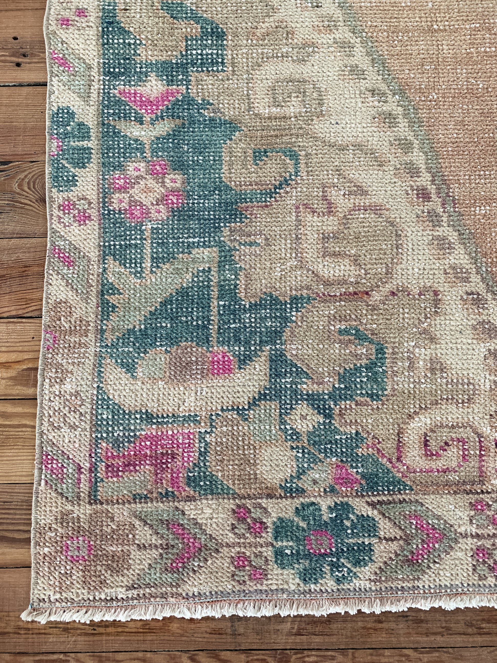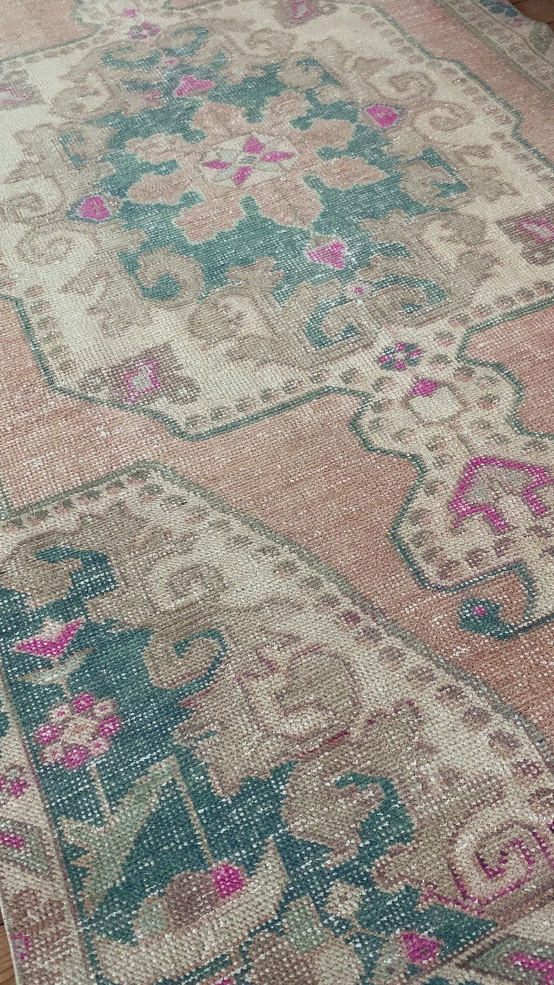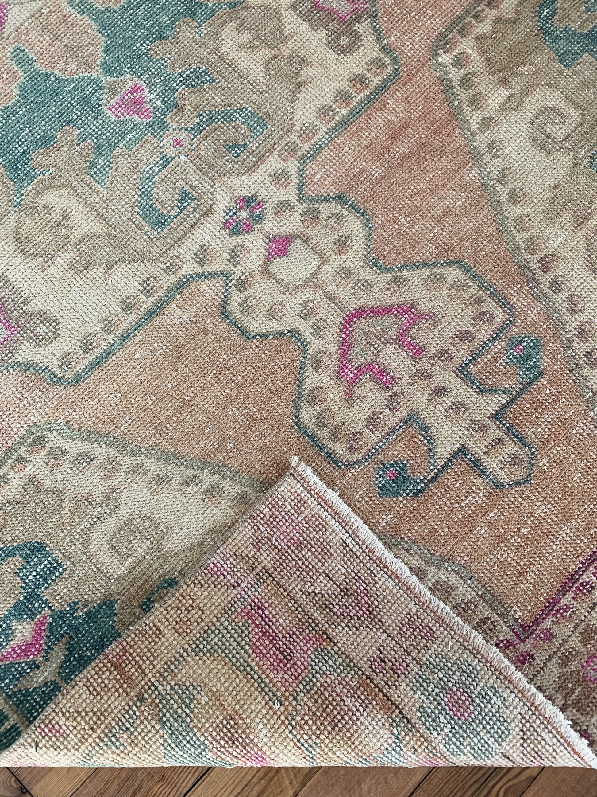 All rugs have been thoroughly cleaned; age-related wear and patina are considered normal in these unique, hand woven vintage rugs. All pieces have been photographed with moderate natural light. Colors may vary depending on your phone or screen settings. Some items may not be perfectly straight or rectangle. We consider these characteristics part of what makes them truly one-of-a-kind.