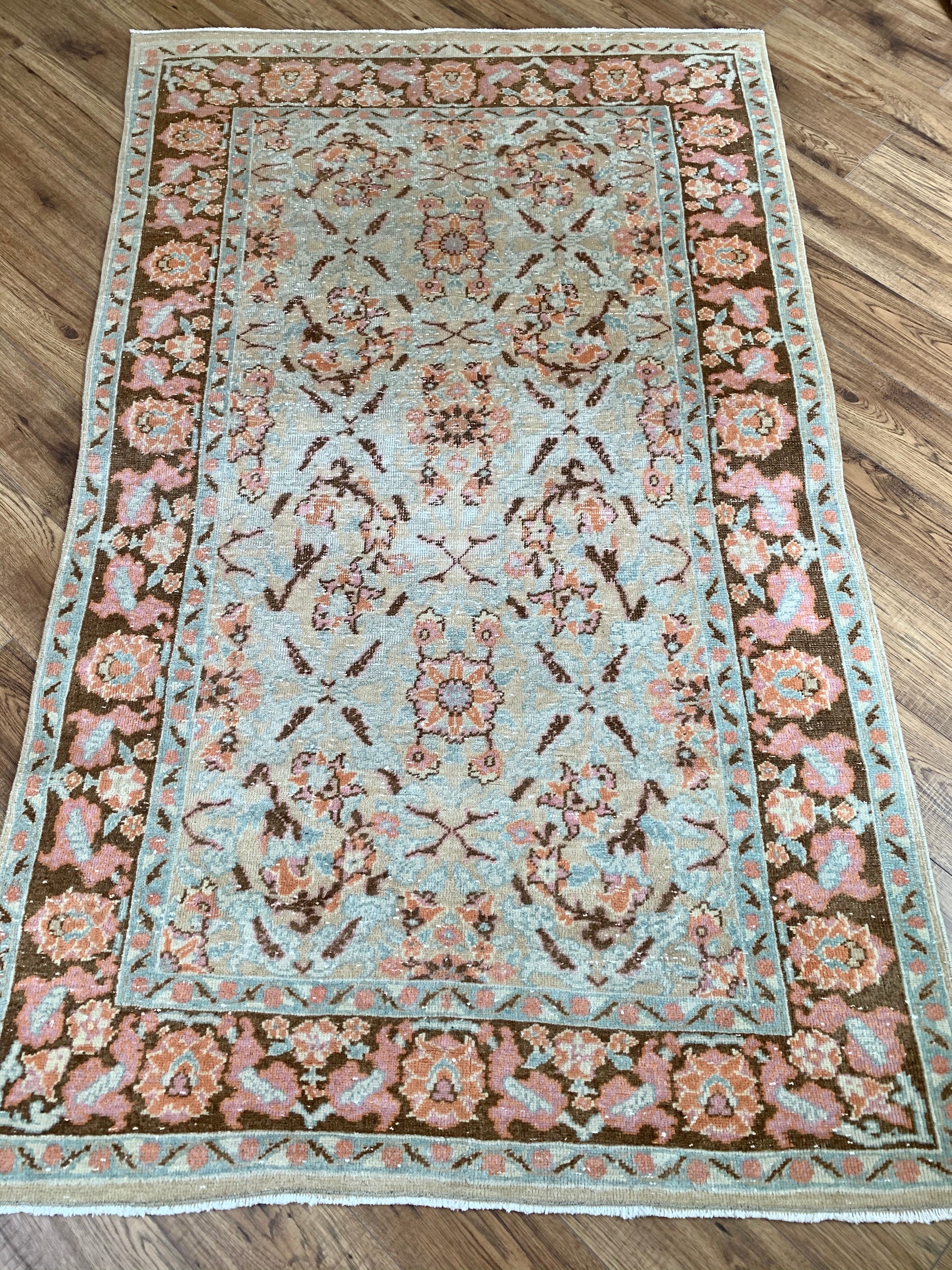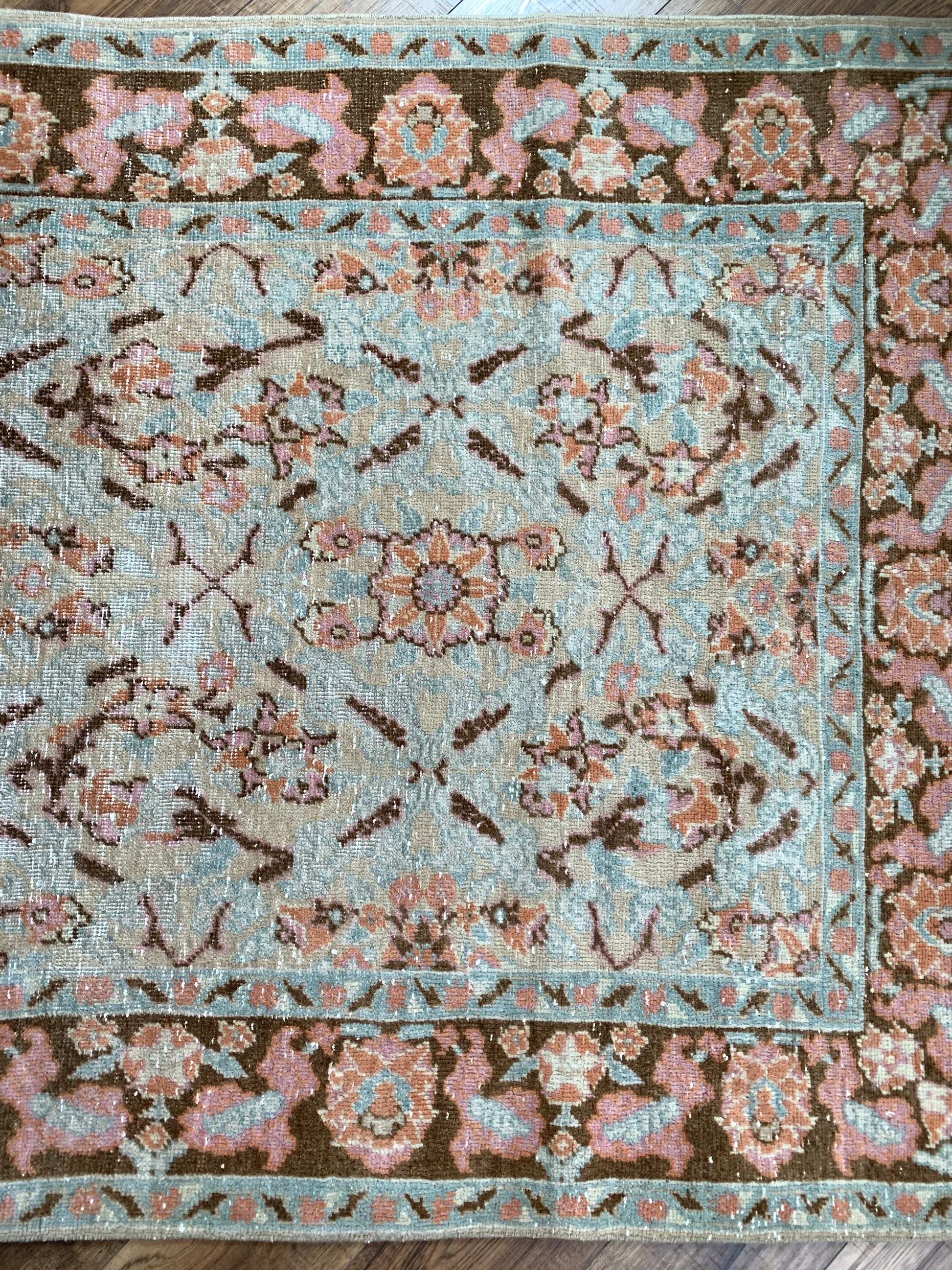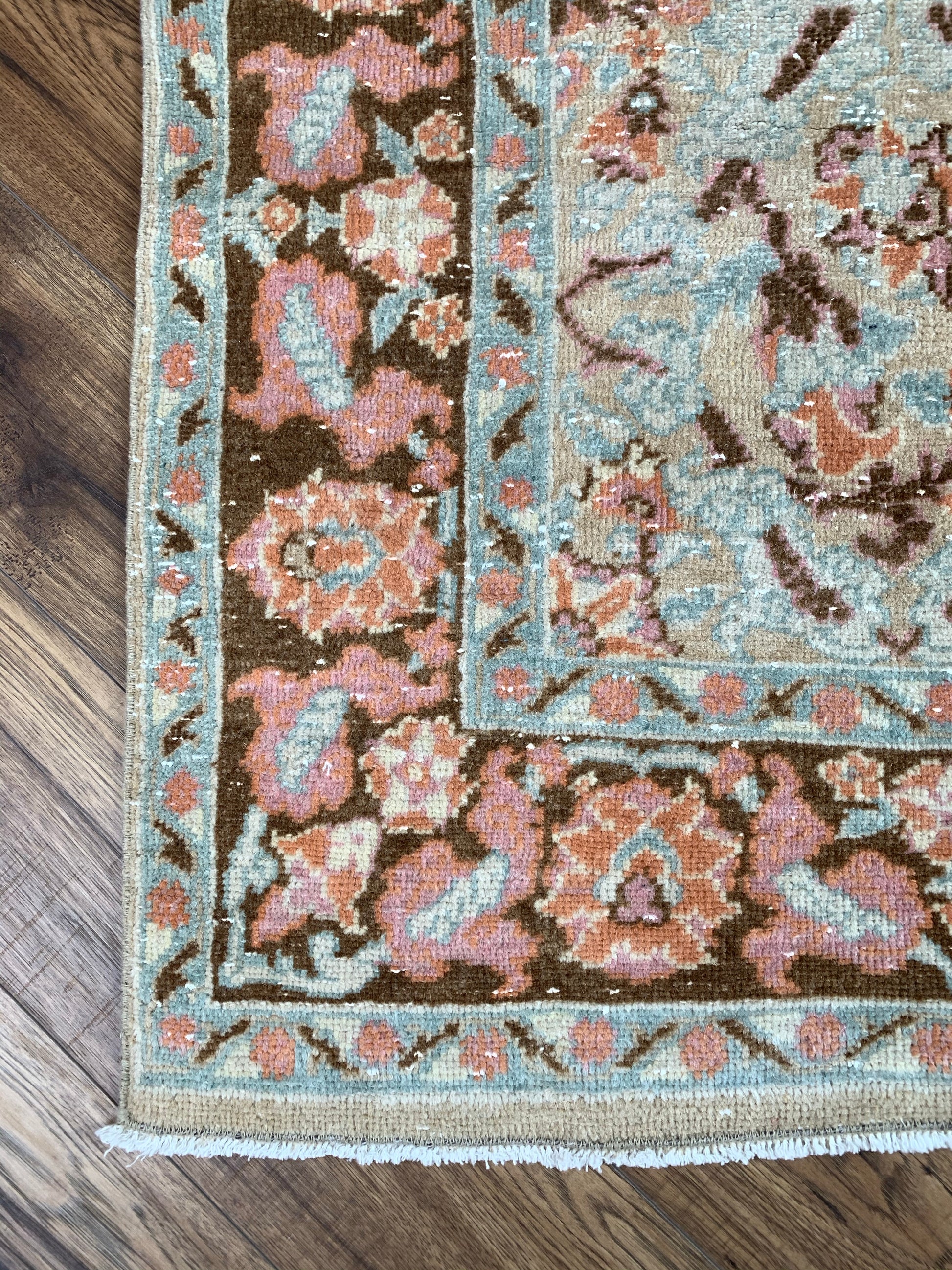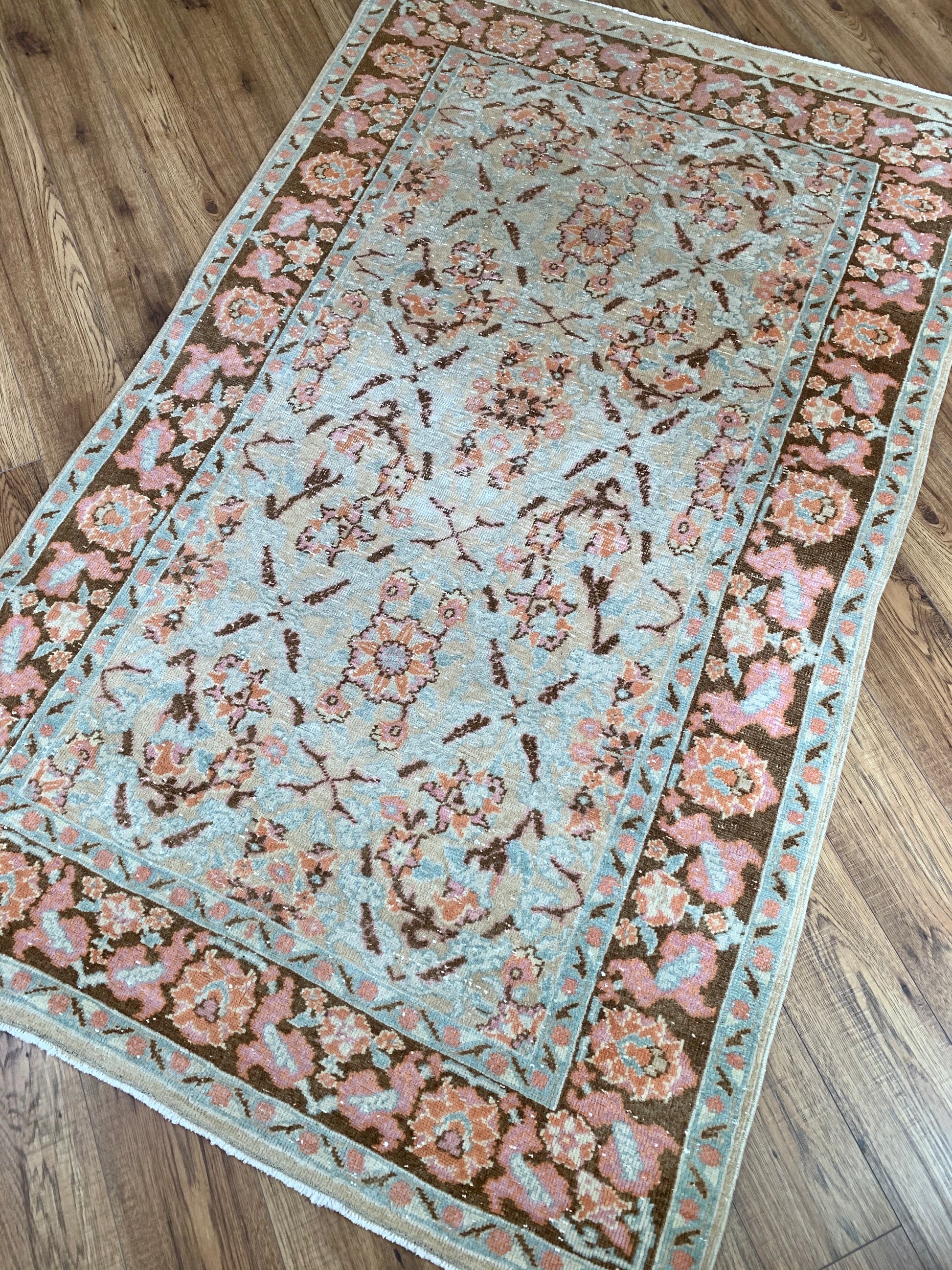 All rugs have been thoroughly cleaned; age-related wear and patina are considered normal in these unique, hand woven vintage rugs. All pieces have been photographed with moderate natural light. Colors may vary depending on your phone or screen settings. Some items may not be perfectly straight or rectangle. We consider these characteristics part of what makes them truly one-of-a-kind.