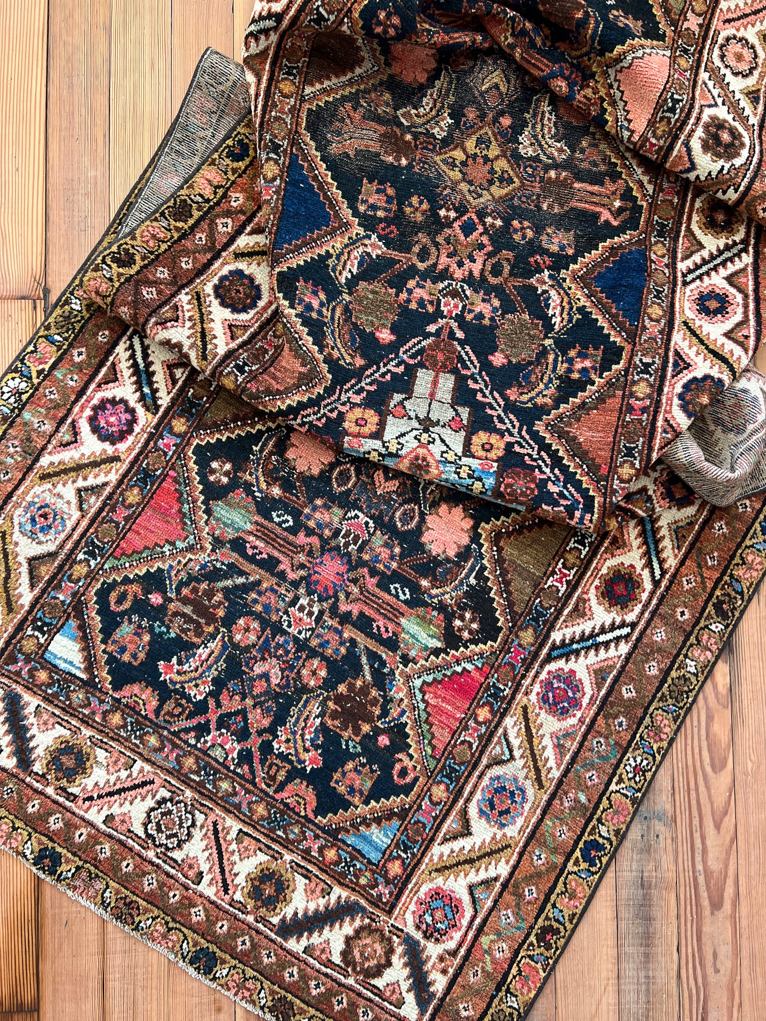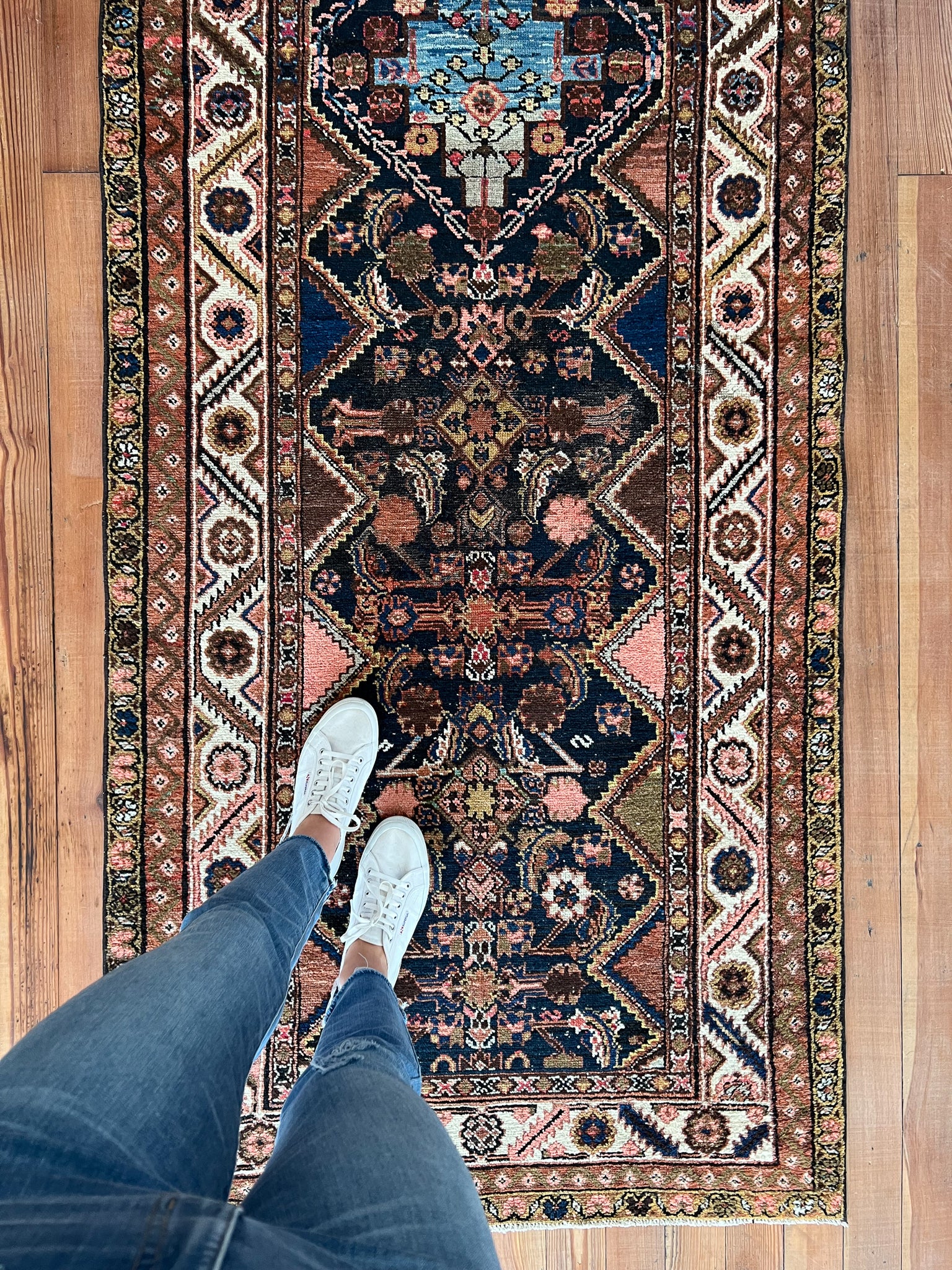 All rugs have been thoroughly cleaned; age-related wear and patina are considered normal in these unique, hand-woven vintage rugs.