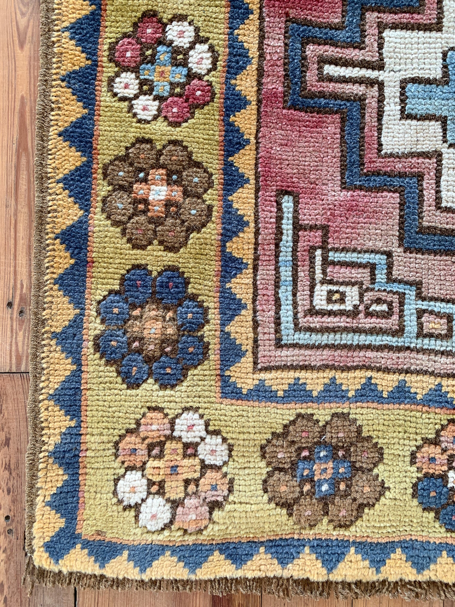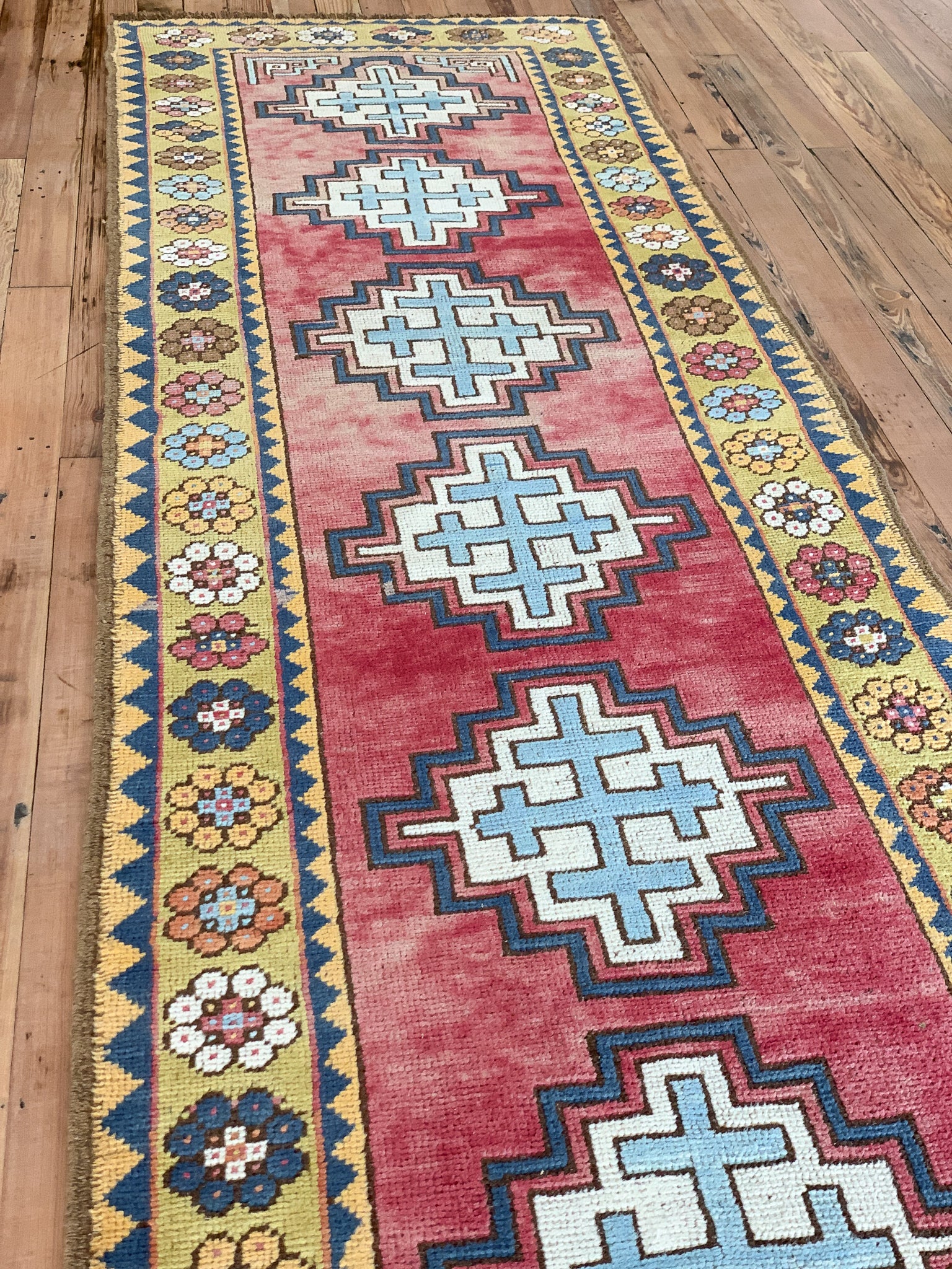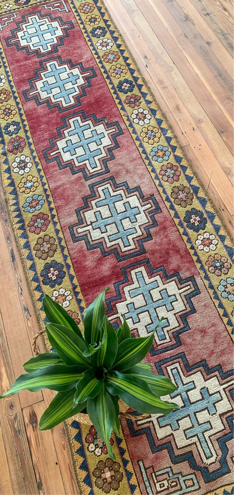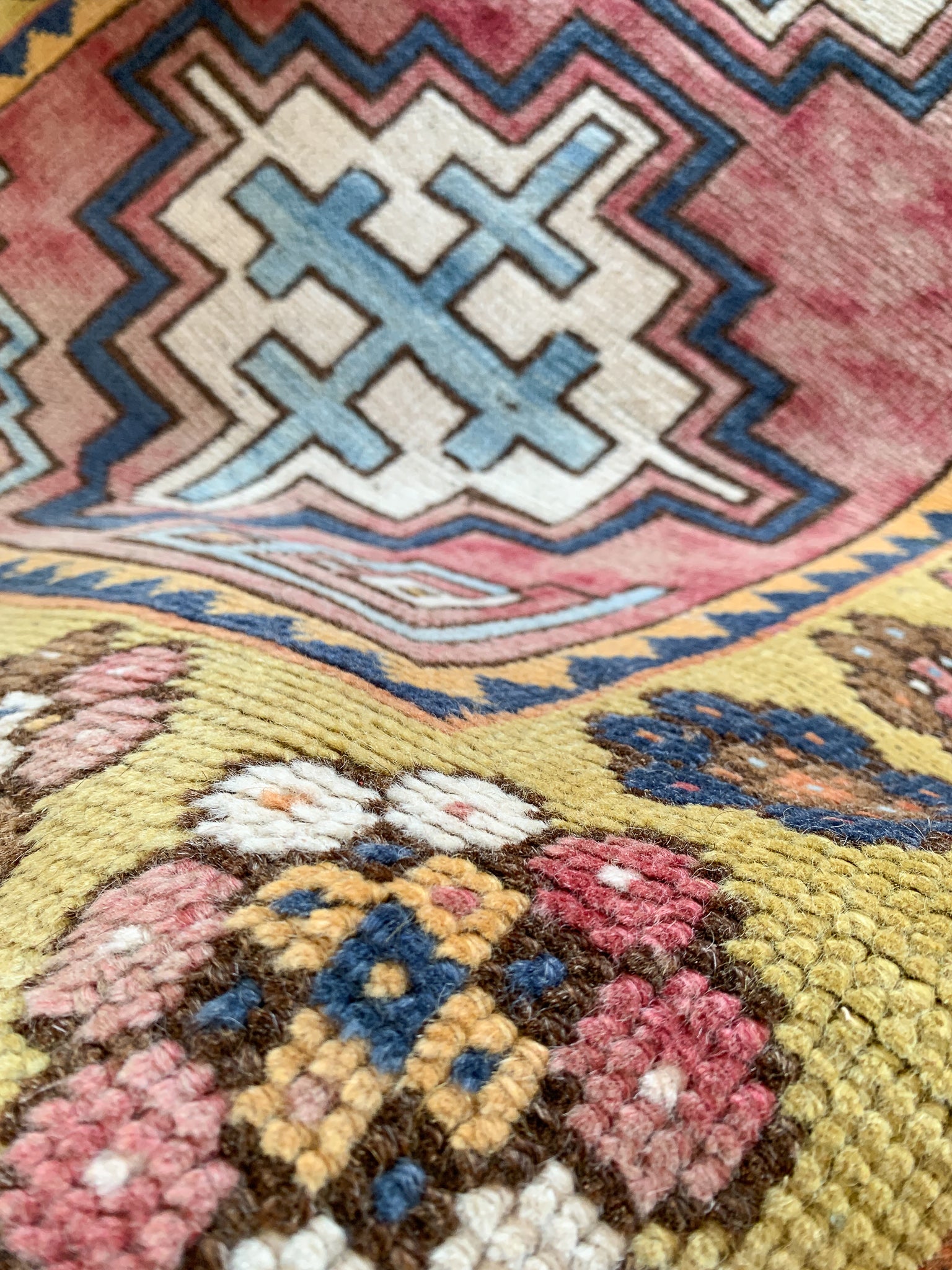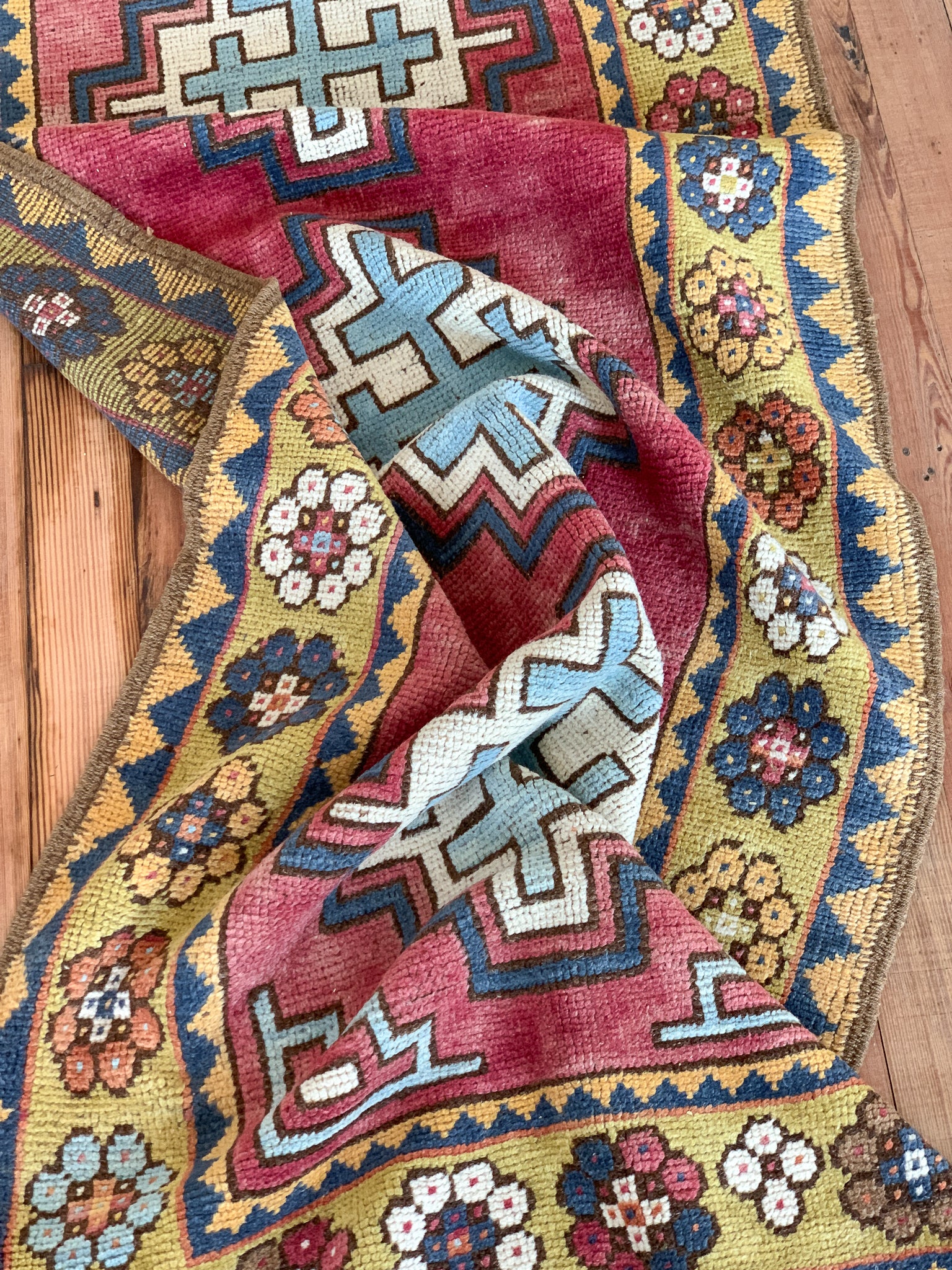 All rugs have been thoroughly cleaned; age-related wear and patina are considered normal in these unique, hand woven vintage rugs. All pieces have been photographed with moderate natural light. In some cases, photos are edited to depict the most true to life colors.Colors may vary depending on your phone or screen settings. Some items may not be perfectly straight or rectangle. We consider these characteristics part of what makes them truly one-of-a-kind.