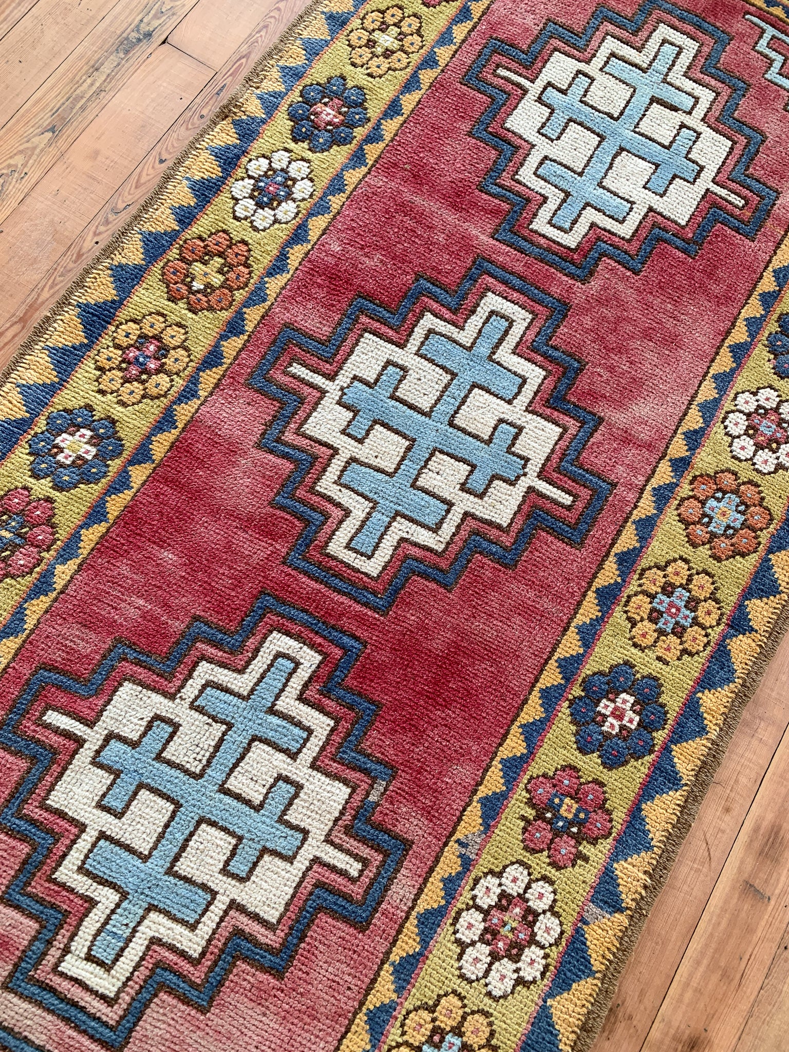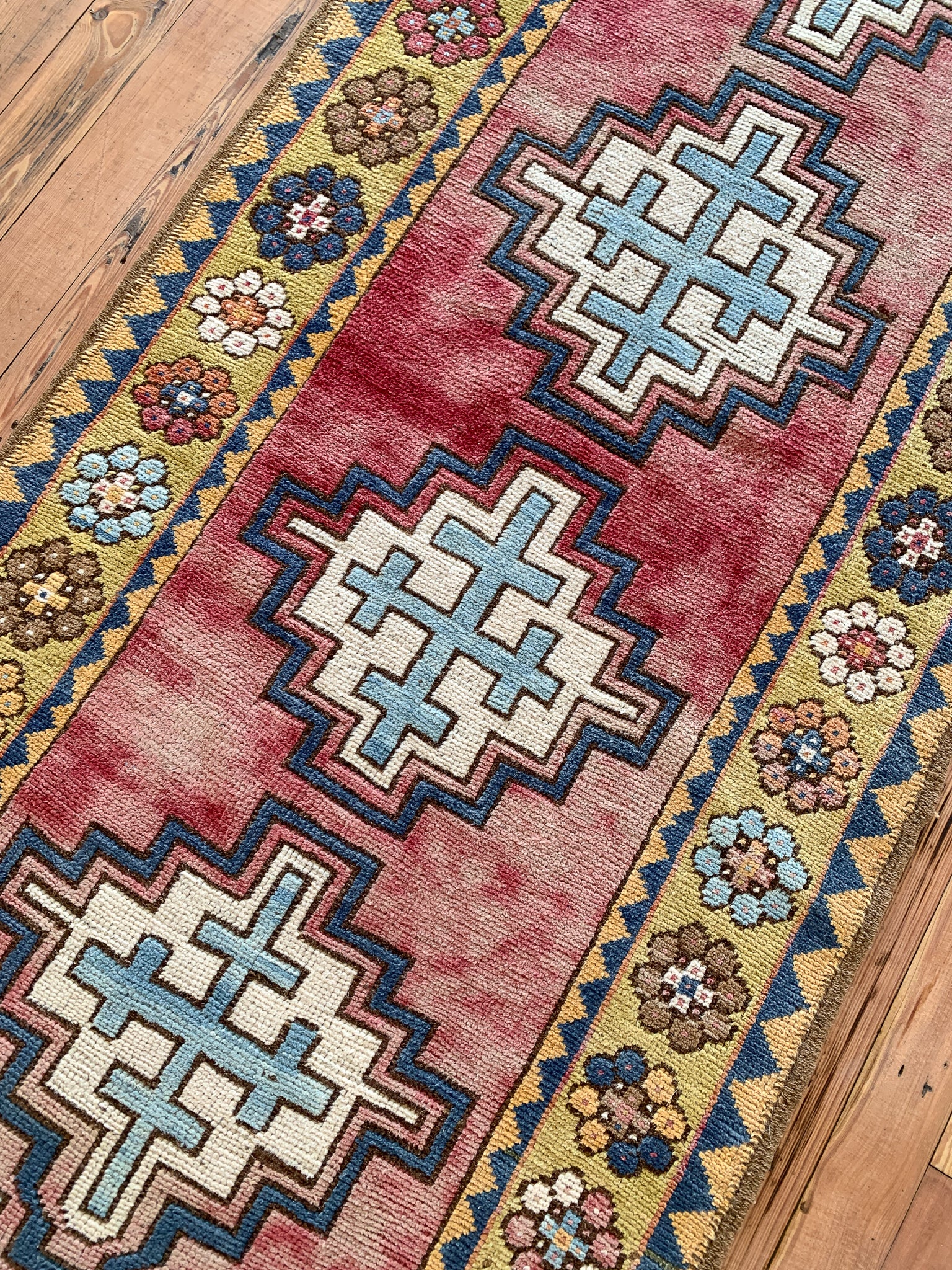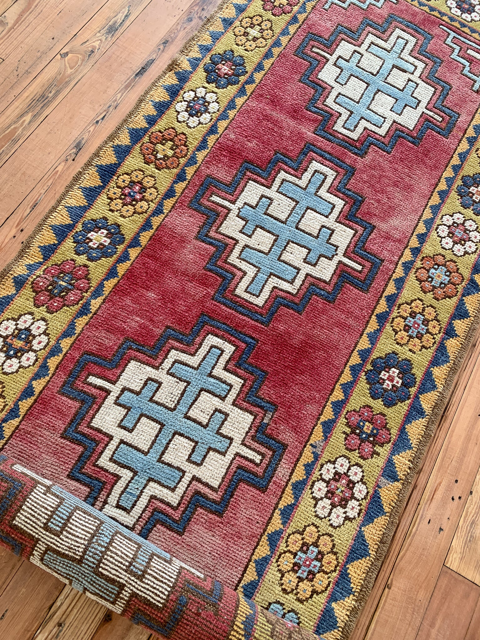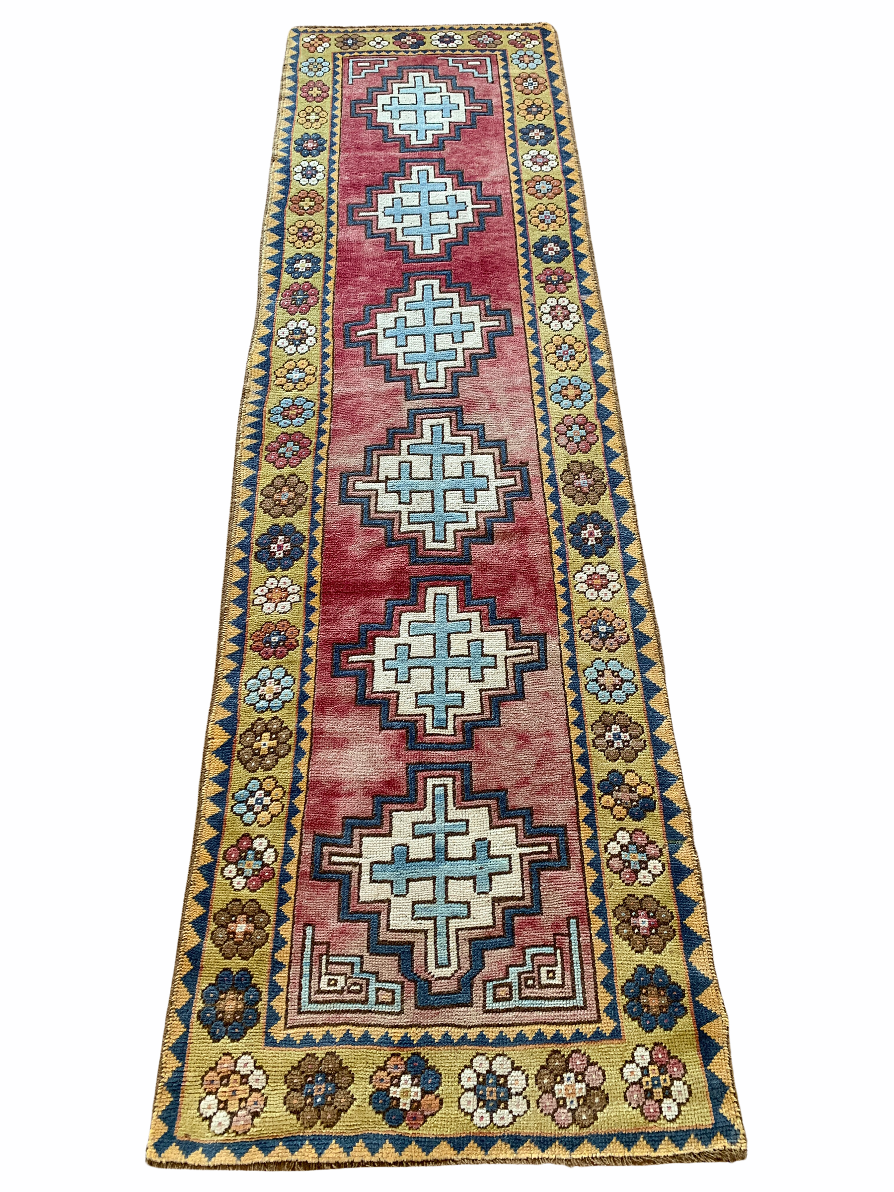 All rugs have been thoroughly cleaned; age-related wear and patina are considered normal in these unique, hand woven vintage rugs. All pieces have been photographed with moderate natural light. In some cases, photos are edited to depict the most true to life colors.Colors may vary depending on your phone or screen settings. Some items may not be perfectly straight or rectangle. We consider these characteristics part of what makes them truly one-of-a-kind.