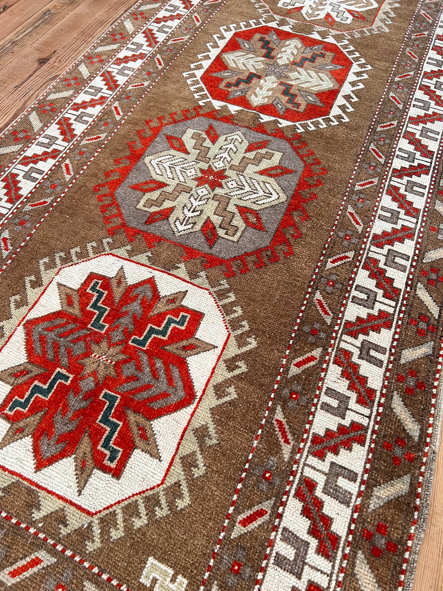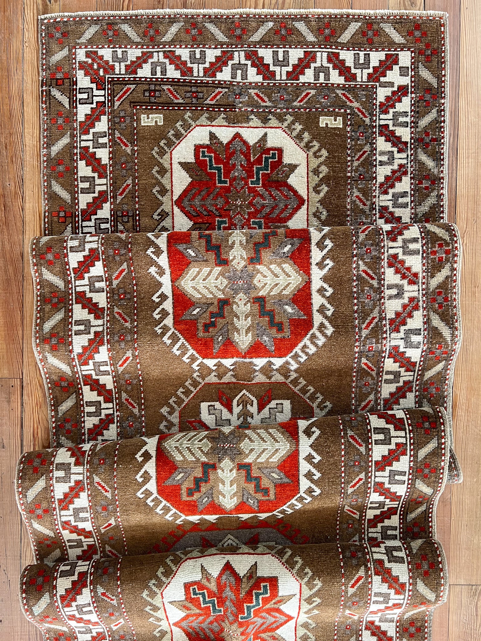 All rugs have been thoroughly cleaned; age-related wear and patina are considered normal in these unique, hand-woven vintage rugs.