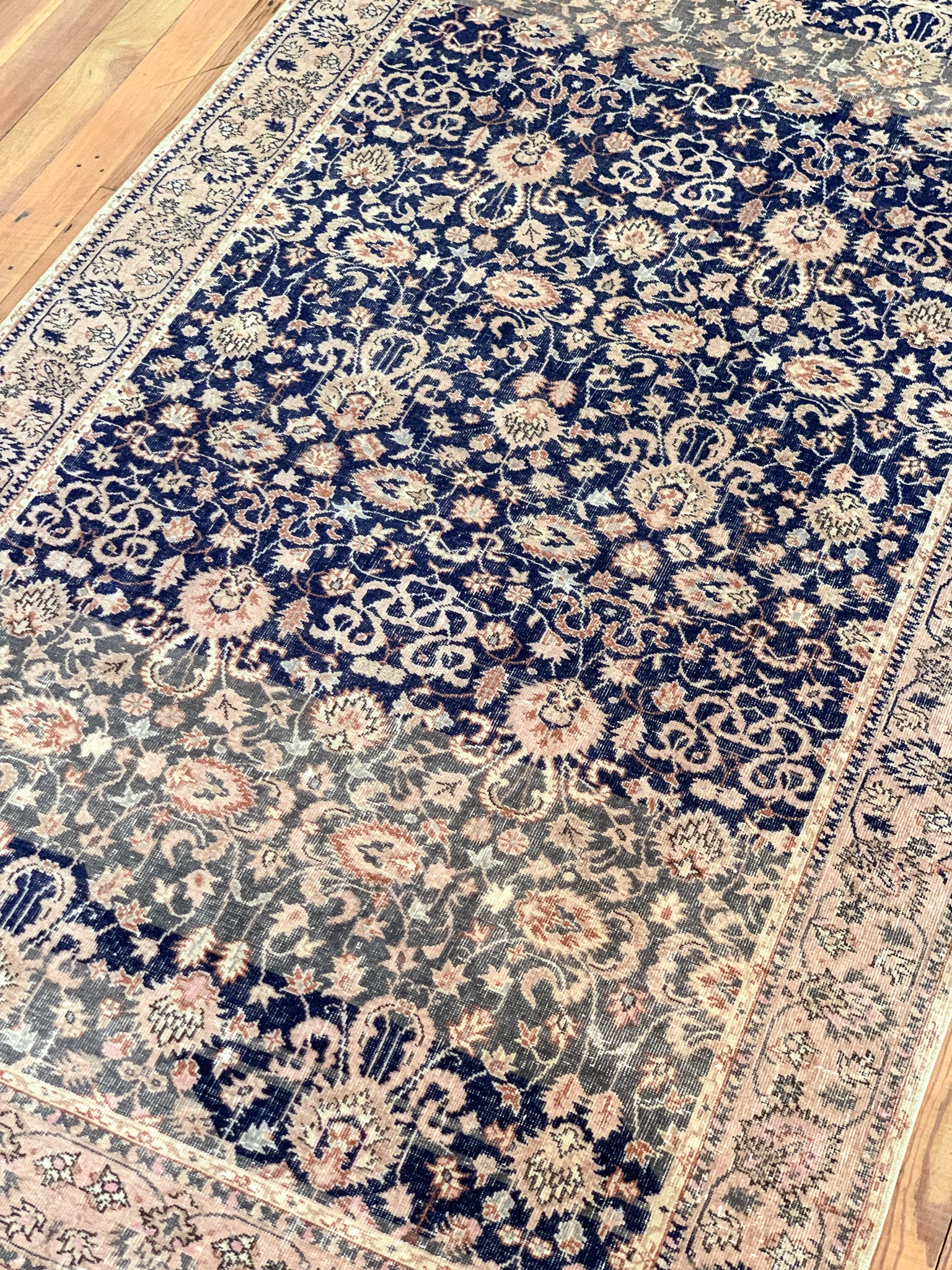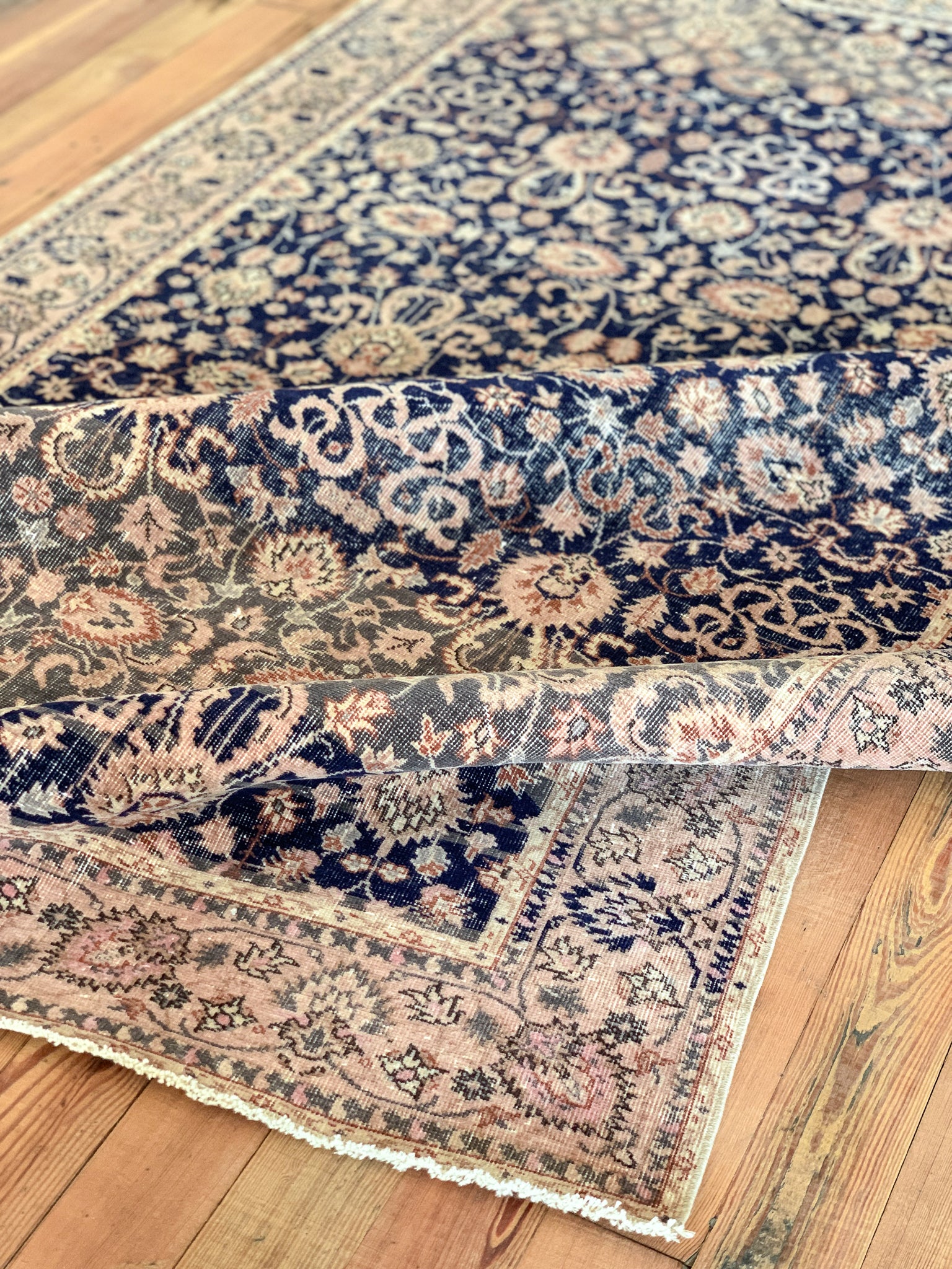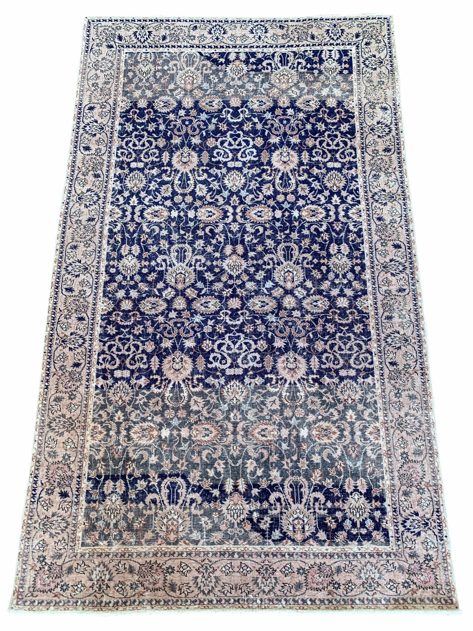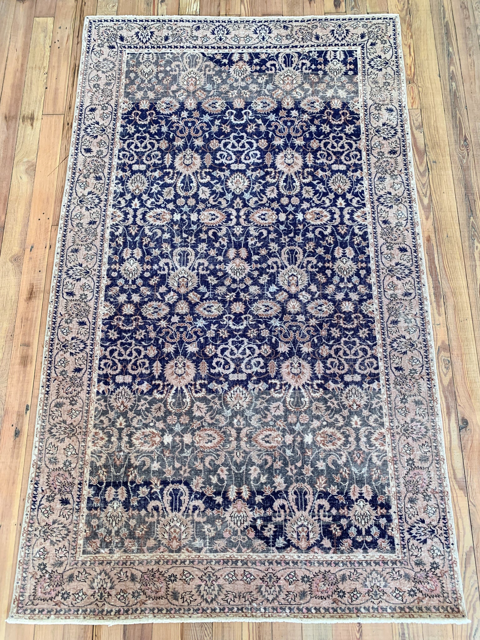 All rugs have been thoroughly cleaned; age-related wear and patina are considered normal in these unique, hand-woven vintage rugs. All pieces have been photographed with moderate natural light. In some cases, photos are edited to depict the most true-to-life colors. Colors may vary depending on your phone or screen settings. Some items may not be perfectly straight or rectangle. We consider these characteristics part of what makes them truly one-of-a-kind.